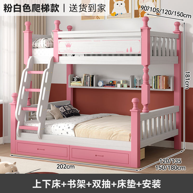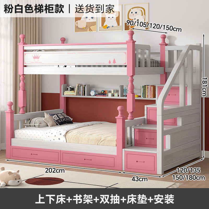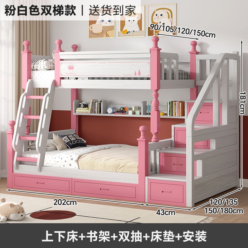 • 분홍색과 흰색 사다리 캐비닛 + 책장 + 이중 서랍 + 매트리스 2개 + 설치