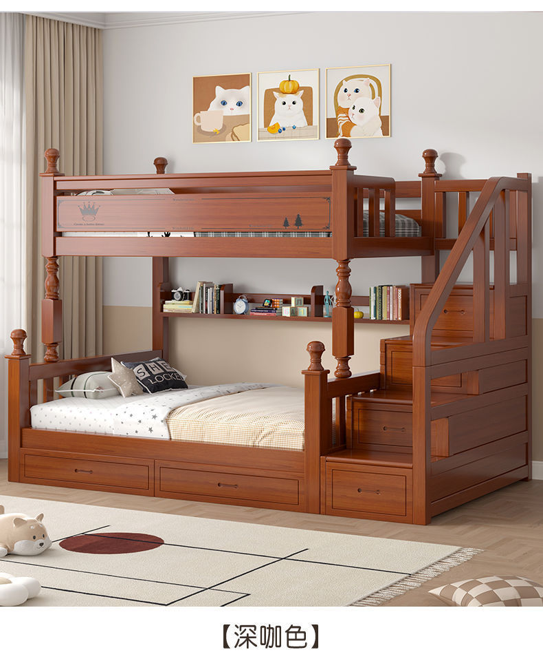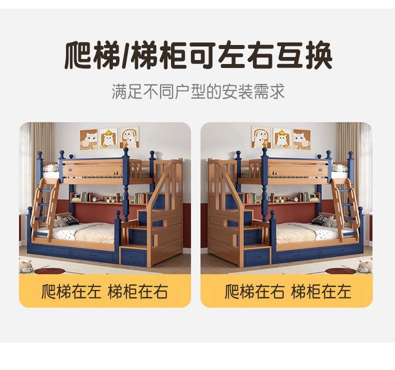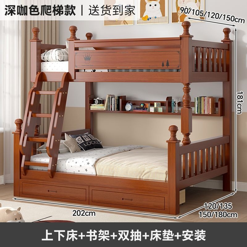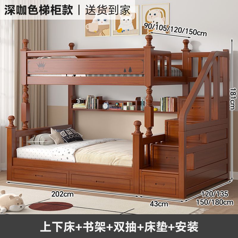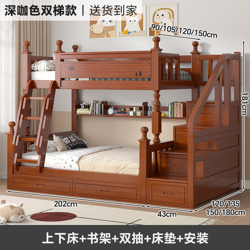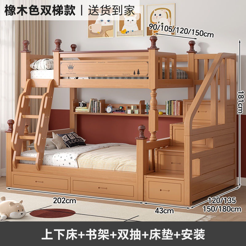 고무 나무 침대 이층 침대 이층 침대 어린이 침대 전체 단단한 나무 더블 침대 두 개의 높고 낮은 침대