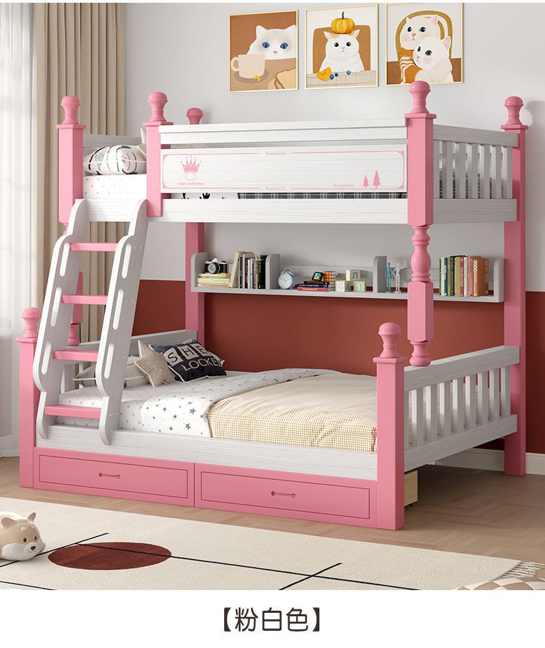 • 분홍색과 흰색 이중 사다리 + 책장 + 이중 서랍 + 매트리스 2개 + 설치
