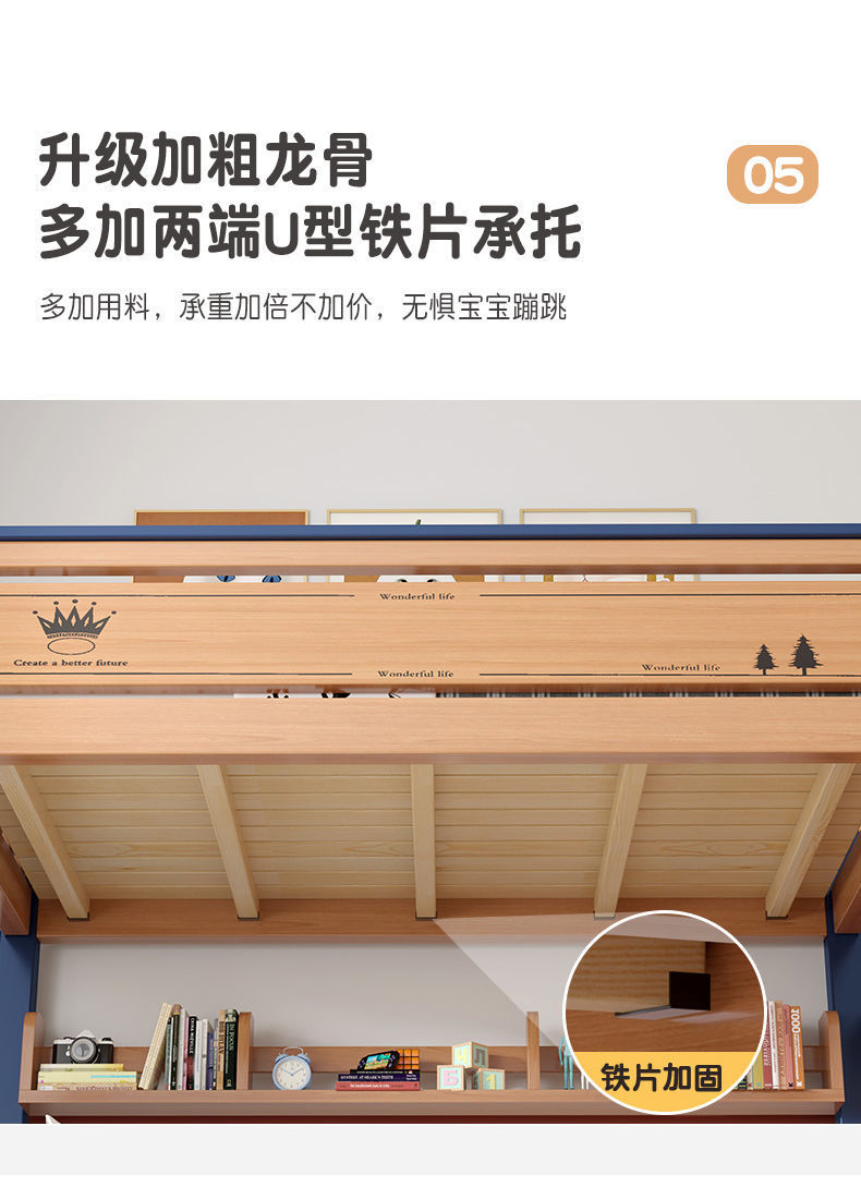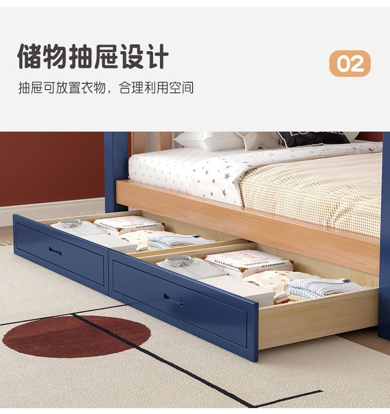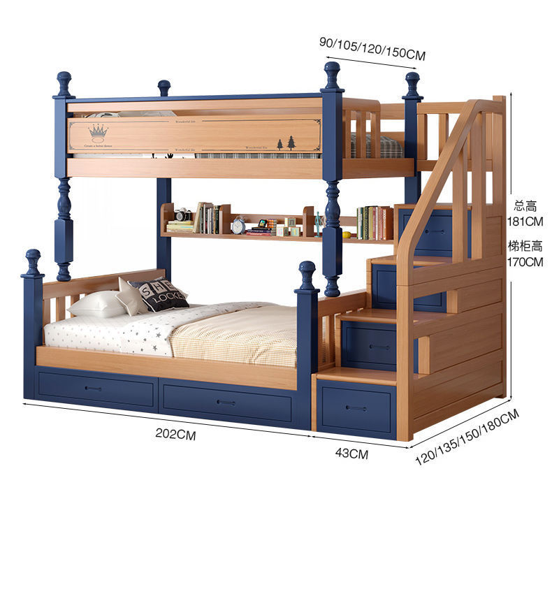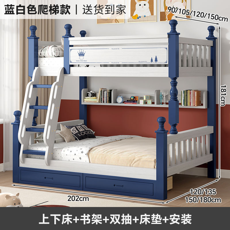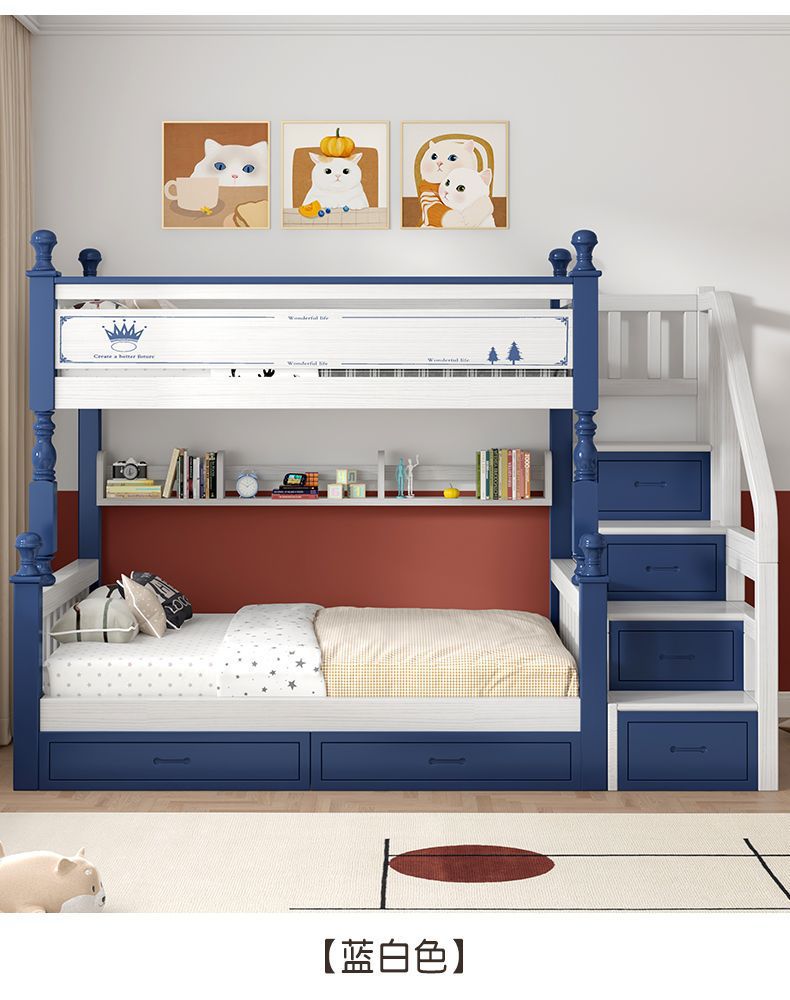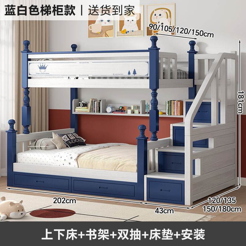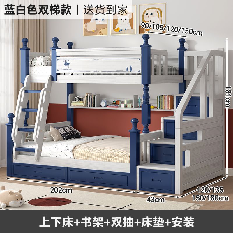 • 파란색과 흰색 사다리 캐비닛 + 책장 + 이중 서랍 + 매트리스 2개 + 설치