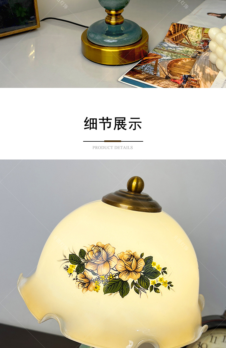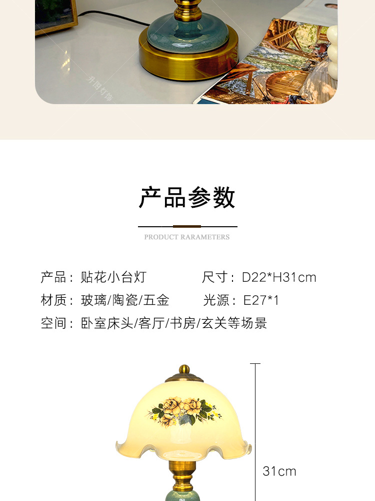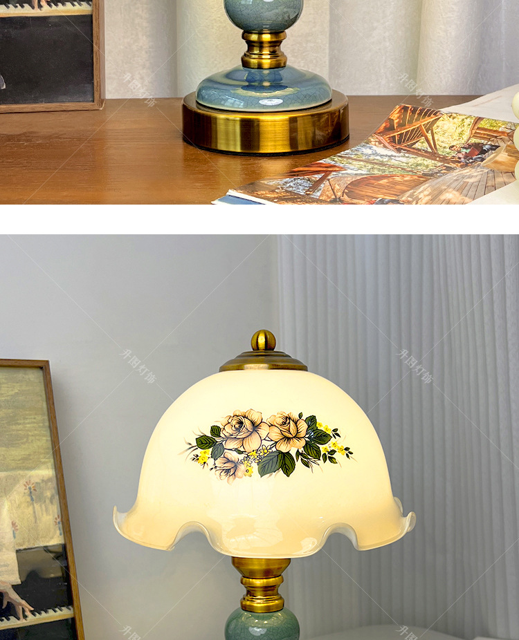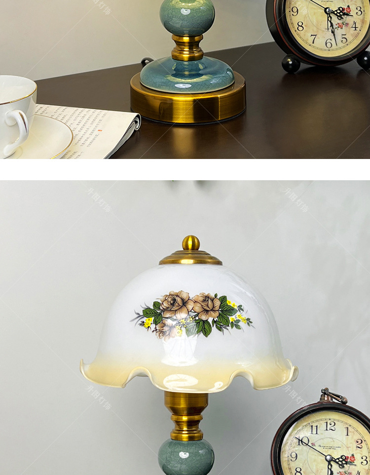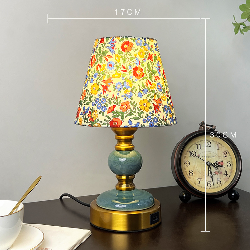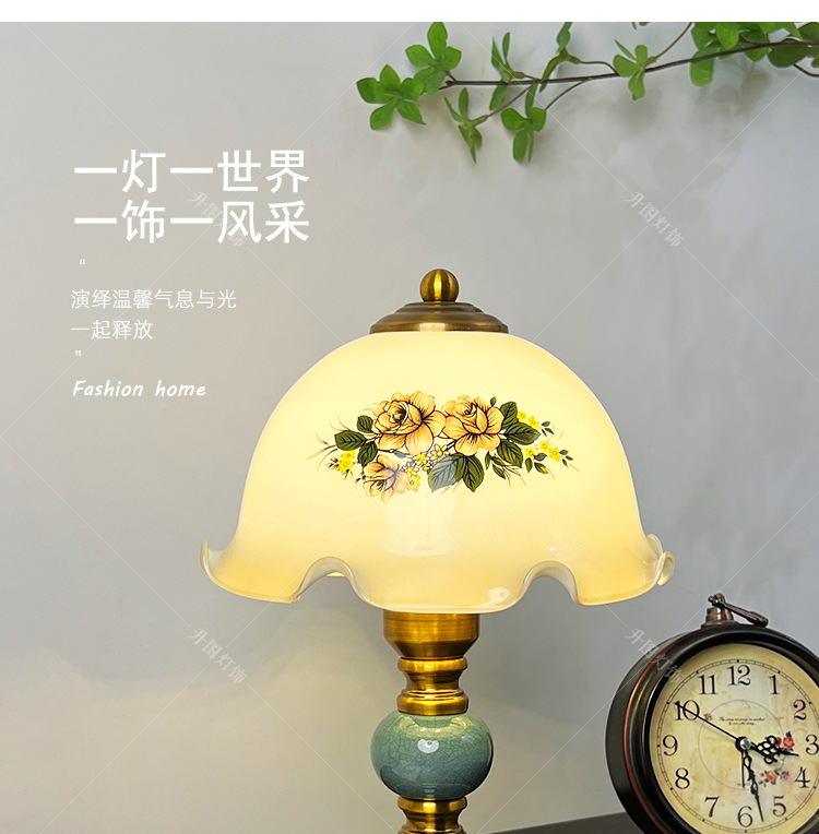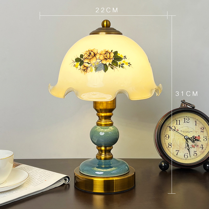 세라믹 작은 테이블 램프 미국 복고풍 침실 침대 옆 램프 분위기 밤 빛 미니 꽃 테이블 램프 대외 무역스토어 가기