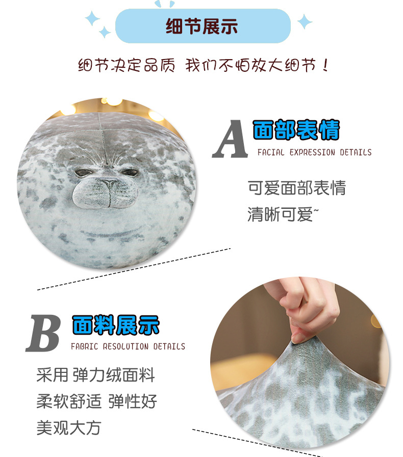 卡通海豹抱枕海游馆人气软绵绵海豹抱枕水族馆毛绒玩具礼物