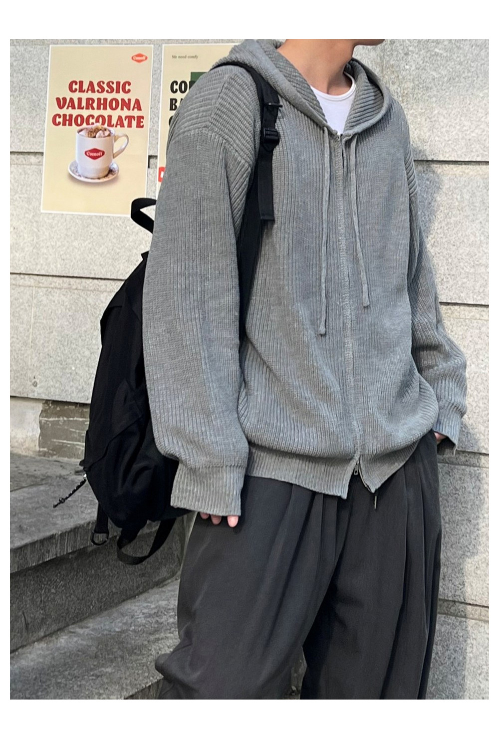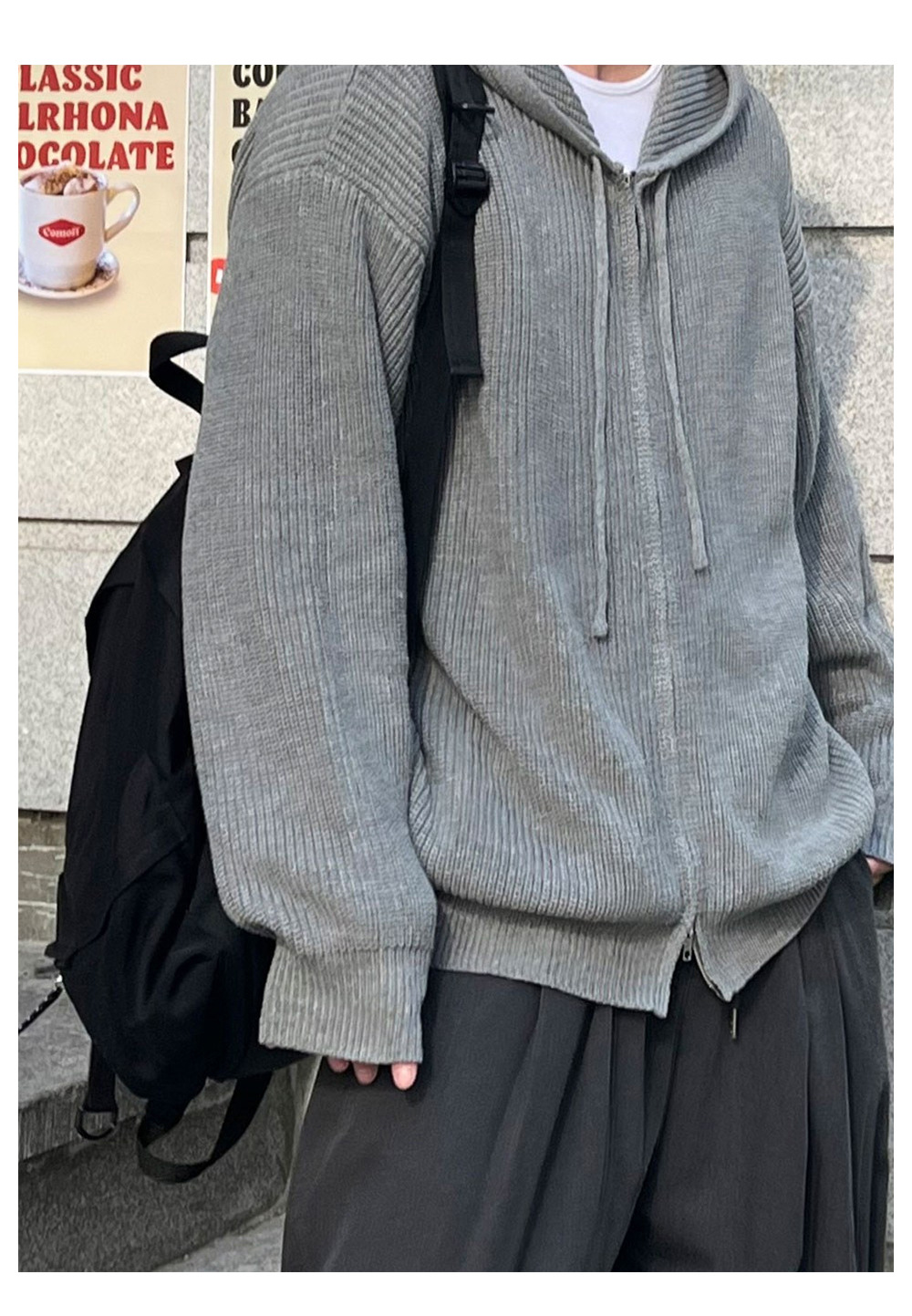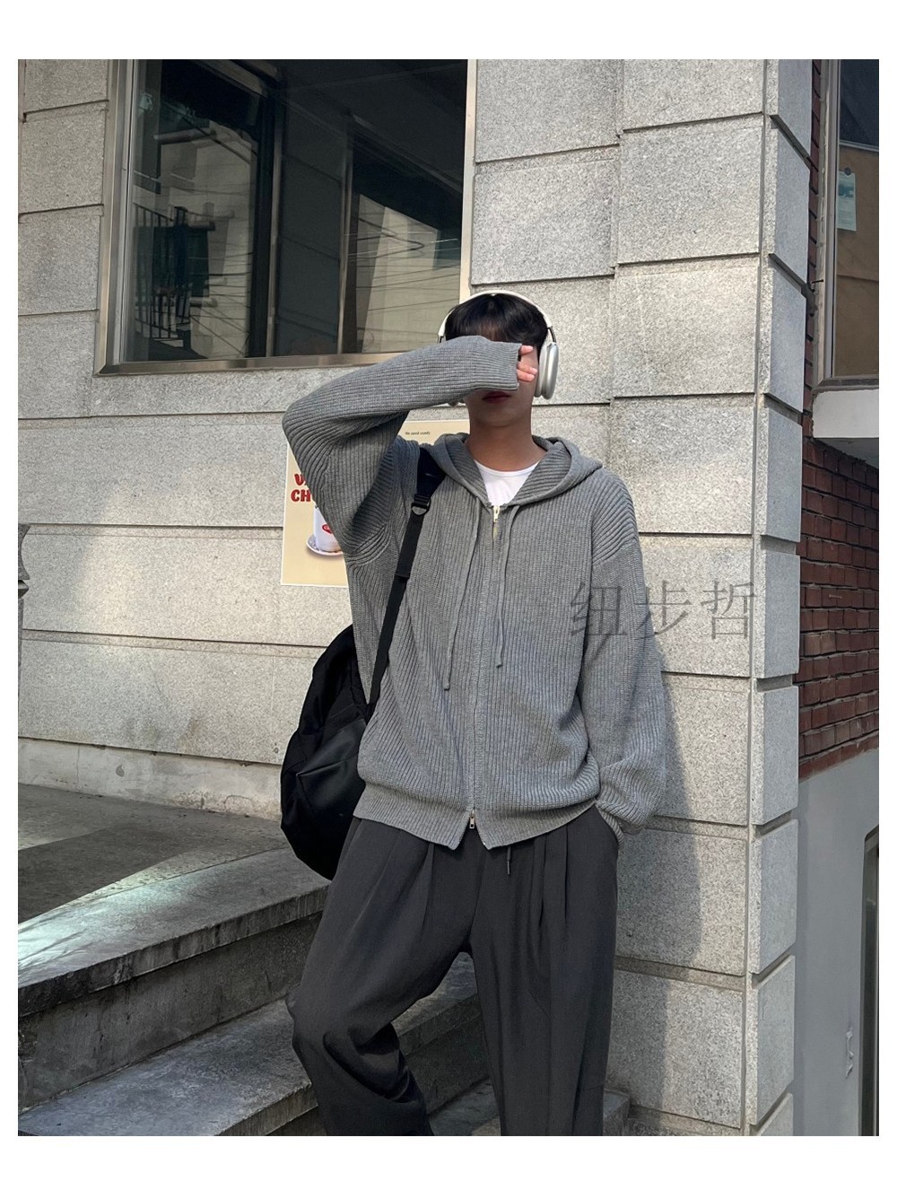 니트 카디건 남자 가을 얇은 캐주얼 지퍼 후드 솔리드 컬러 하이 엔드 한국 스타일 재킷 유행 올 매치 탑스토어 가기