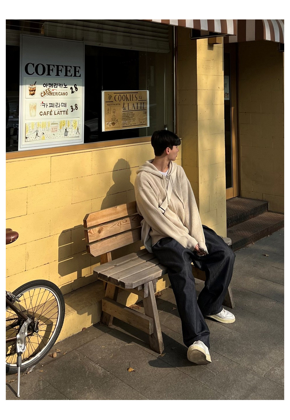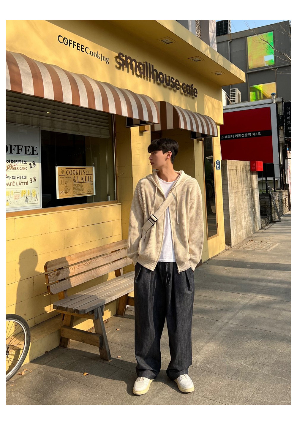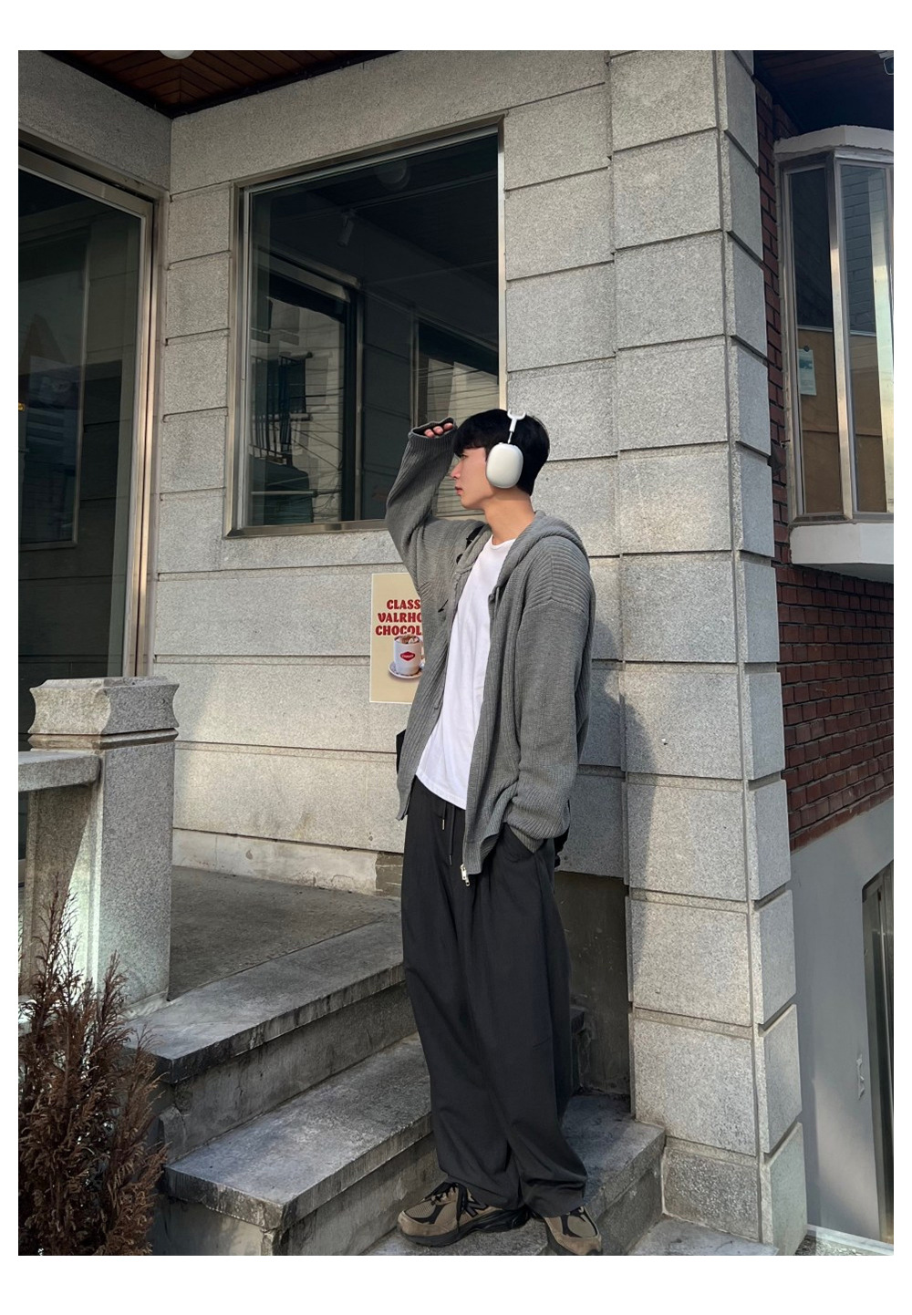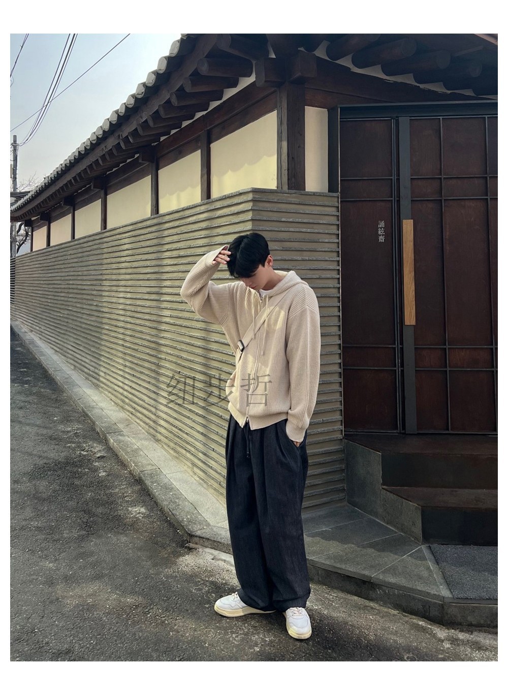 니트 카디건 남자 가을 얇은 캐주얼 지퍼 후드 솔리드 컬러 하이 엔드 한국 스타일 재킷 유행 올 매치 탑스토어 가기