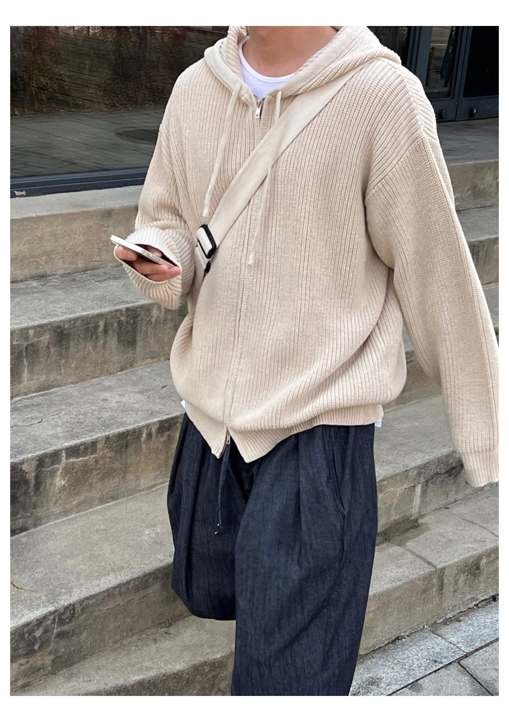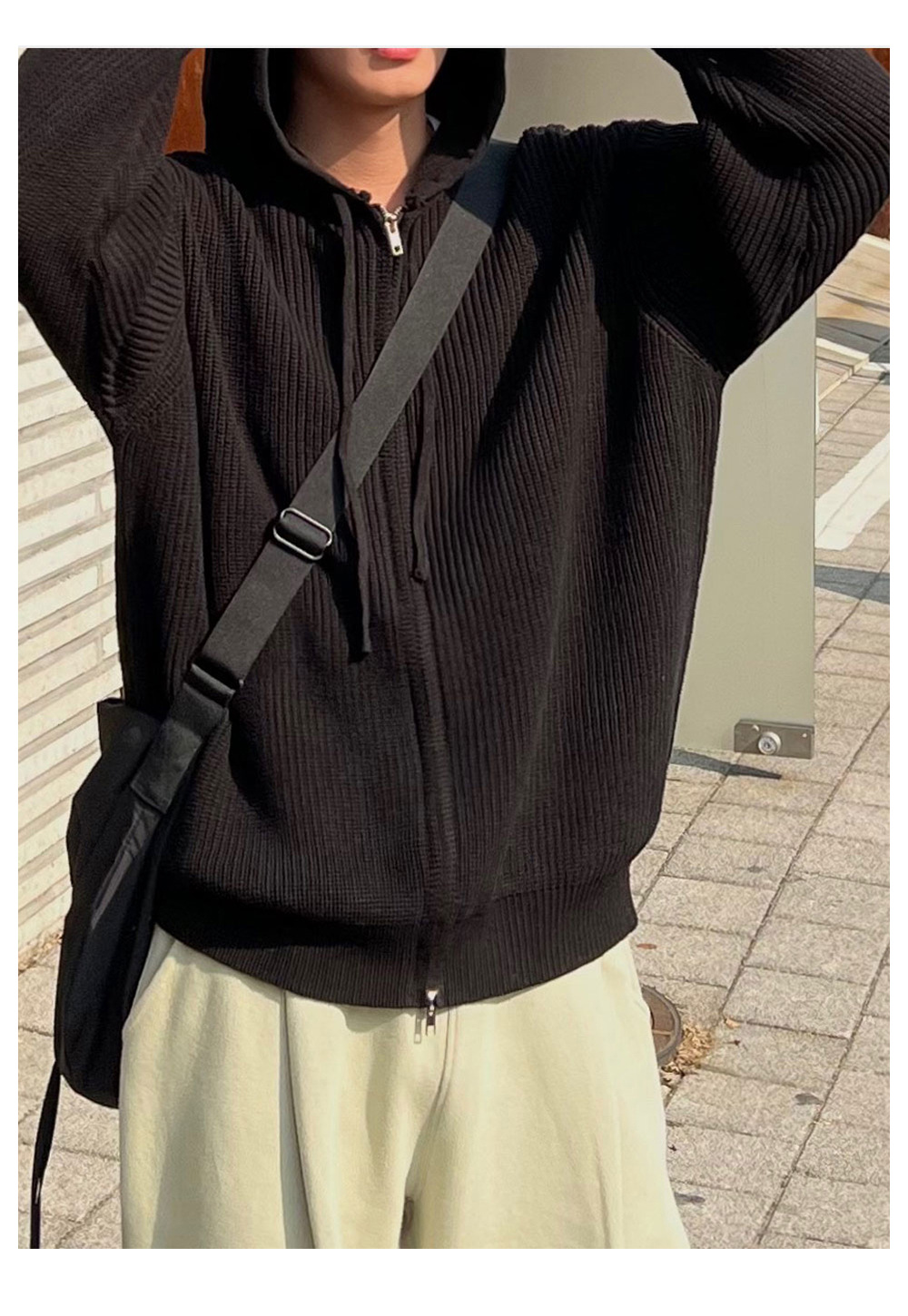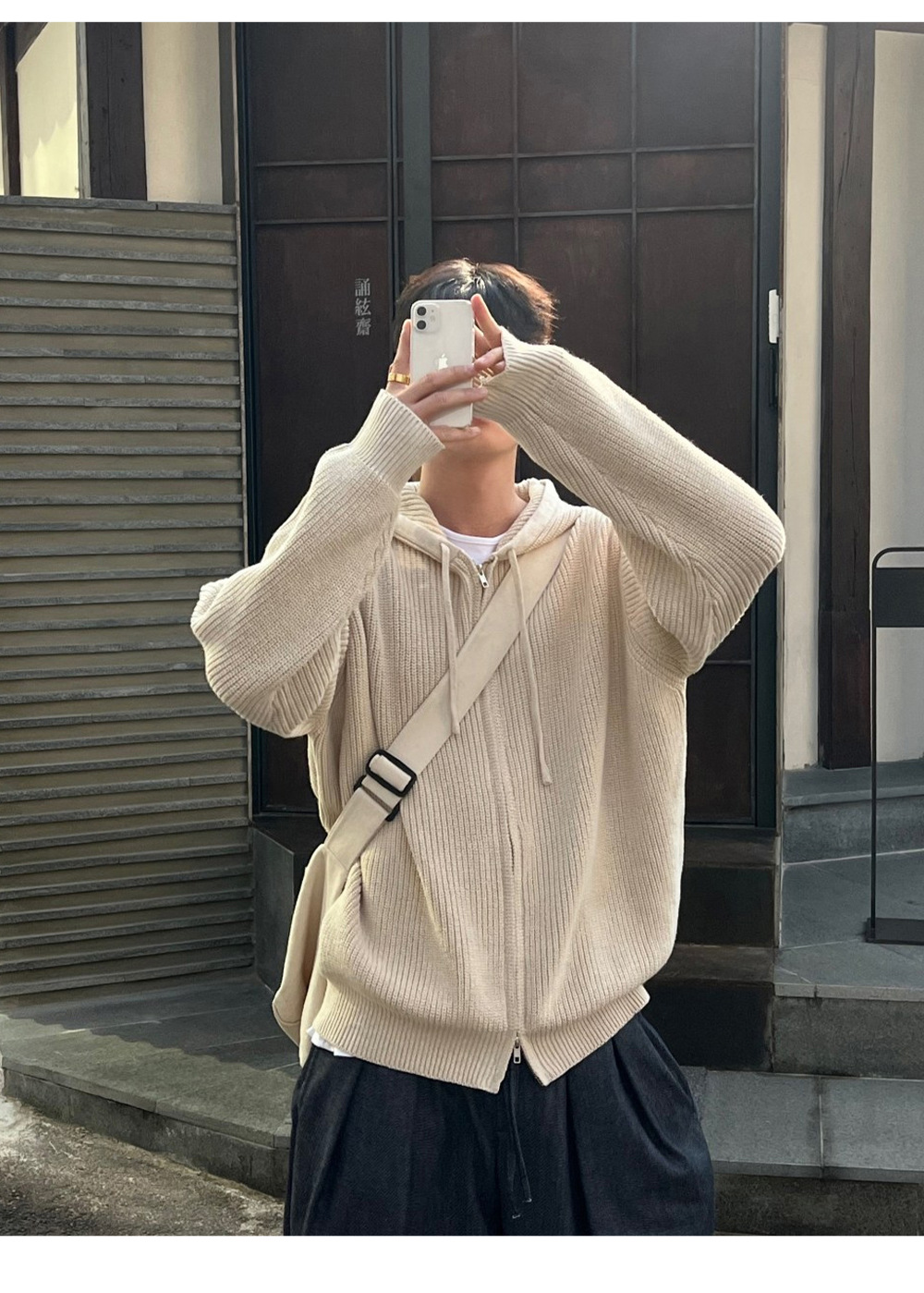 니트 카디건 남자 가을 얇은 캐주얼 지퍼 후드 솔리드 컬러 하이 엔드 한국 스타일 재킷 유행 올 매치 탑