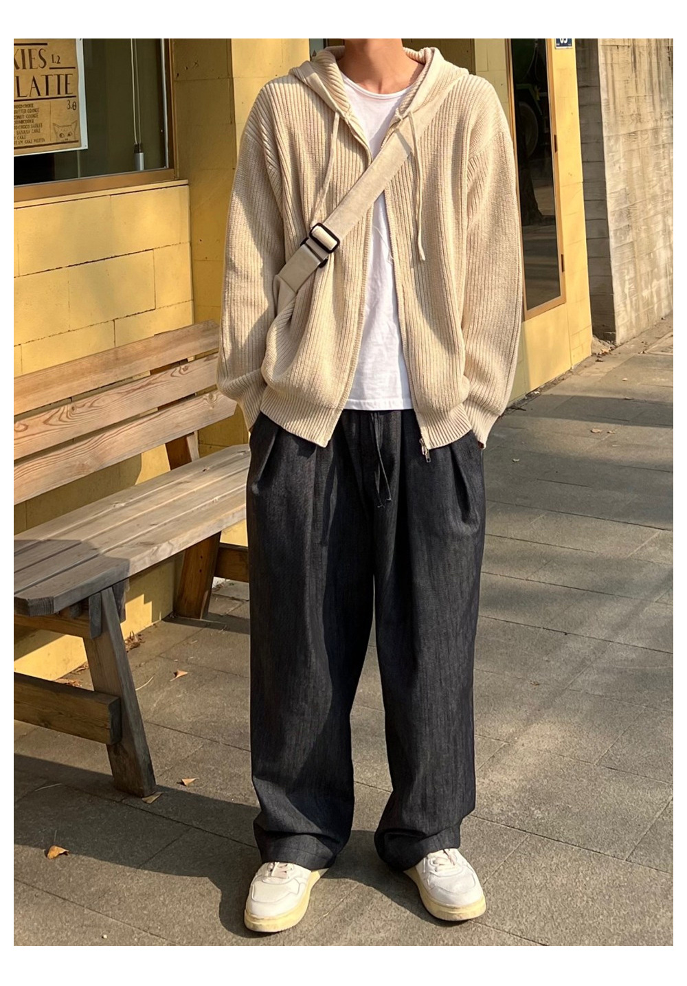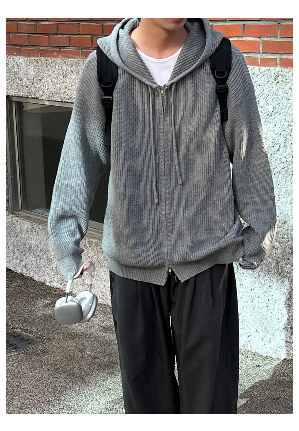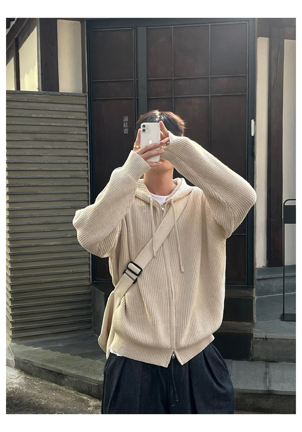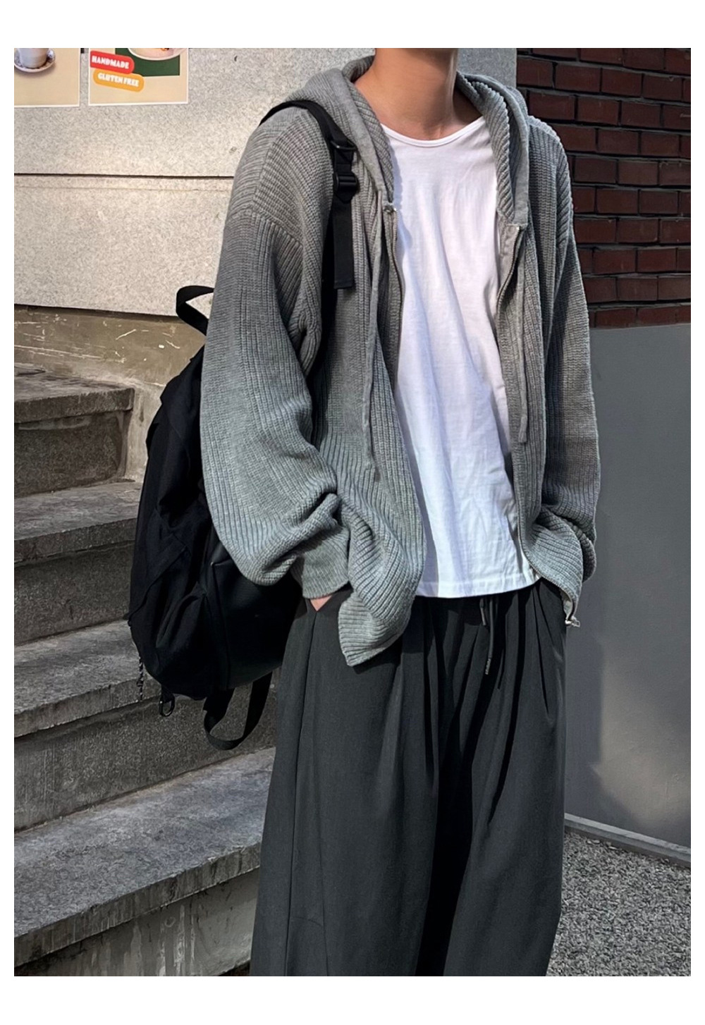 니트 카디건 남자 가을 얇은 캐주얼 지퍼 후드 솔리드 컬러 하이 엔드 한국 스타일 재킷 유행 올 매치 탑