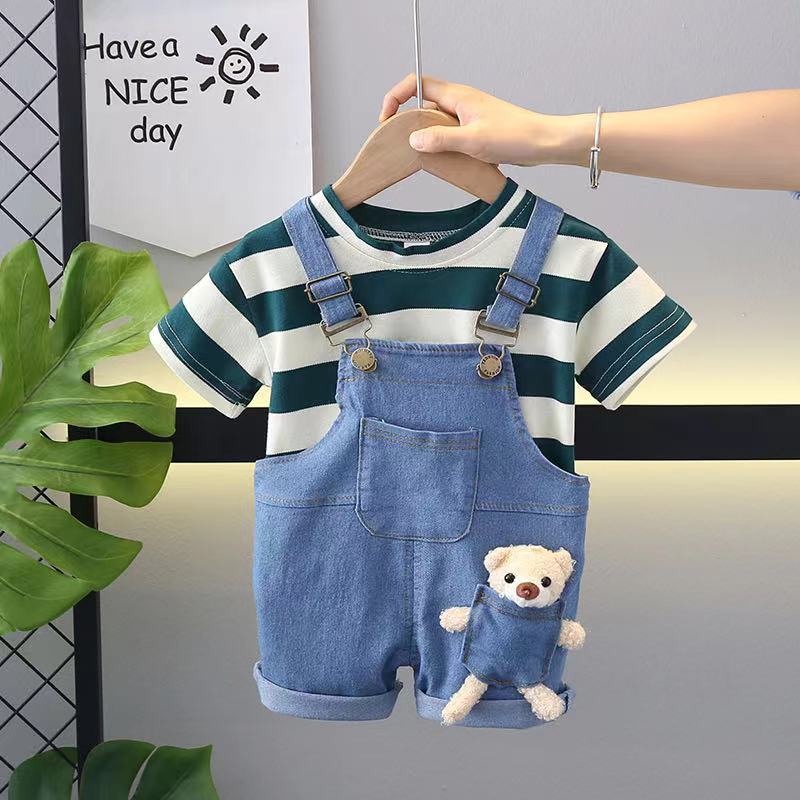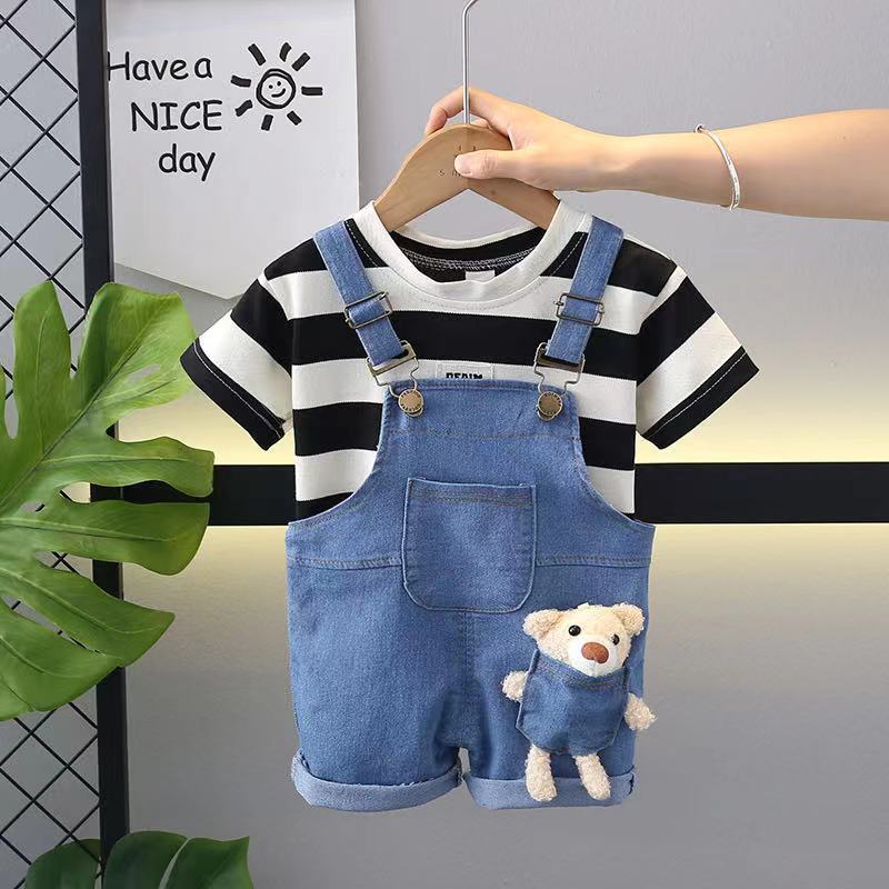 소년 여름 세트 줄무늬 티셔츠 인형 데님 2 피스 대외 무역 아동복 도매스토어 가기