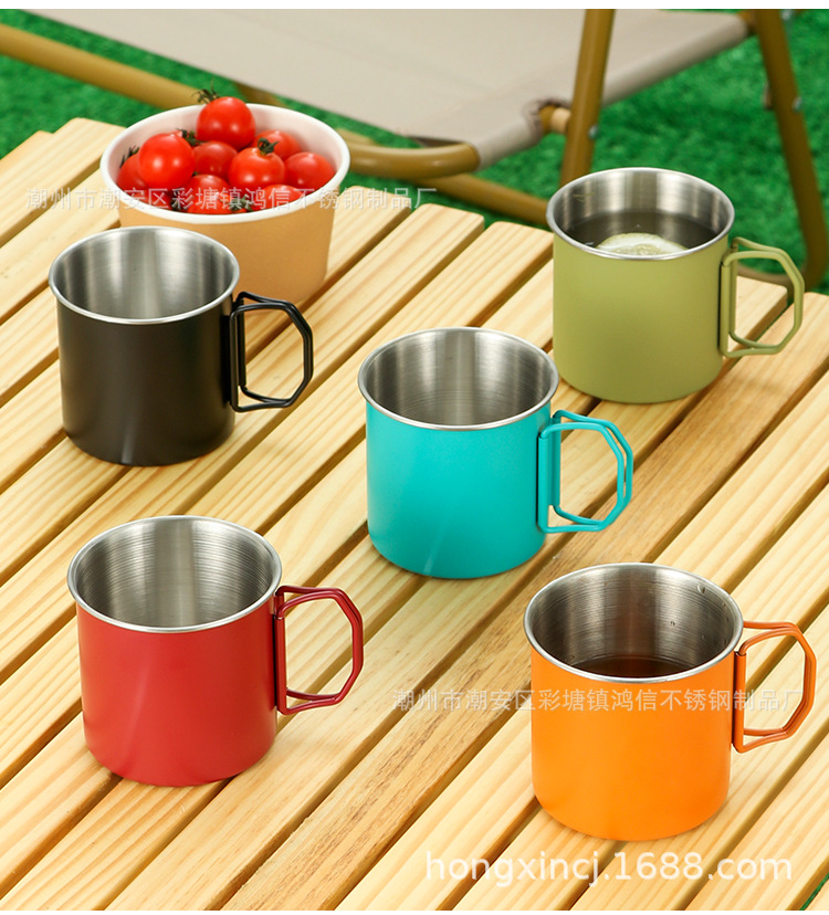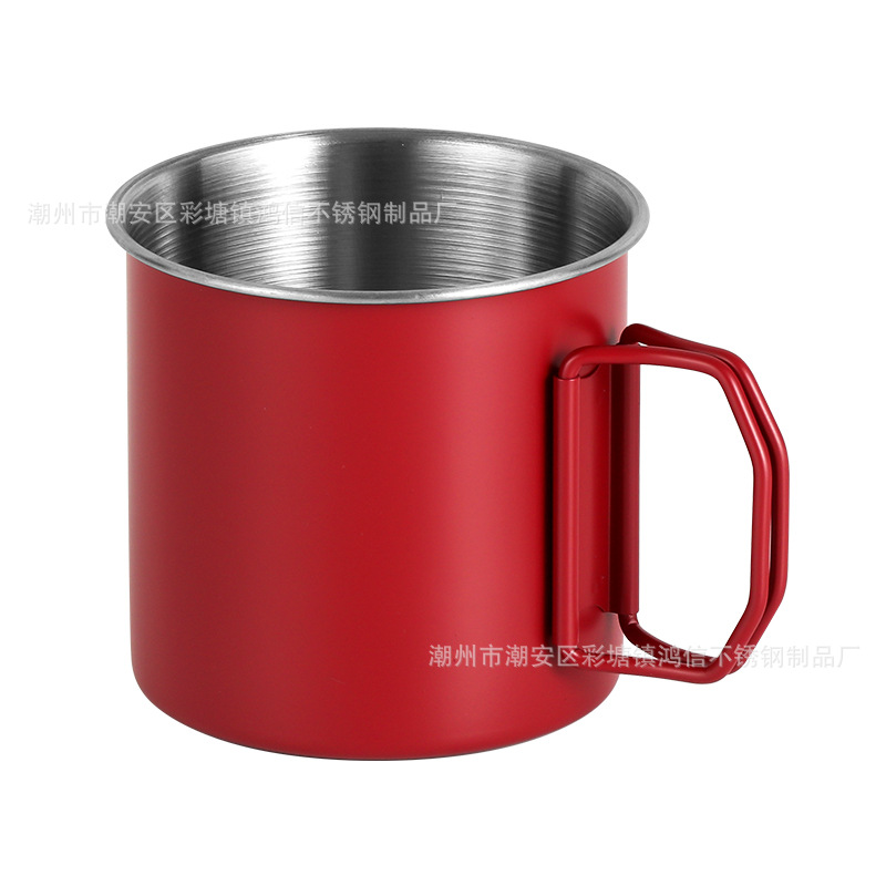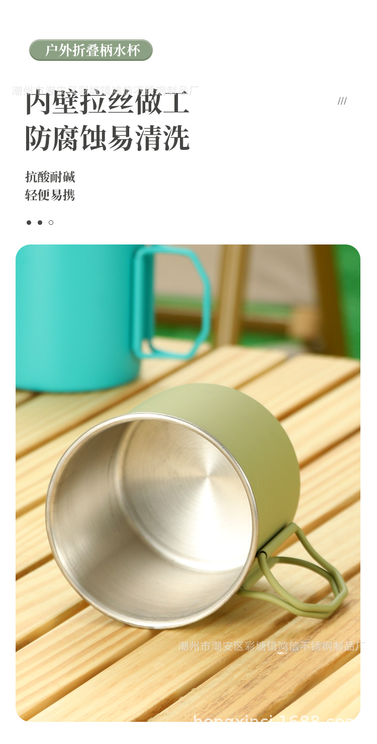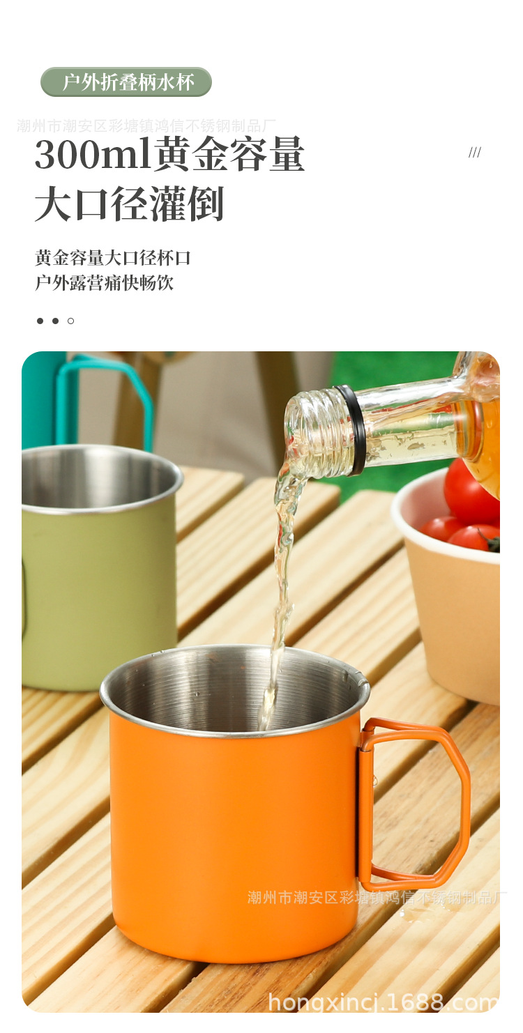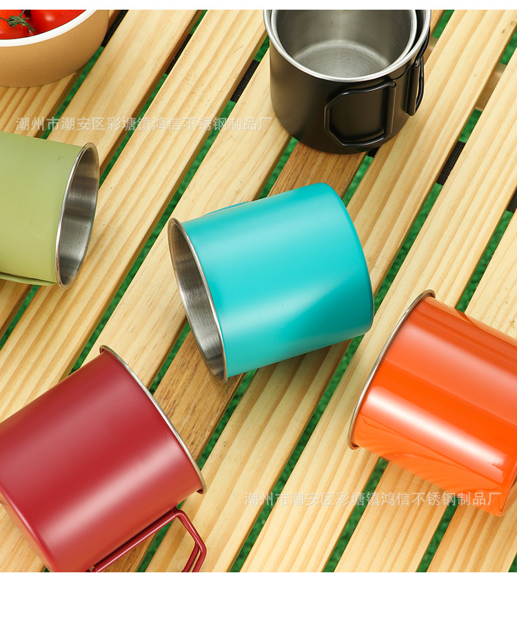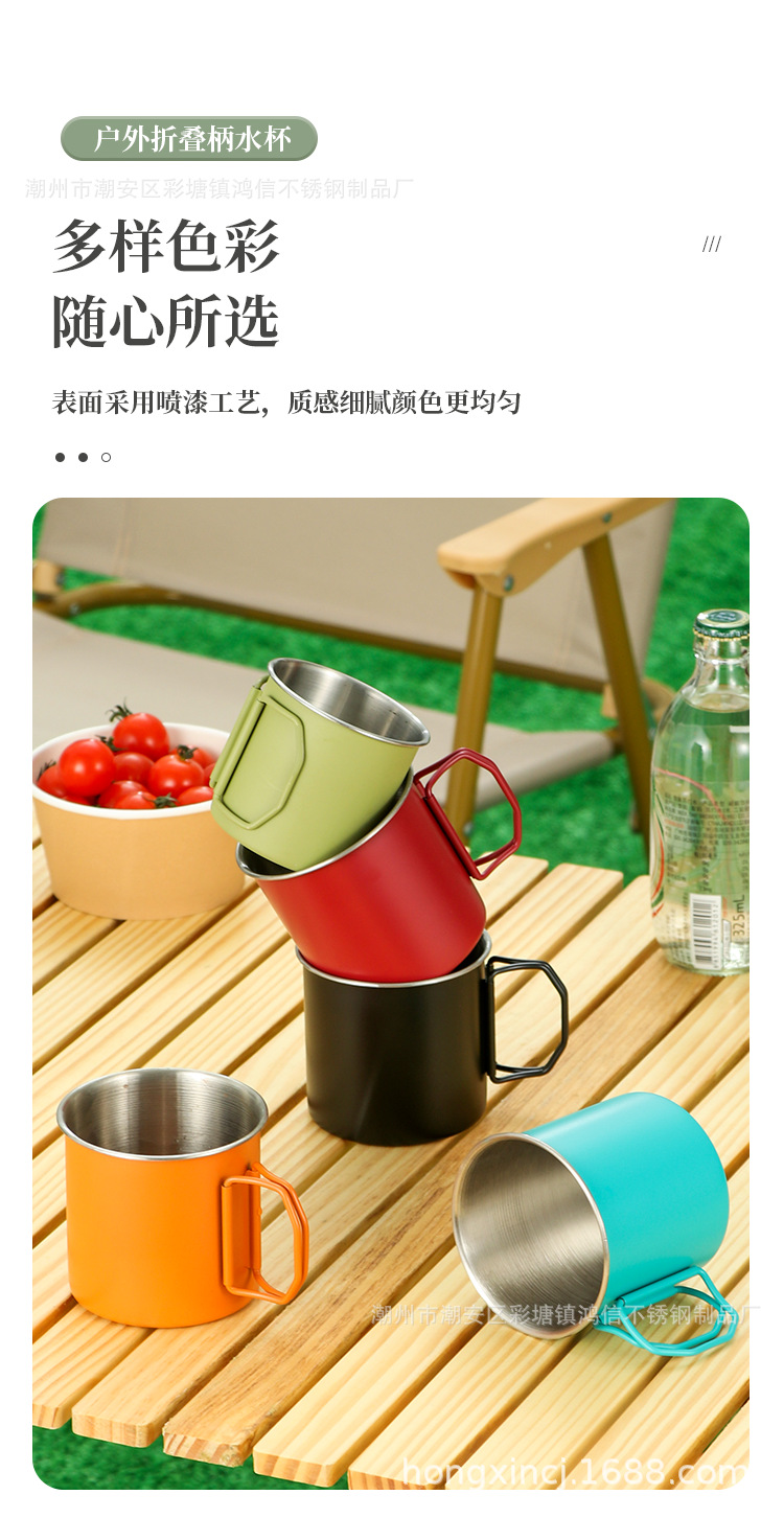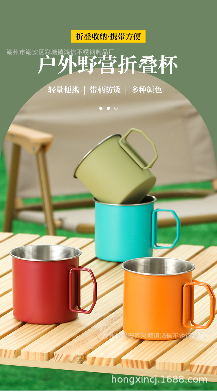 야외 304 스테인레스 스틸 입 컵 캠핑 교수형 접이식 컵 찻잔 커피 컵 티 컵 컬러 맥주 컵