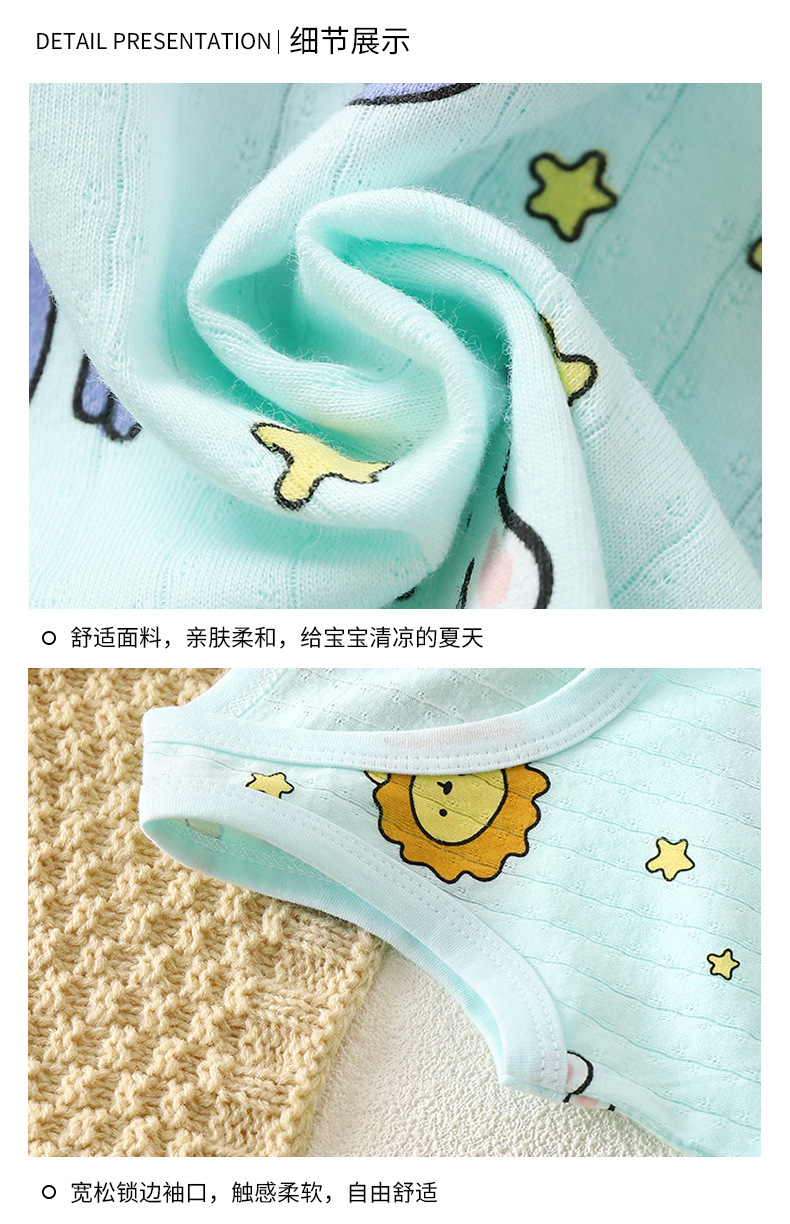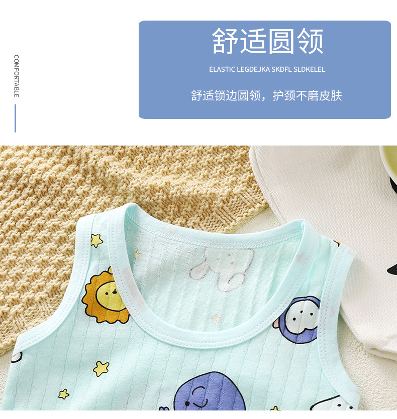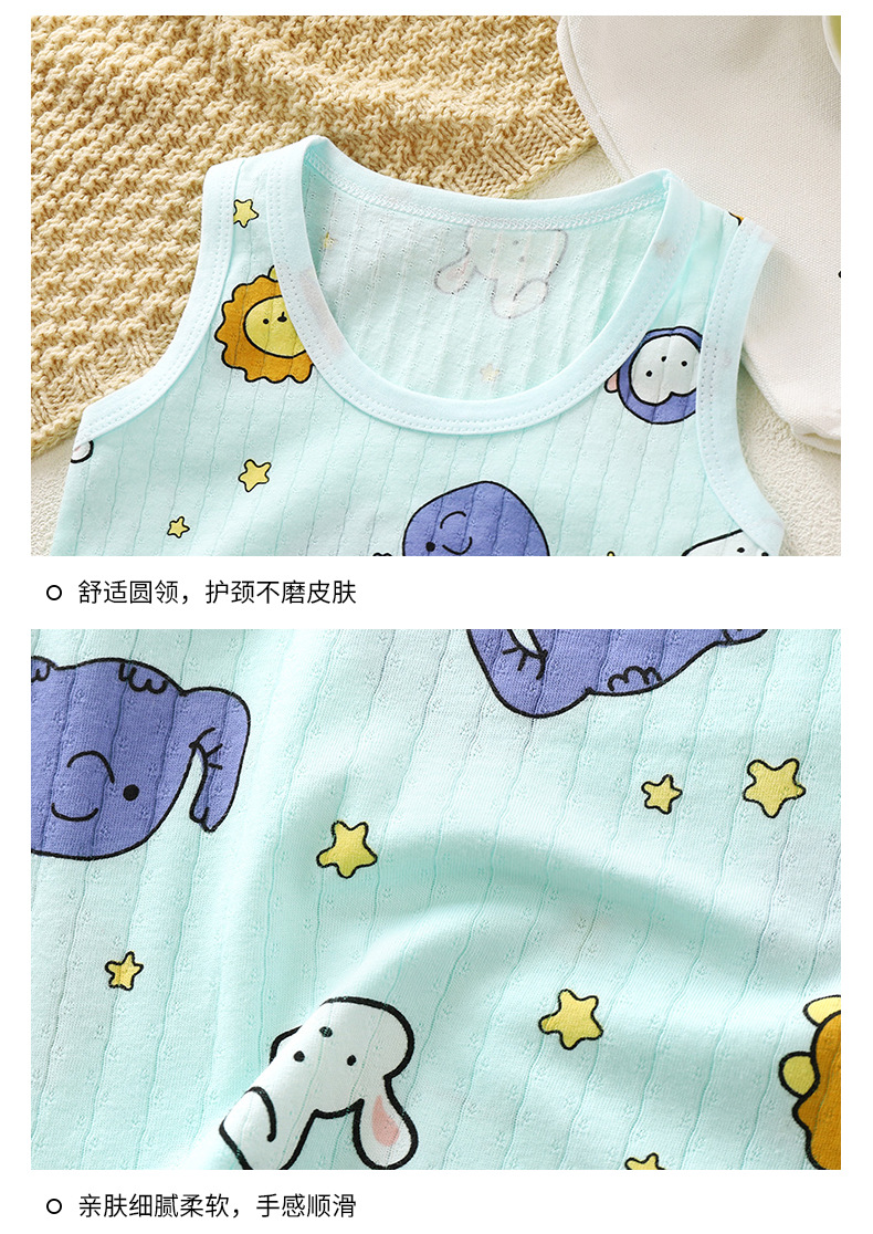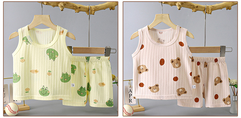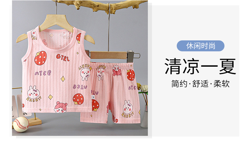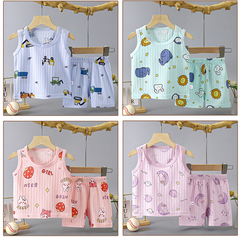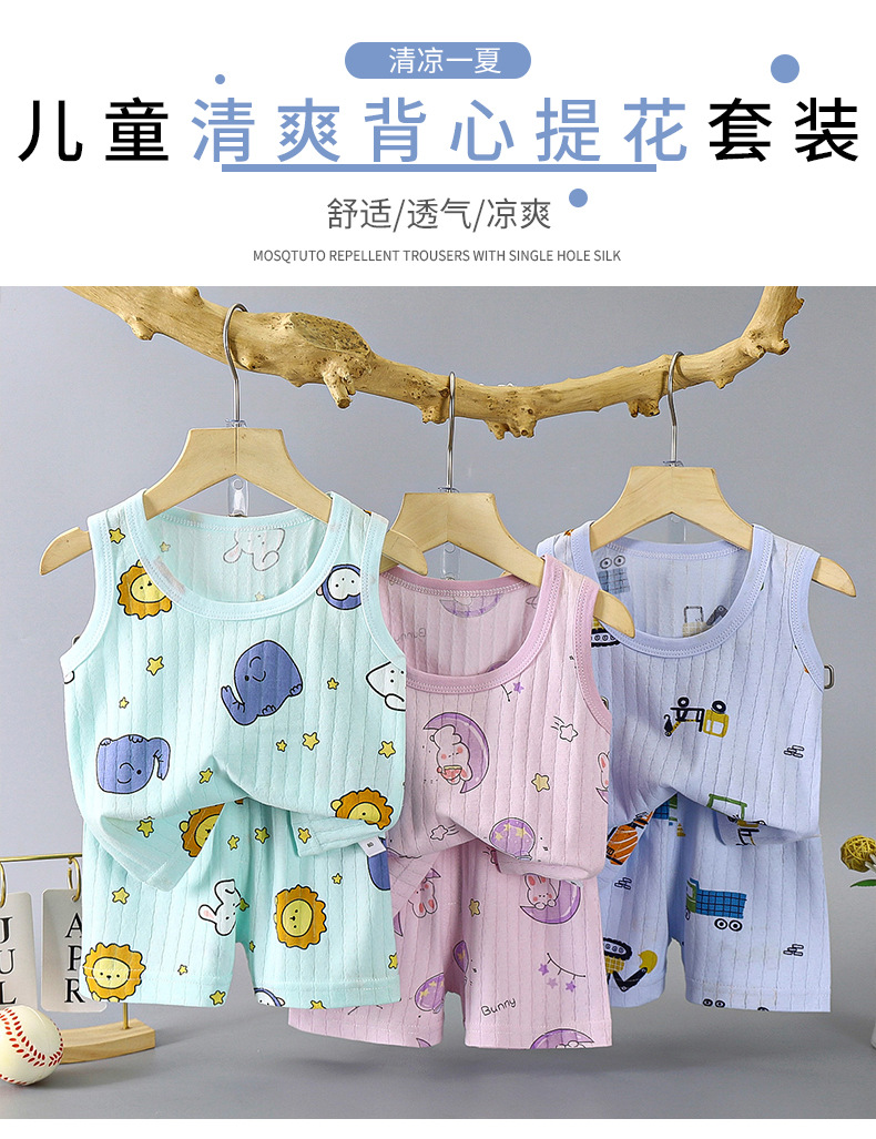 어린이 조끼 세트 얇은 남녀 홈 의류 여름 민소매 만화 면 조끼 반바지 통기성 잠옷