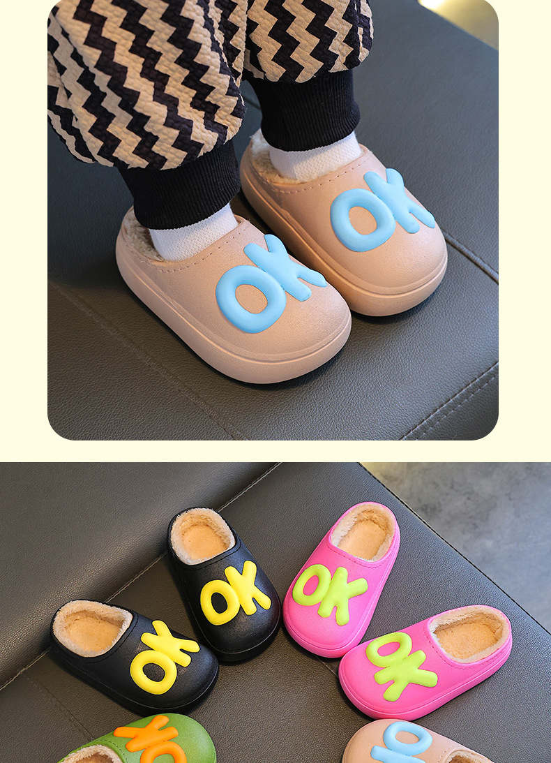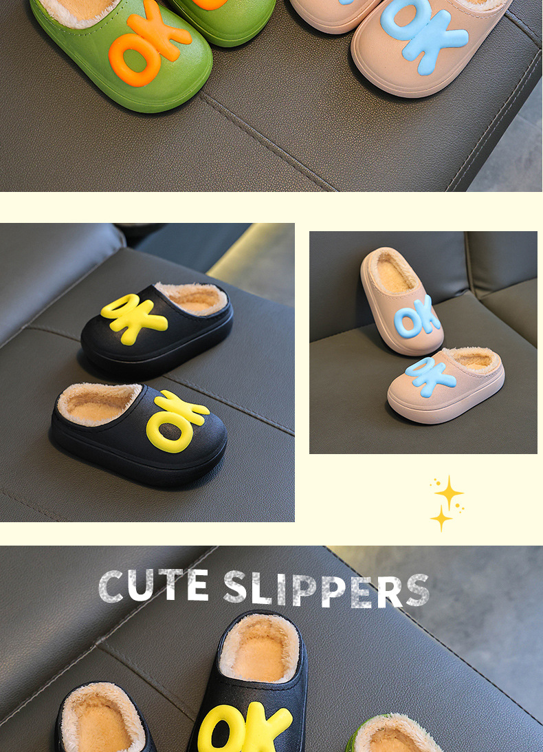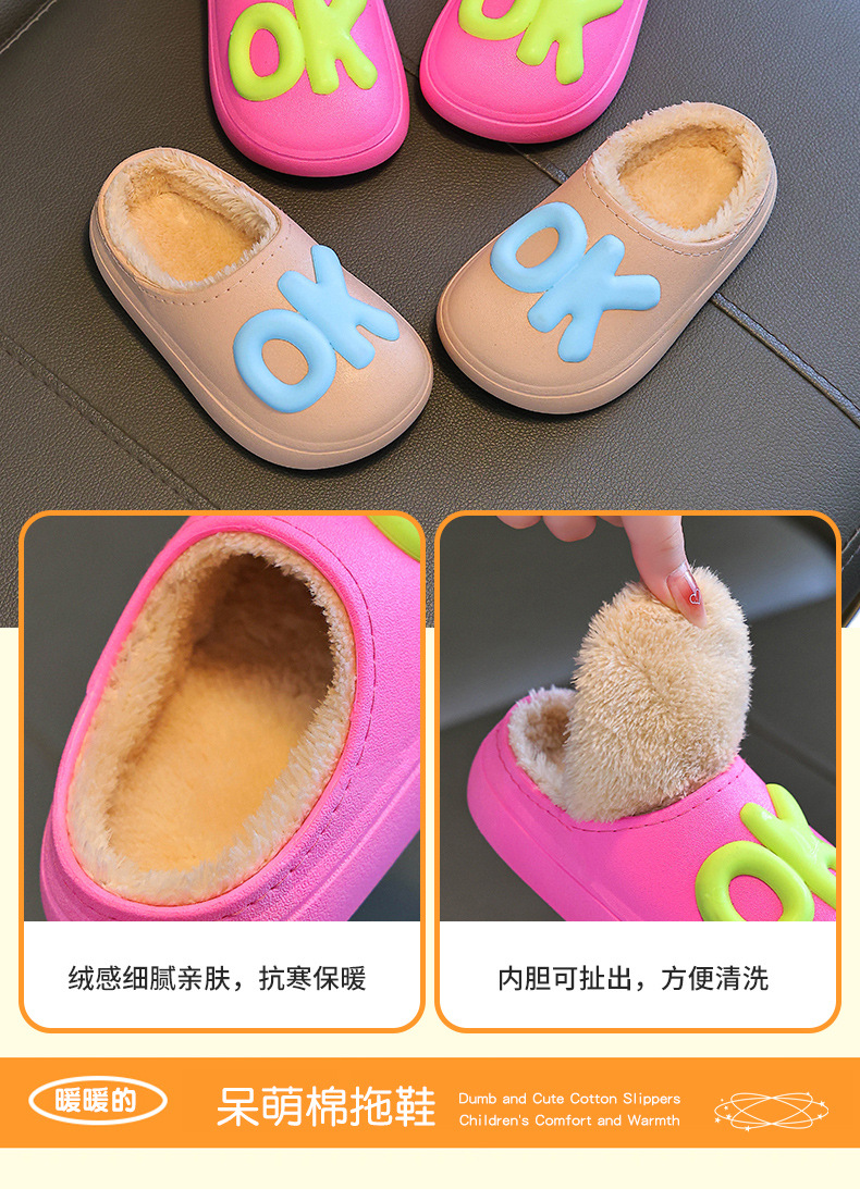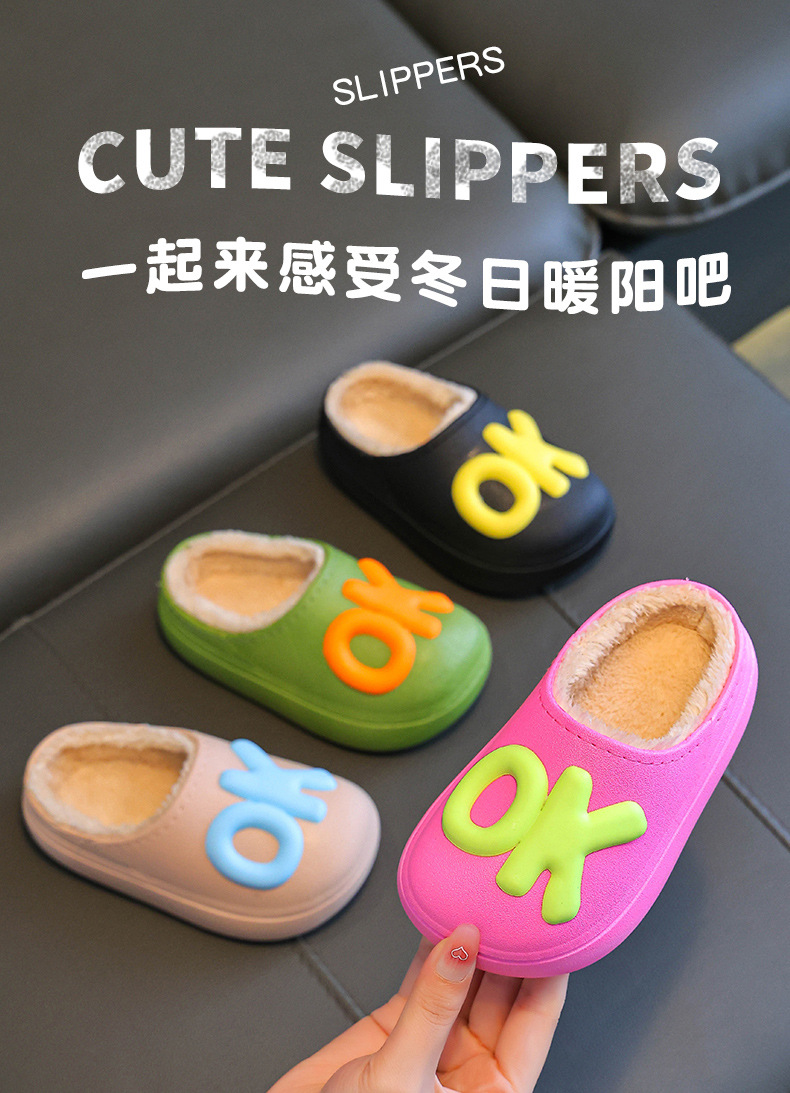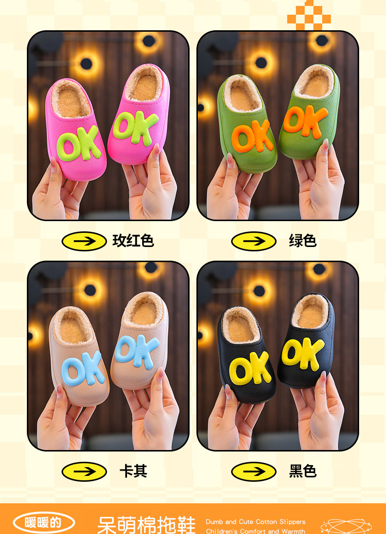 어린이용 면 슬리퍼 실내용 미끄럼 방지 따뜻한 남녀 공용 방수 부드러운 밑창 가정용 부모-자녀 신발 남아용 면 신발스토어 가기