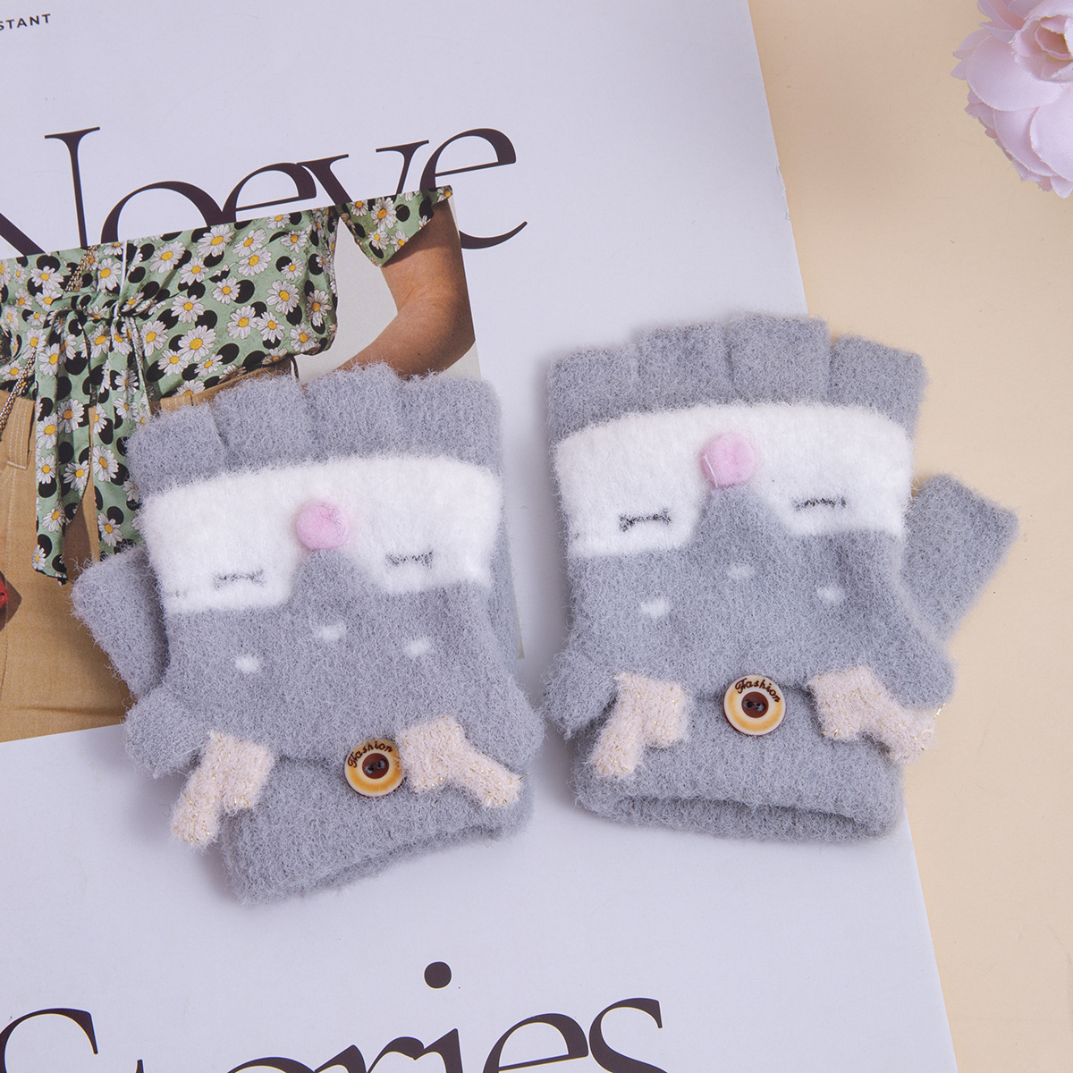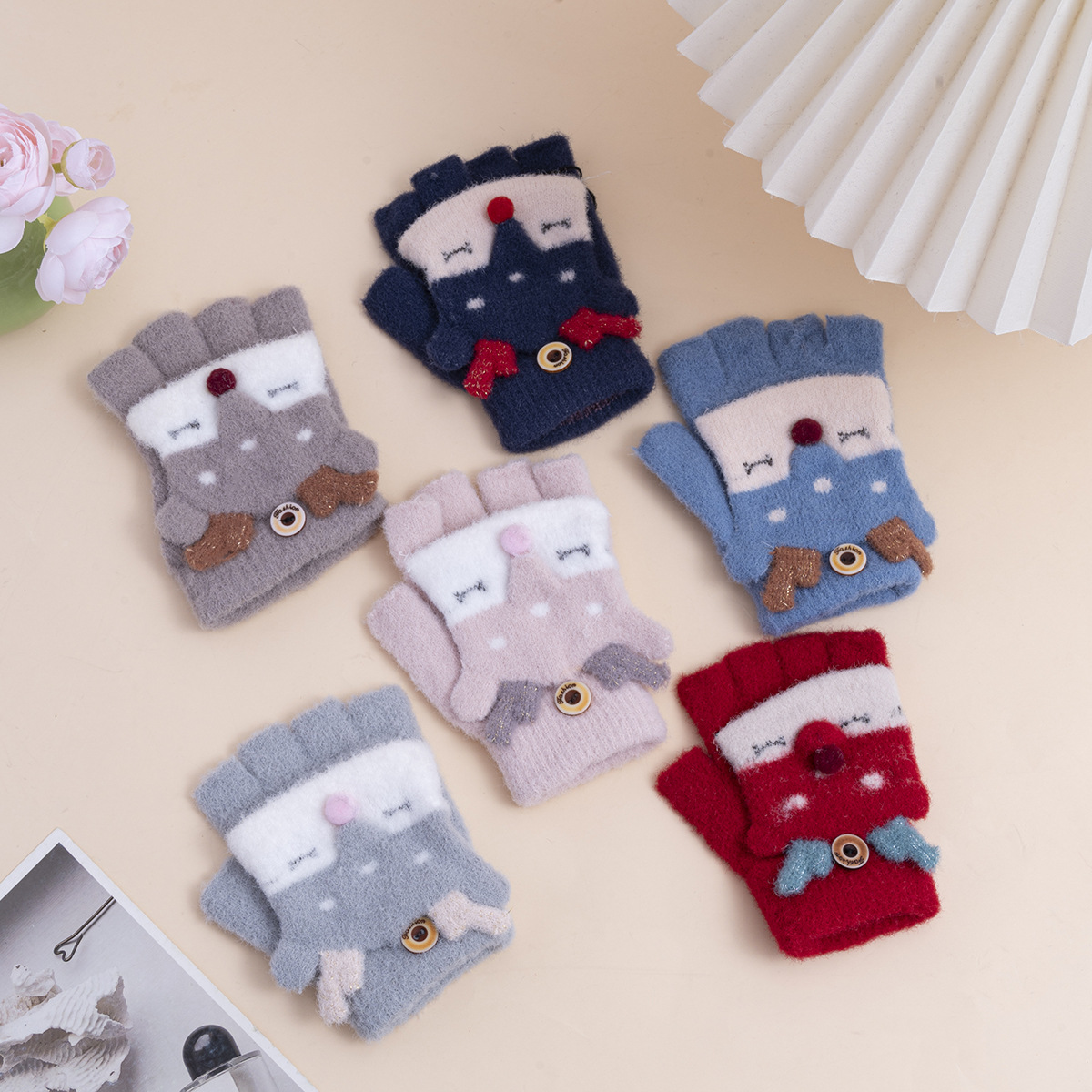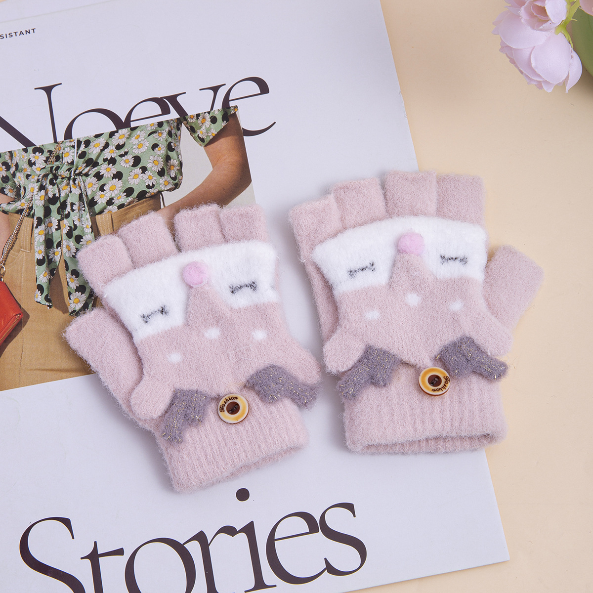 어린이 플립 장갑 귀여운 만화 아기 차가운 글쓰기 장갑 학생과 어린이를위한 가을과 겨울 두꺼운 따뜻한 장갑