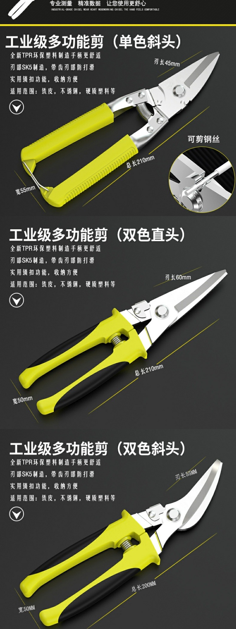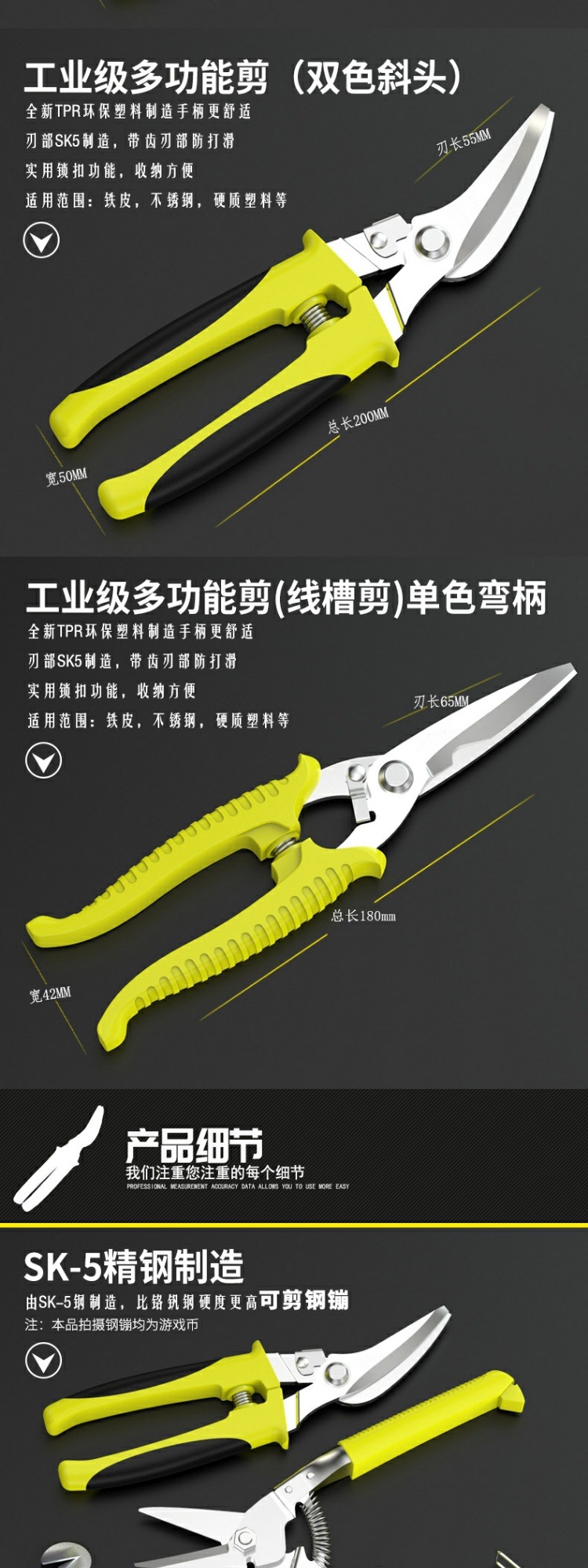 • 업그레이드된 단색 손잡이 강력한 철 가위 [비스듬한 머리]