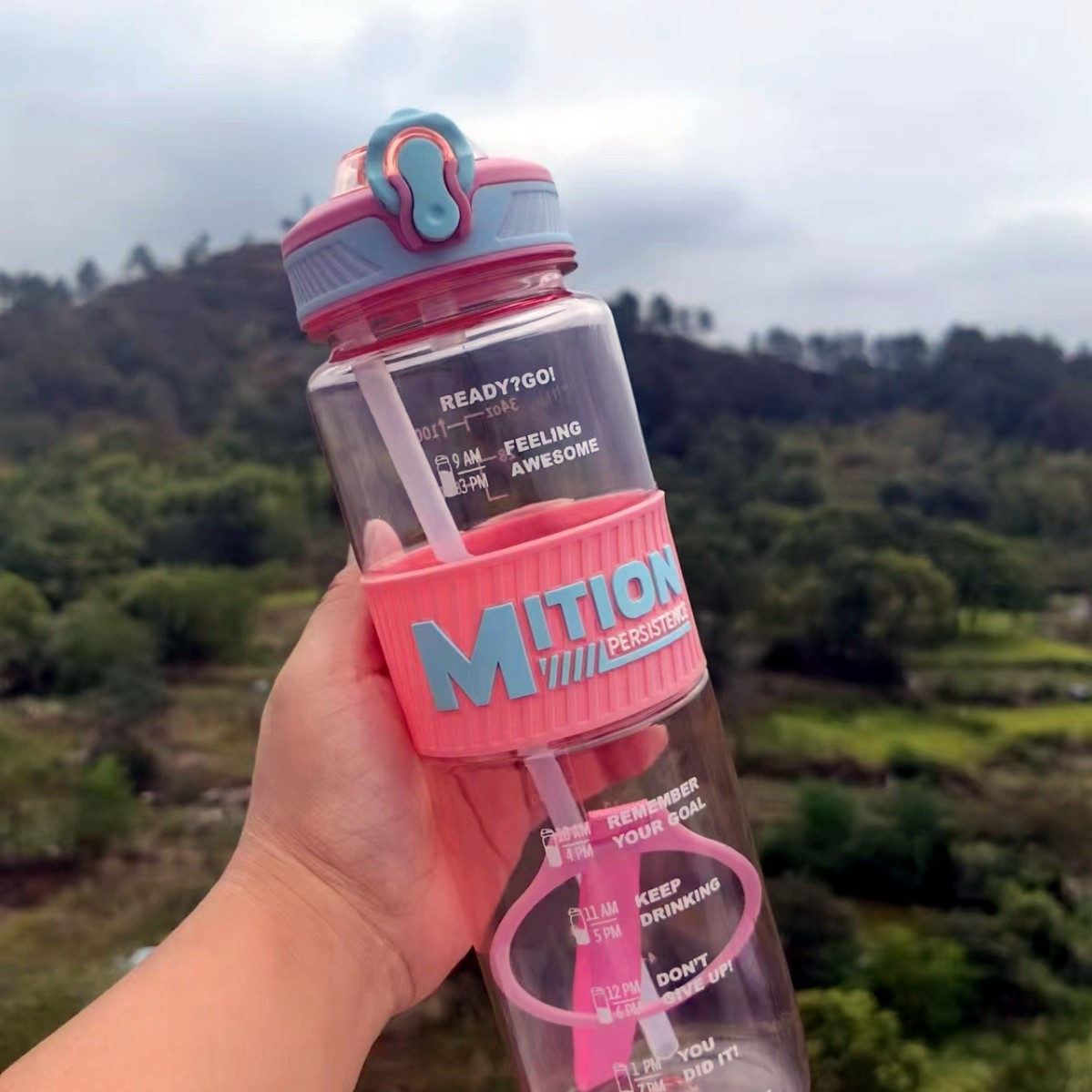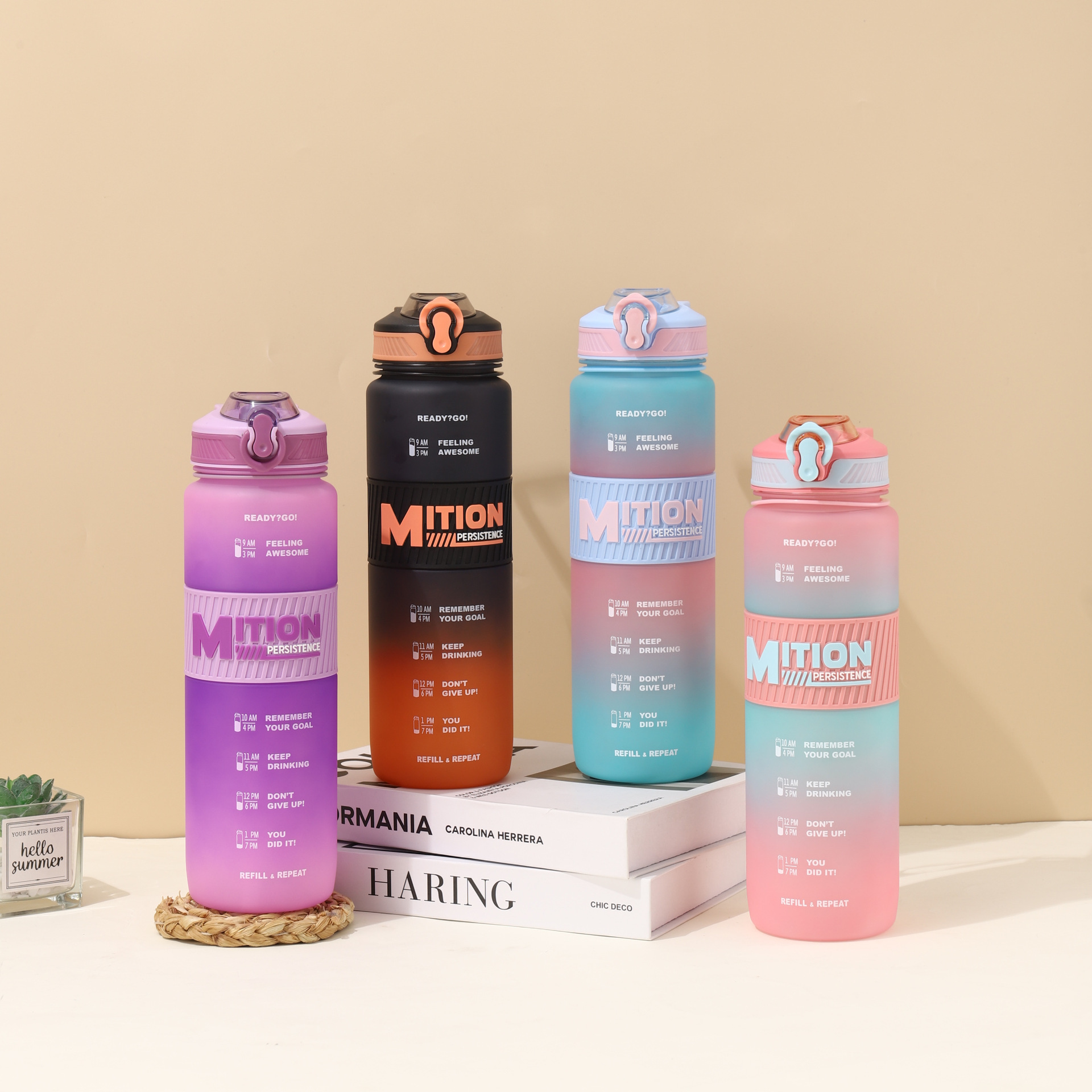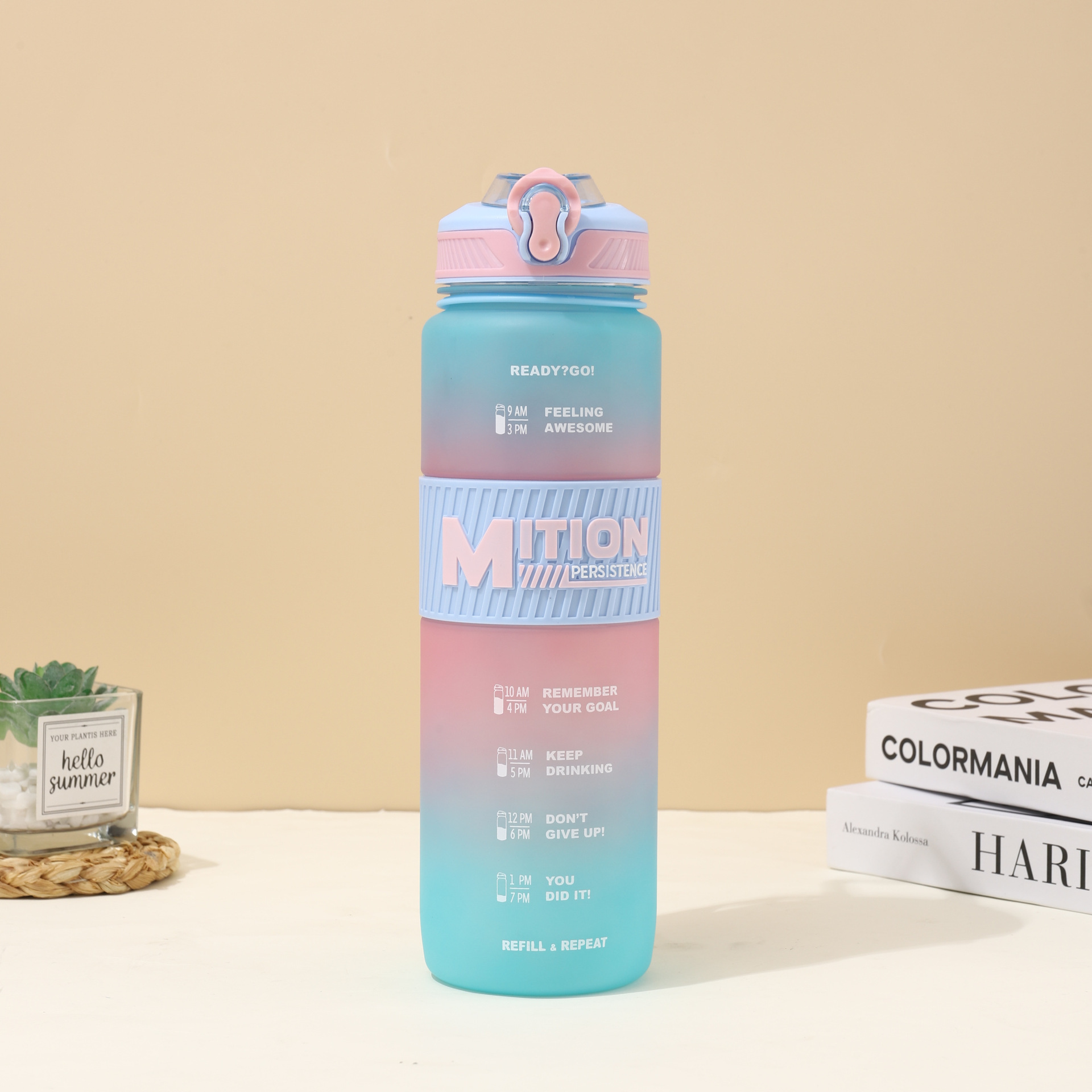 폭발성 그라디언트 플라스틱 컵 대용량 높은 색상 가치 스포츠 물 주전자 밀짚 휴대용 물 컵 야외 등산 냄비