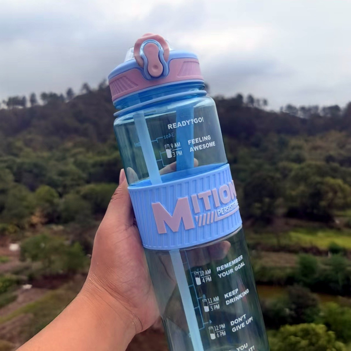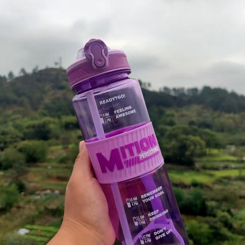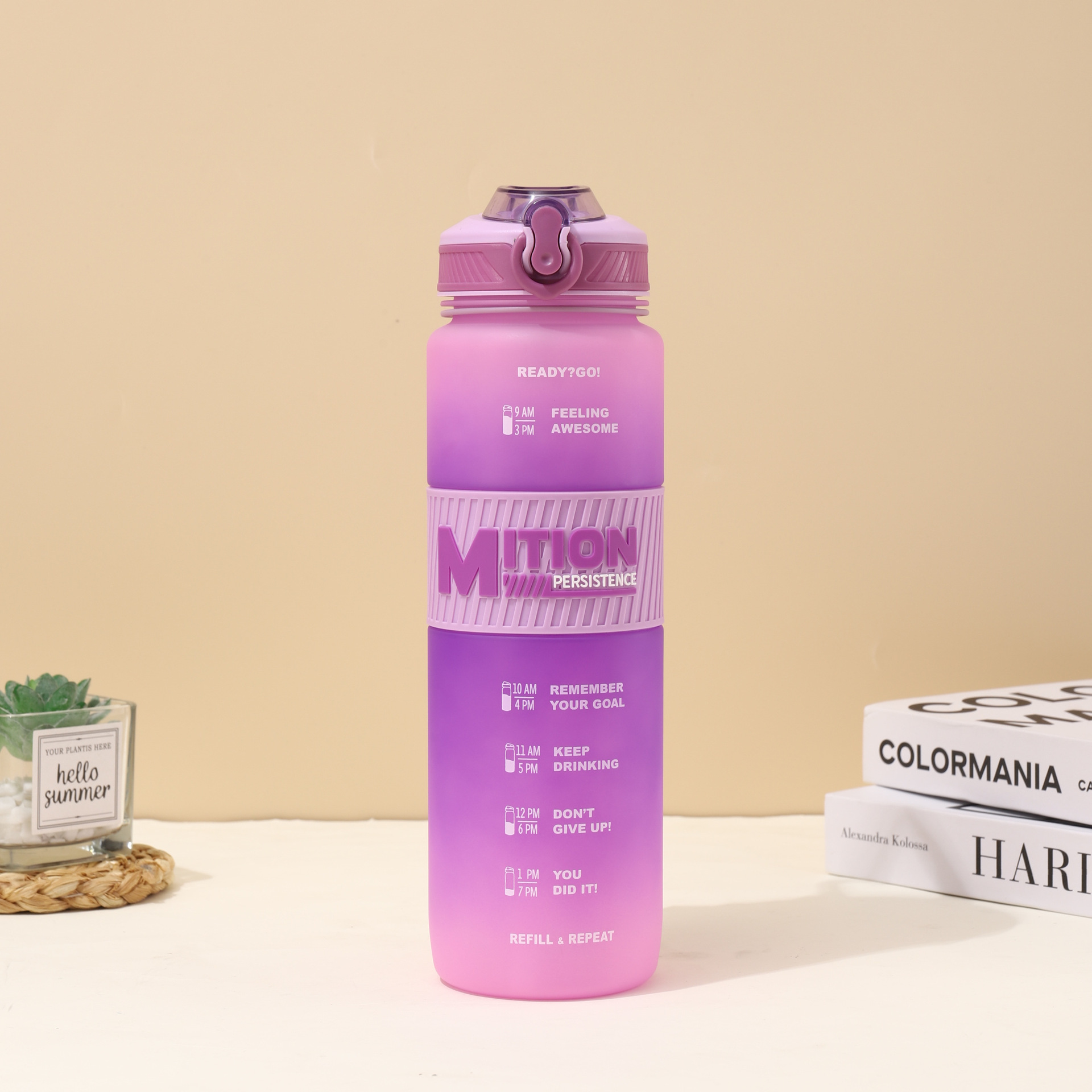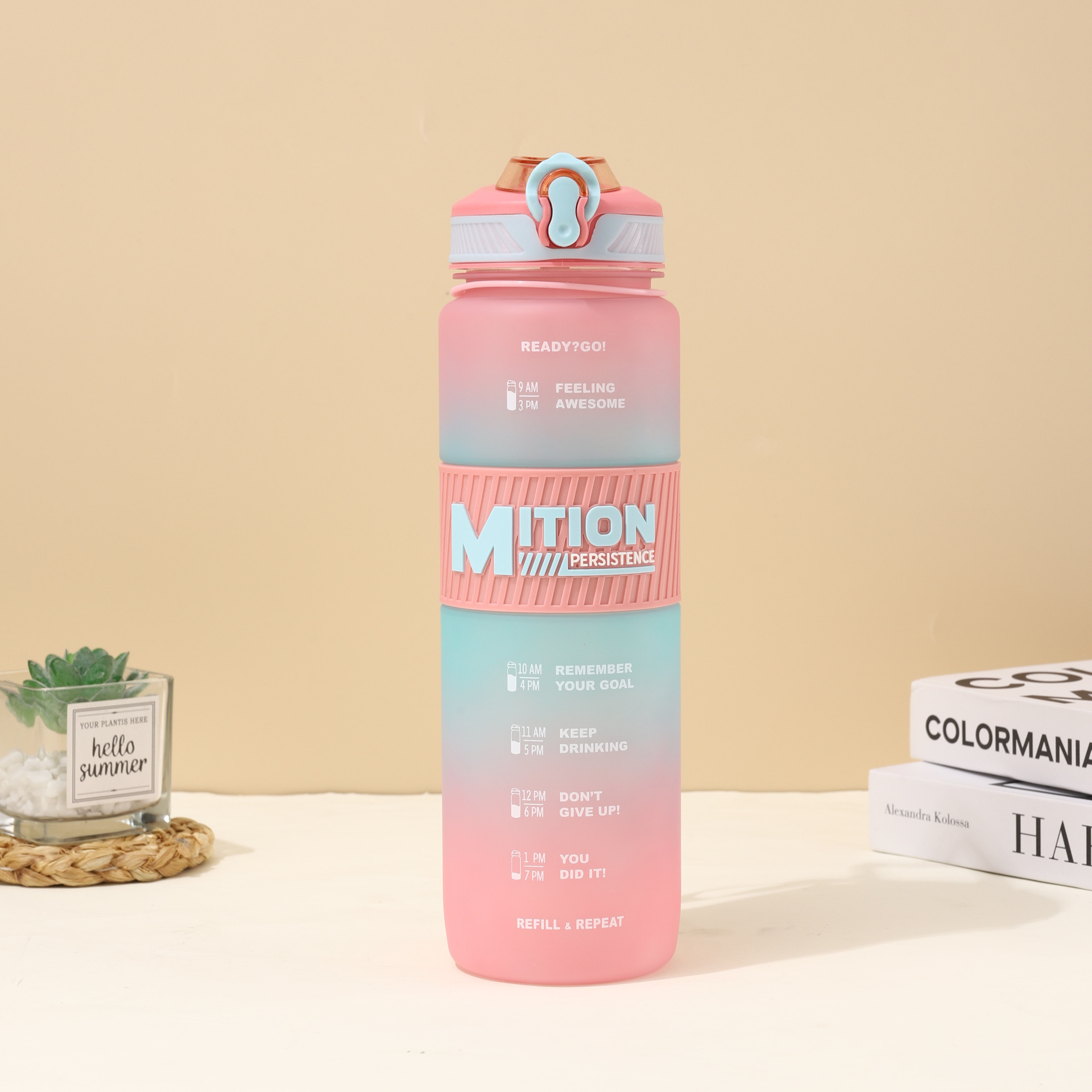 폭발성 그라디언트 플라스틱 컵 대용량 높은 색상 가치 스포츠 물 주전자 밀짚 휴대용 물 컵 야외 등산 냄비