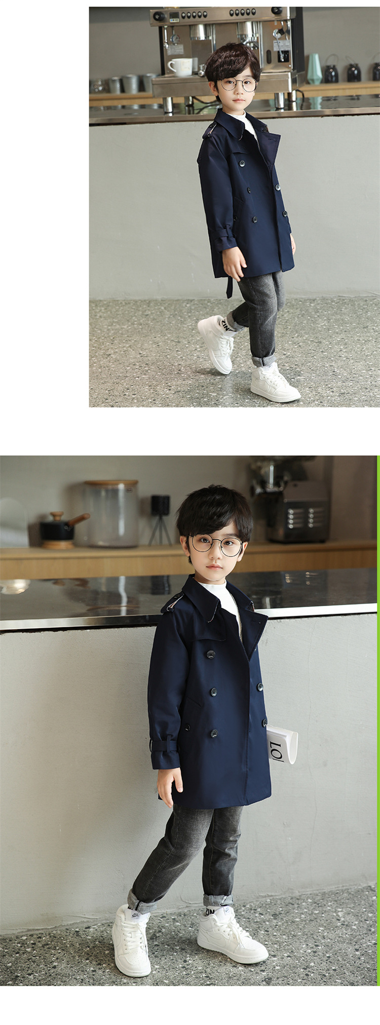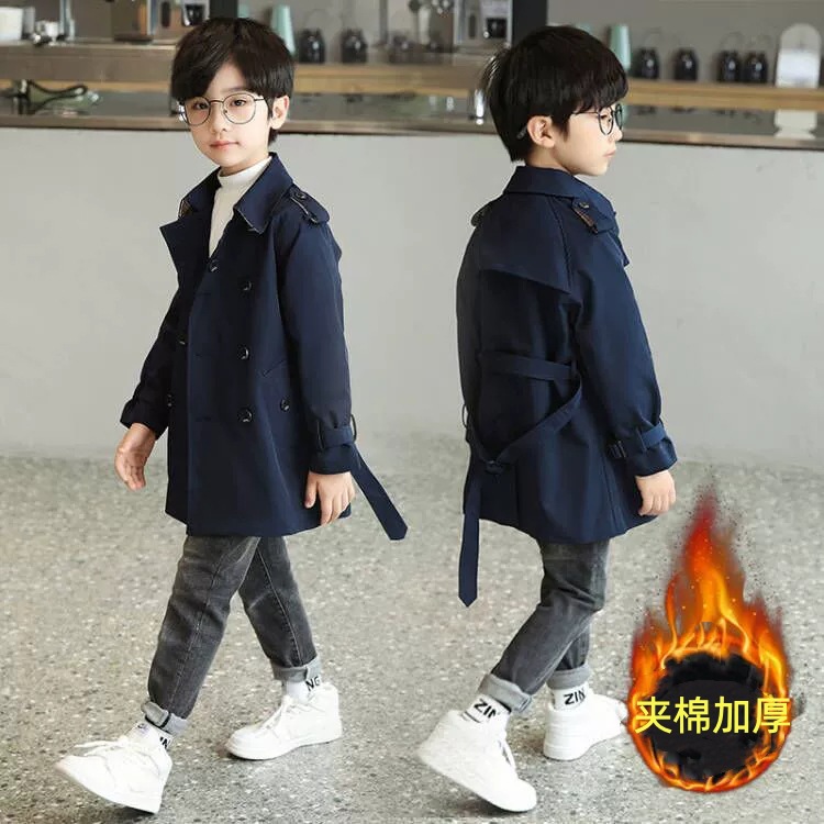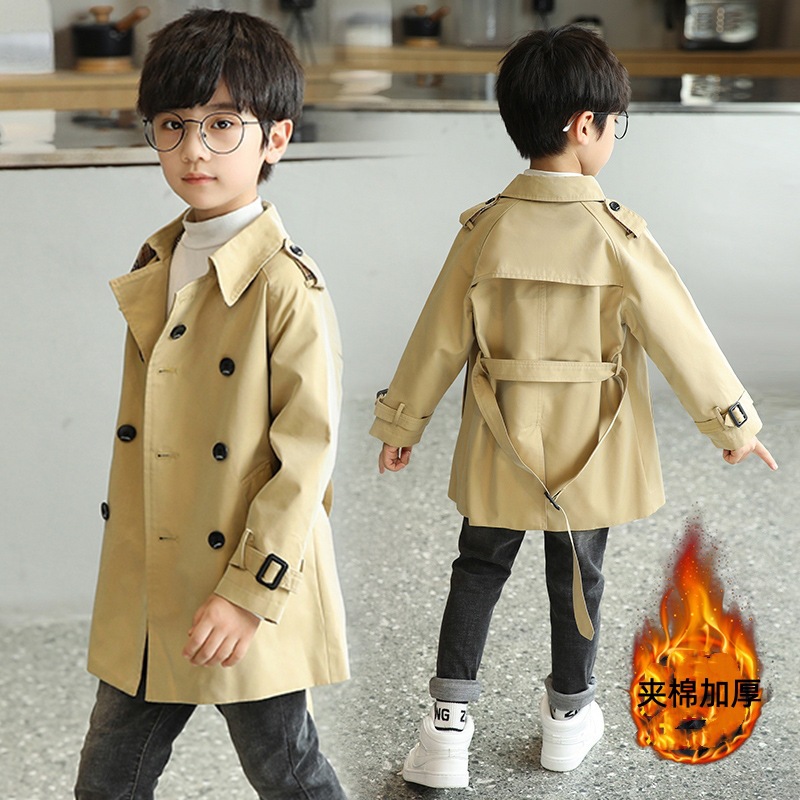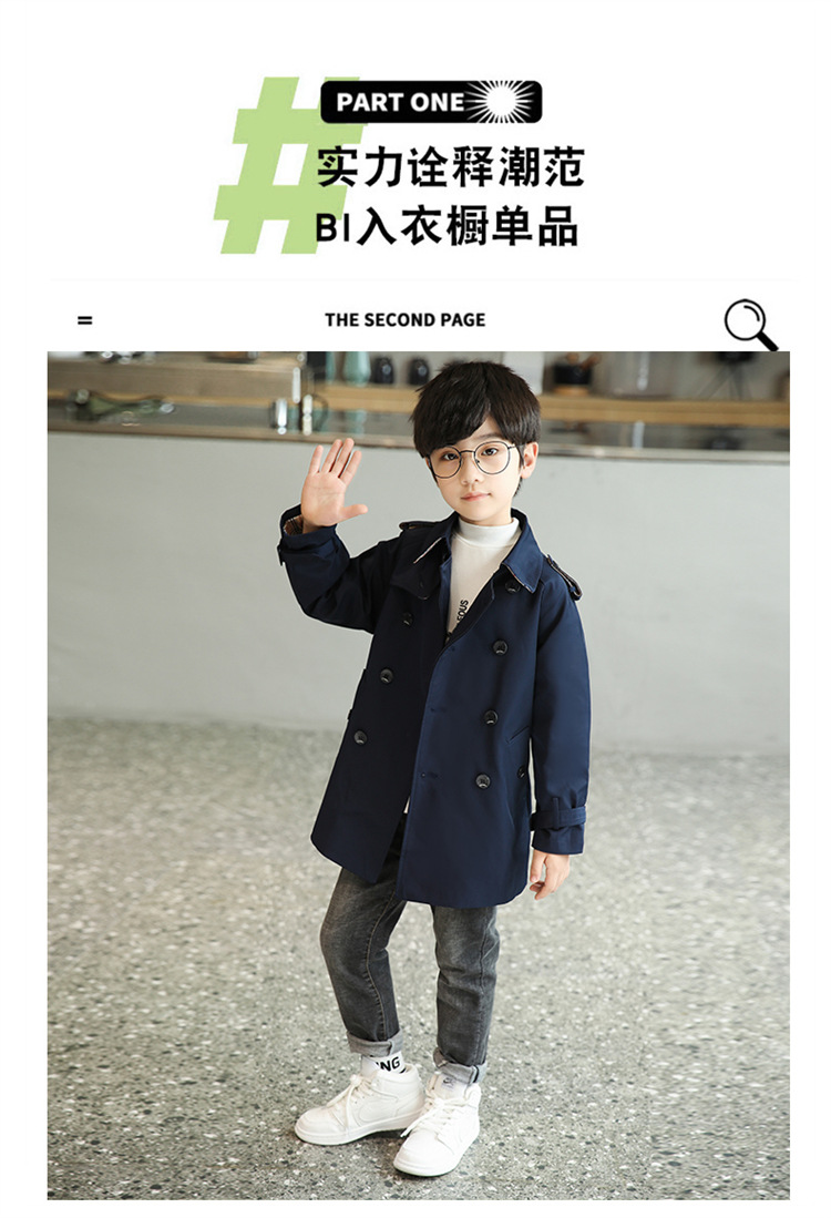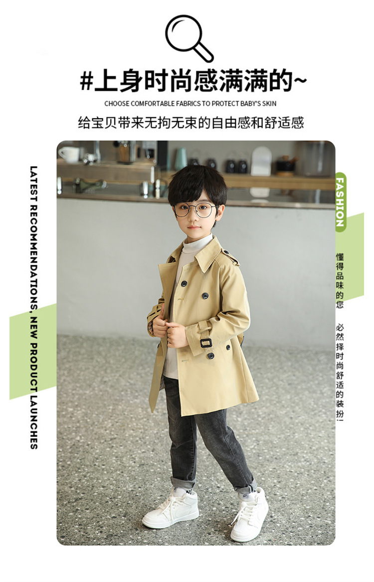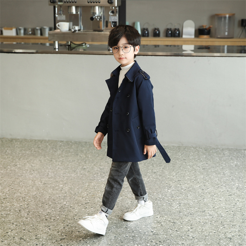남아용 윈드브레이커 2026 가을 신상 아동용 중간 길이 솔리드 컬러 허리 조절 가능 라펠 코트 패셔너블한 영국 스타일 오버코트스토어 가기