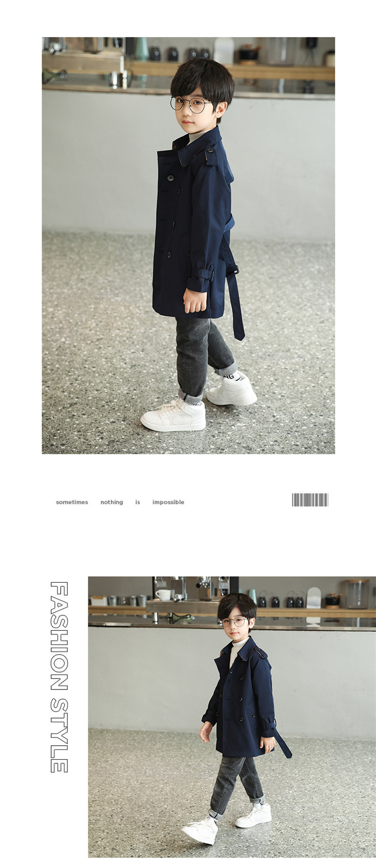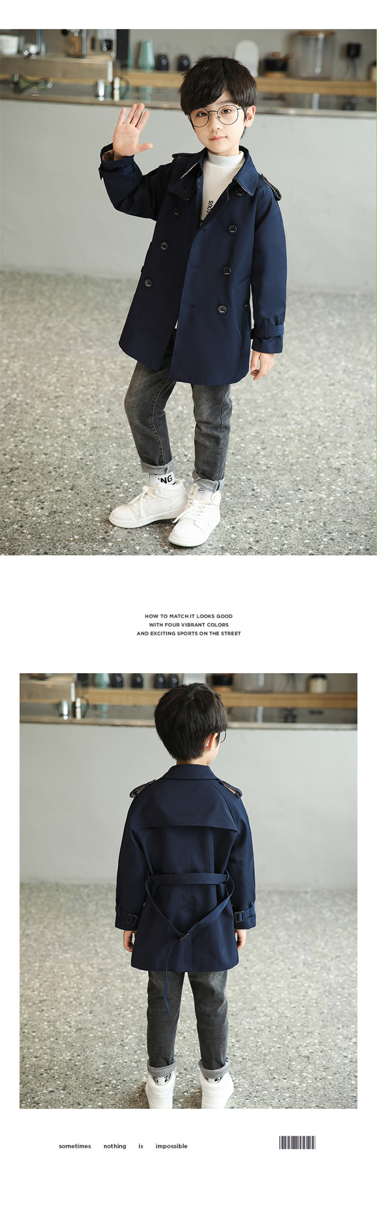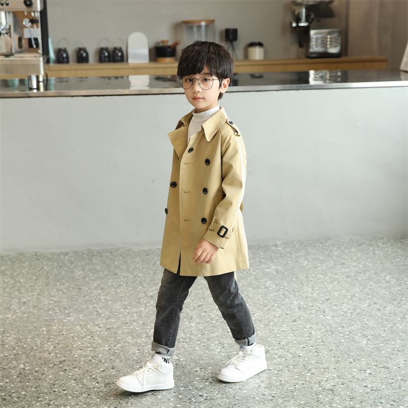 남아용 윈드브레이커 2026 가을 신상 아동용 중간 길이 솔리드 컬러 허리 조절 가능 라펠 코트 패셔너블한 영국 스타일 오버코트