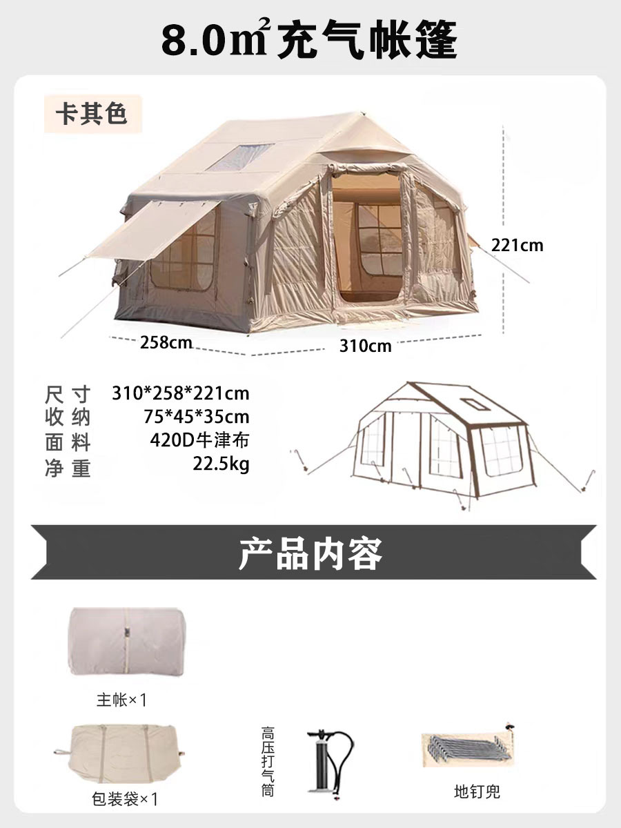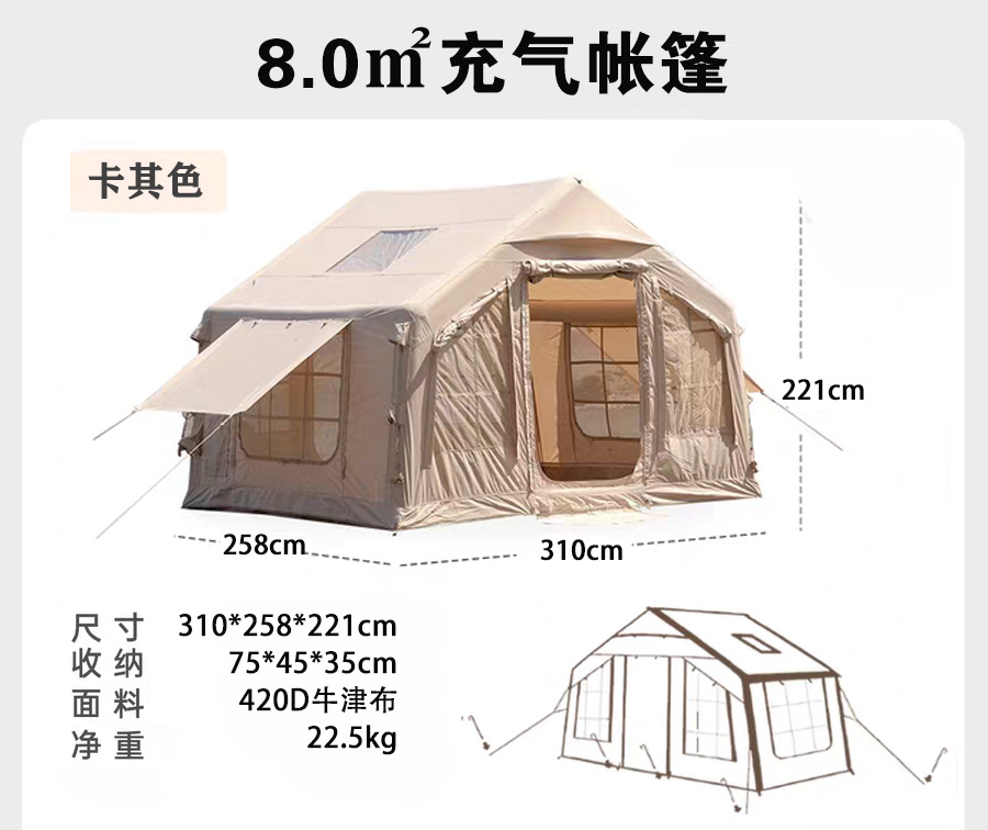 8제곱미터 크기의 풍선형 텐트, 야외 캠핑 여행용, 휴대 가능, 통기성, 방수, 자외선 차단, 두꺼운 소재, 내마모성, 방풍, 설치 불필요스토어 가기