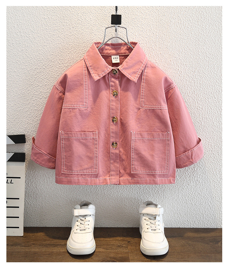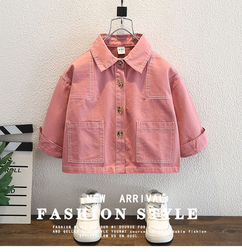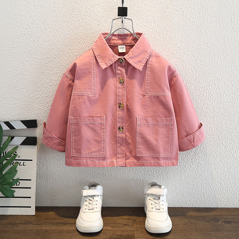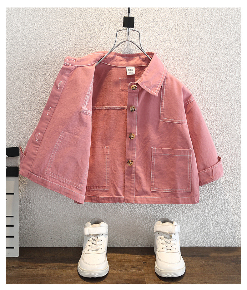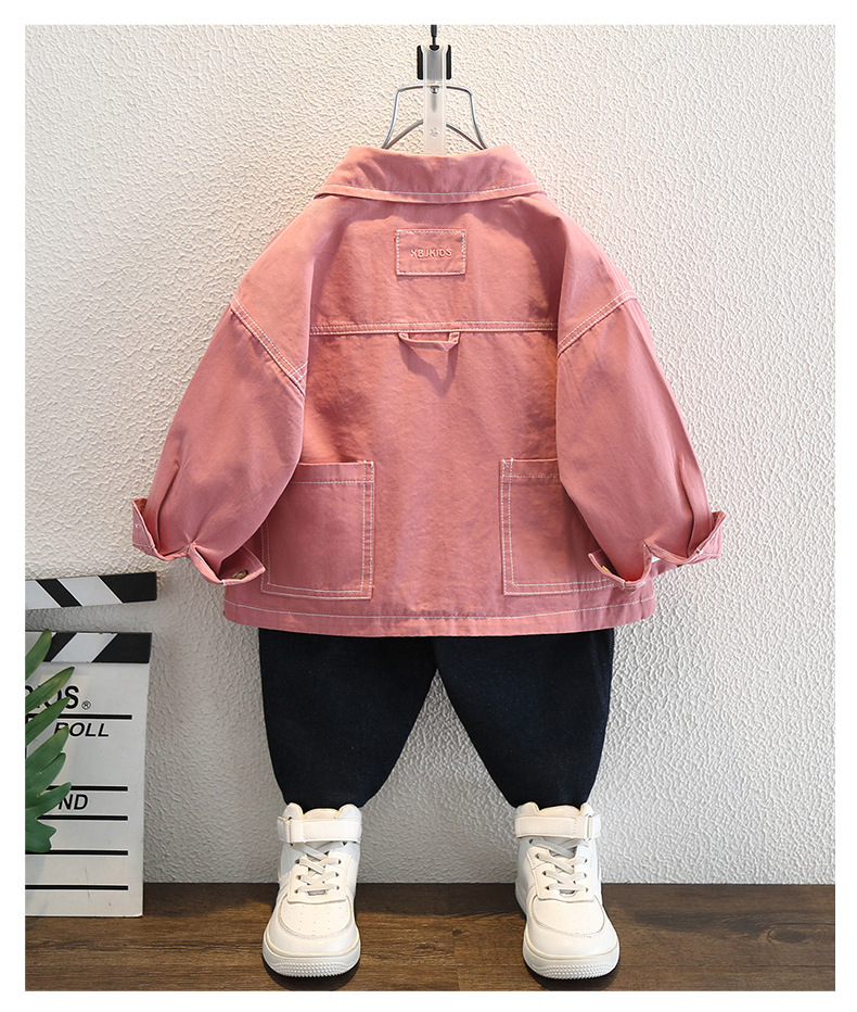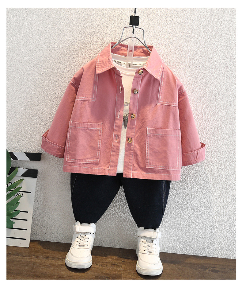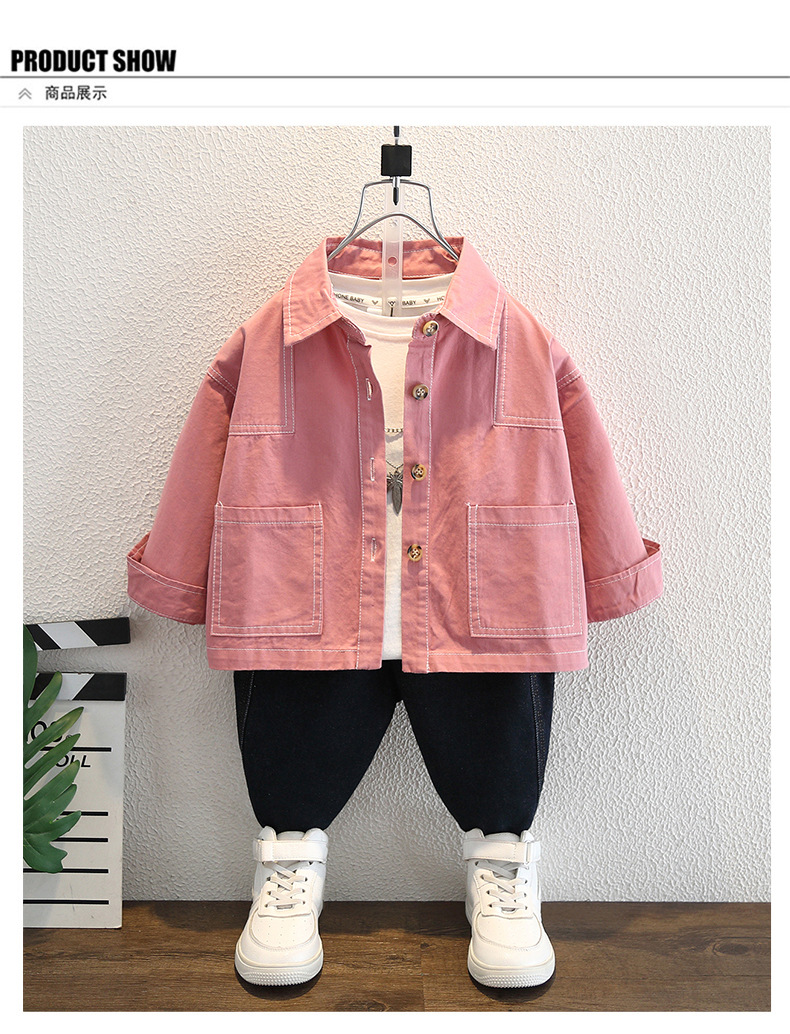남아 핑크색 코트 가을옷 2025 신상 중소형 아동용 멋진 데님 재킷 패셔너블한 재킷 상의 트렌디하고 멋진 아동복스토어 가기