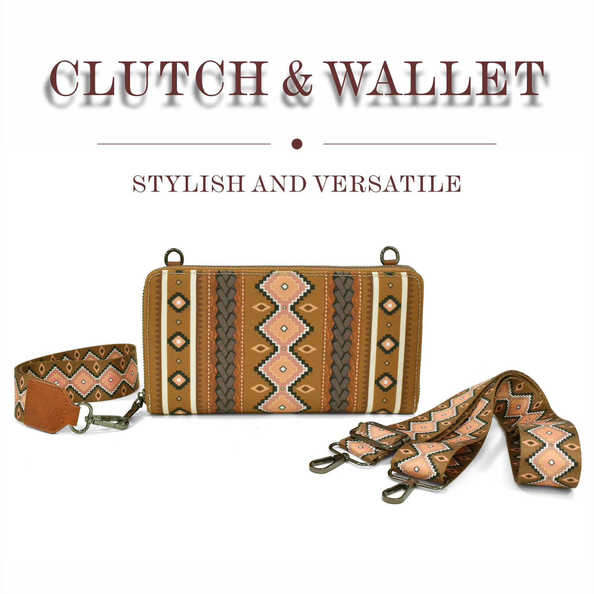 국경 간 뜨거운 보헤미안 민족 스타일 유럽과 미국의 레트로 지퍼 캔버스 클러치 작은 지갑 유행 휴대용 여성