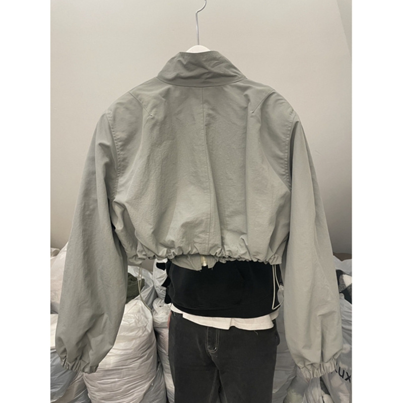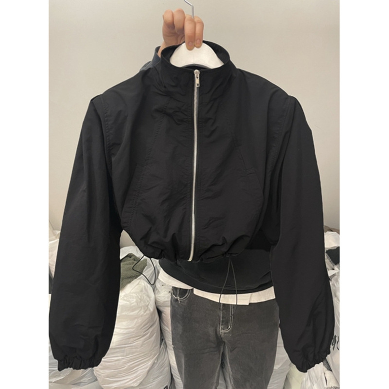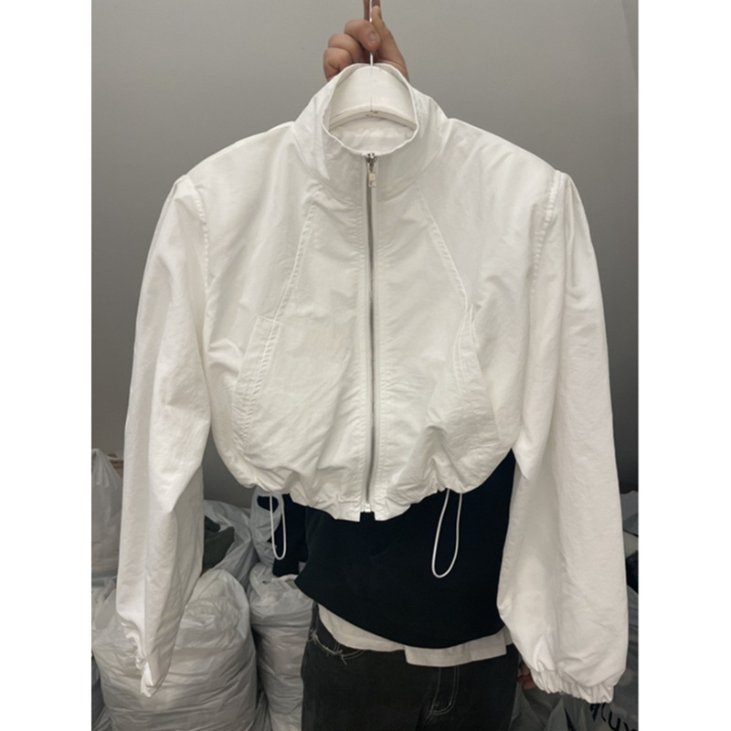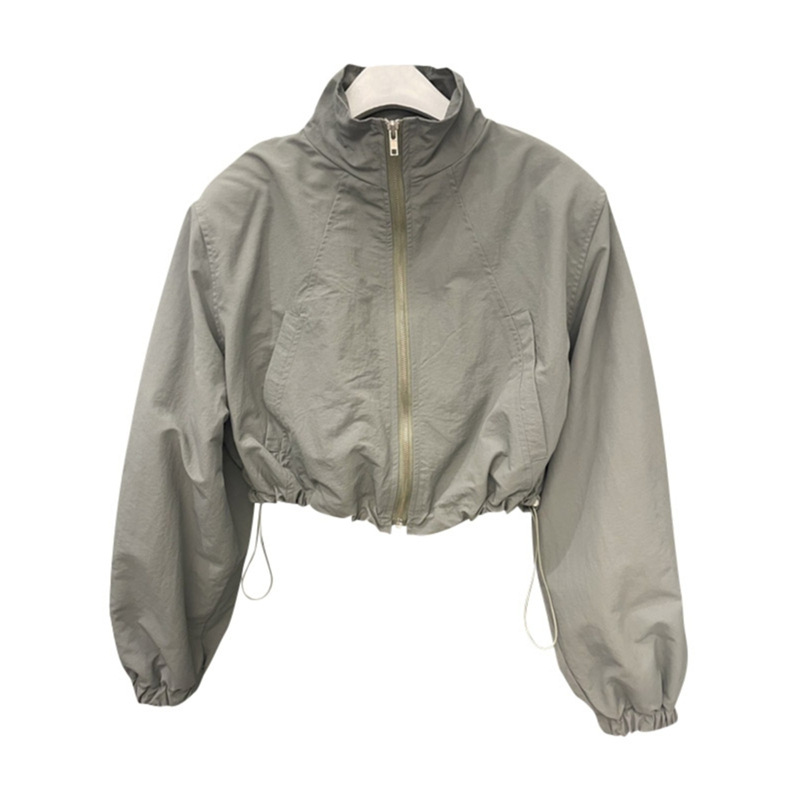 2024 봄 새로운 캐주얼 칼라 드로우 스트링 지퍼 디자인 센스 짧은 긴팔 스포츠 재킷 여성을위한 올 매치 재킷스토어 가기