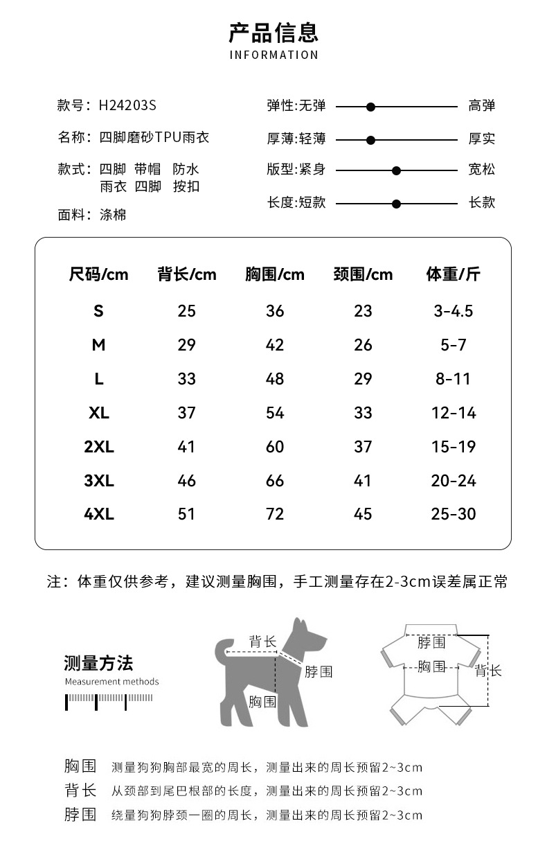 추적 가능한 중소 개 비옷 방수 올인 클루 지 아키타 개 테디 애완 동물 비오는 날 네 다리 옷스토어 가기