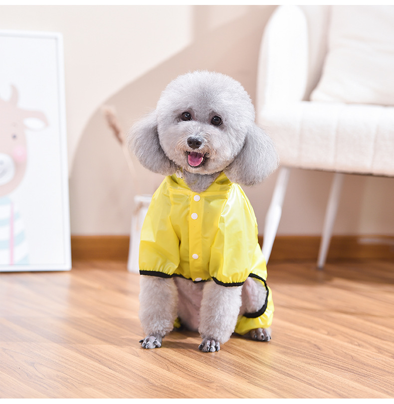 추적 가능한 중소 개 비옷 방수 올인 클루 지 아키타 개 테디 애완 동물 비오는 날 네 다리 옷
