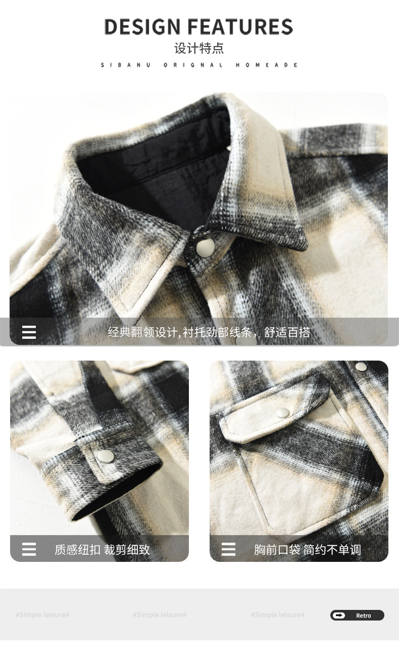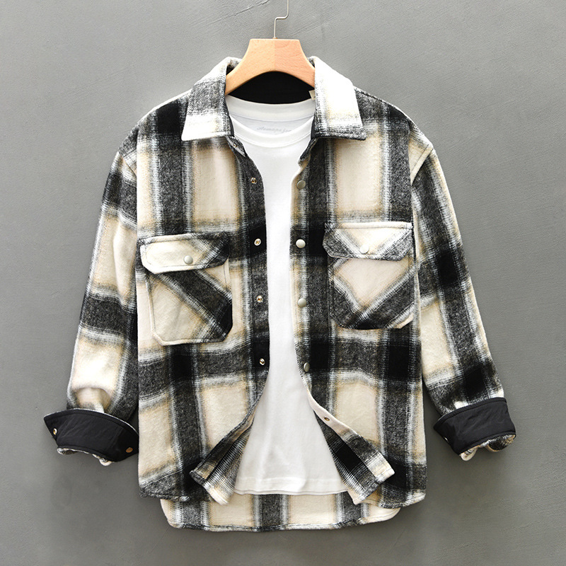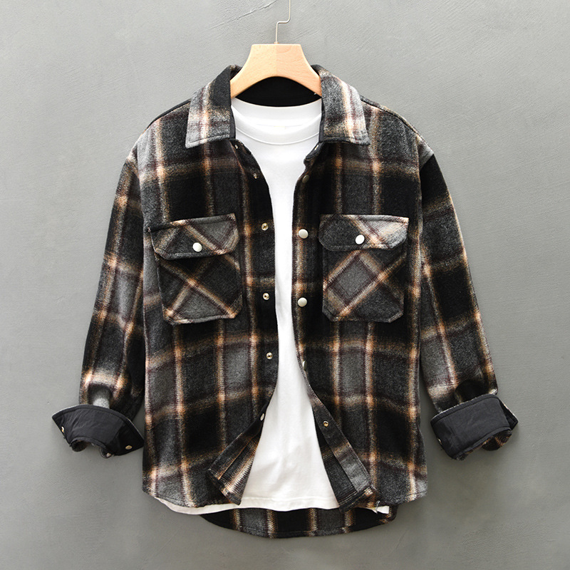 Z262 남자의 가을 새로운 빈티지 격자 무늬 캐주얼 셔츠스토어 가기
