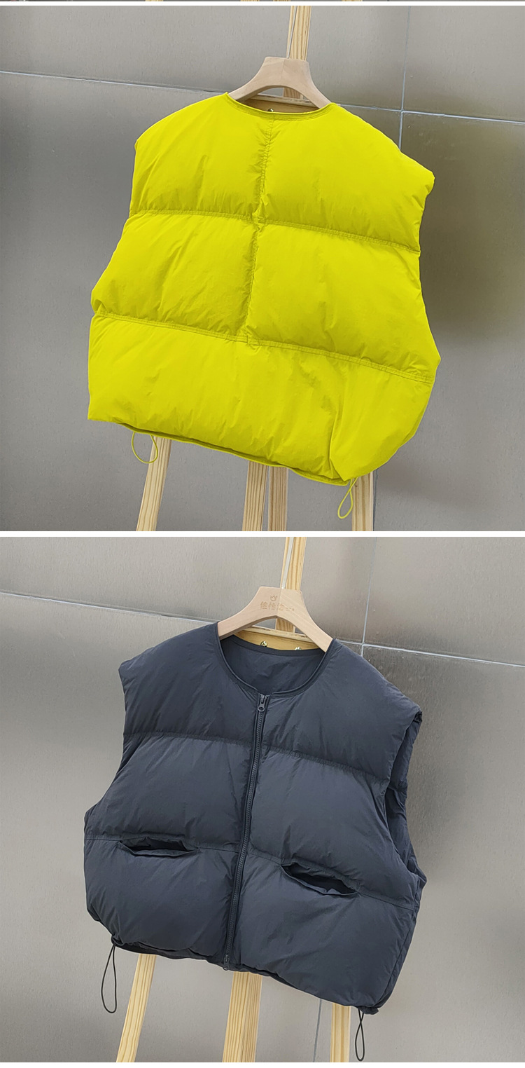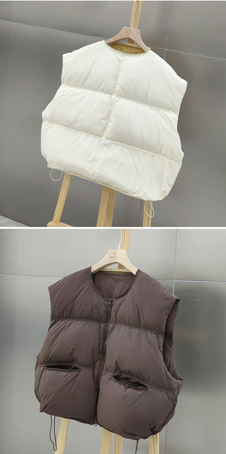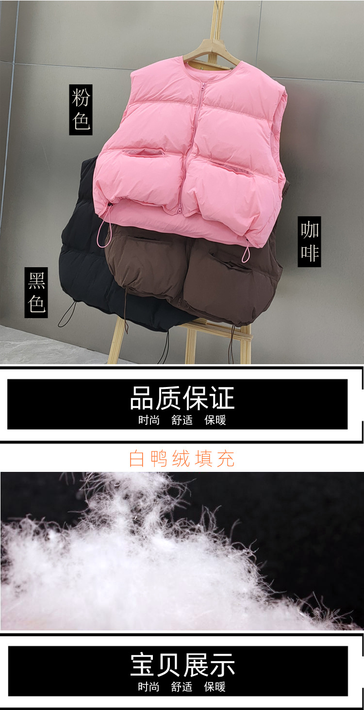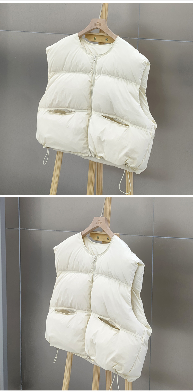 2025 가을 겨울 신상 여성용 다운 조끼 짧은 스타일 라운드넥 두꺼운 루즈핏 조끼 화이트 덕다운 재킷스토어 가기