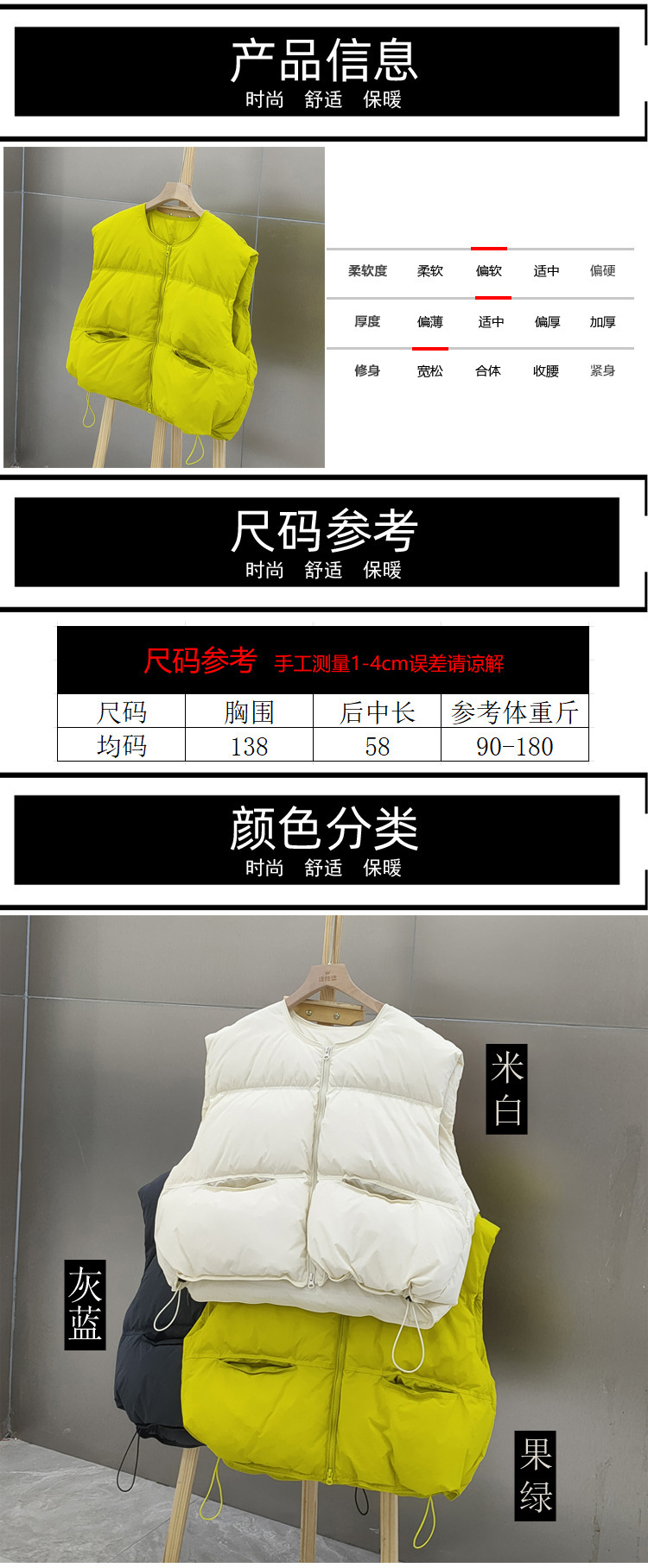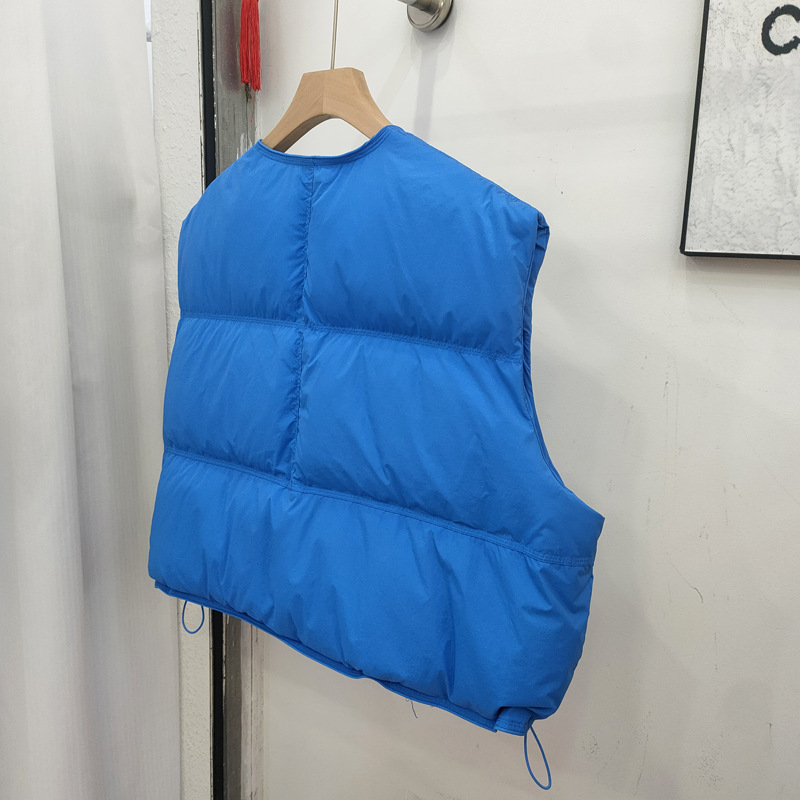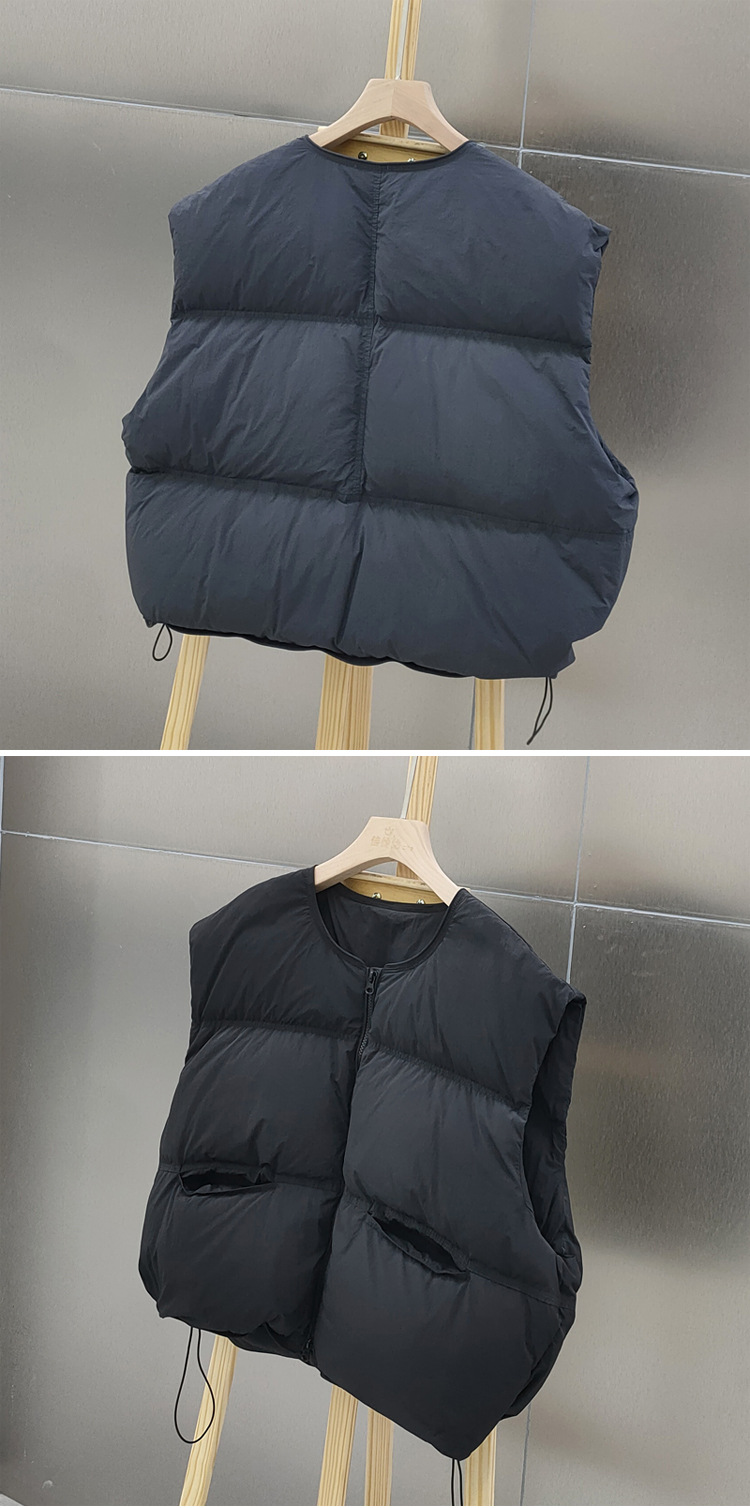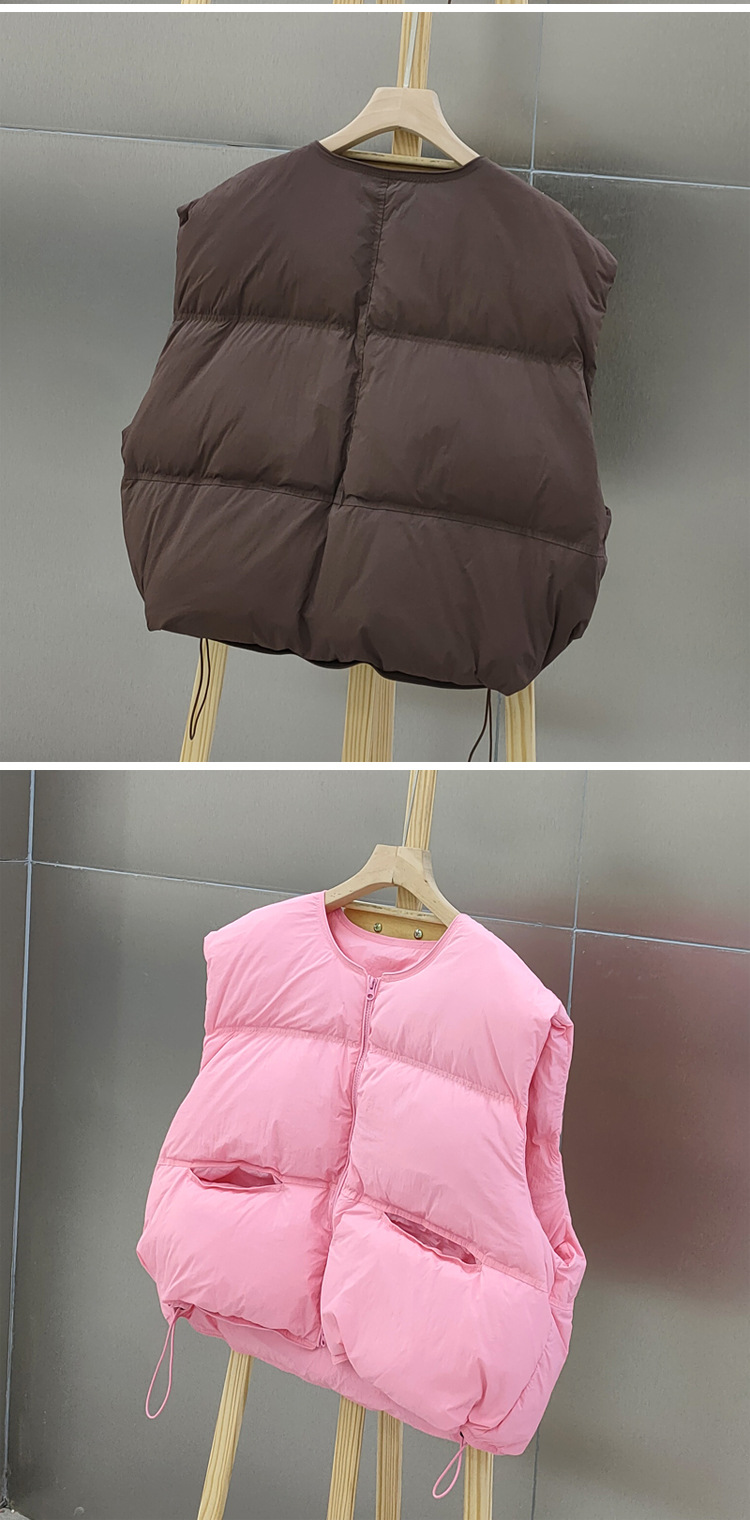 2025 가을 겨울 신상 여성용 다운 조끼 짧은 스타일 라운드넥 두꺼운 루즈핏 조끼 화이트 덕다운 재킷스토어 가기