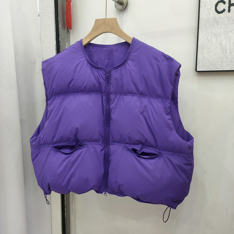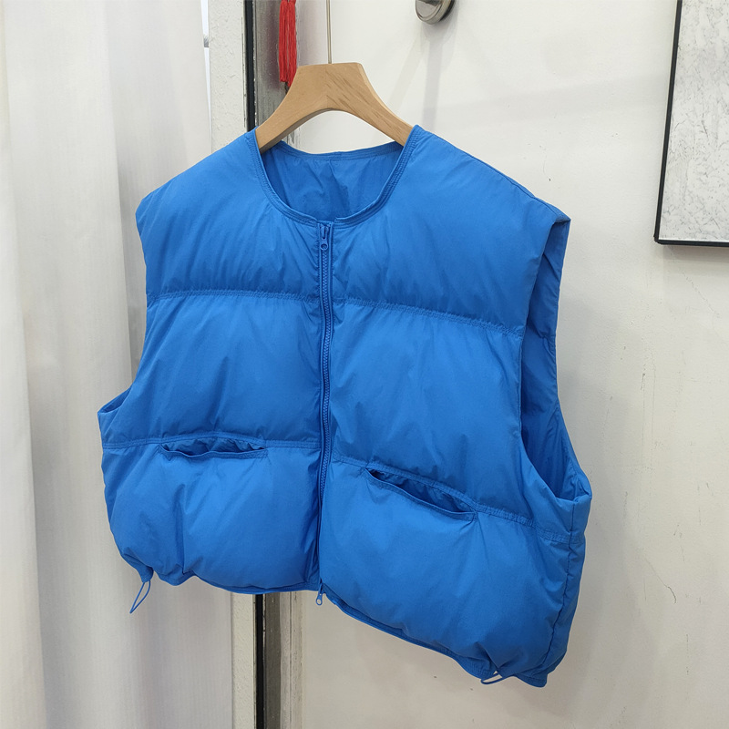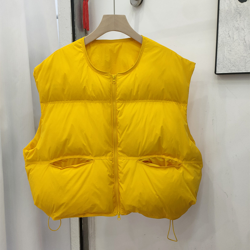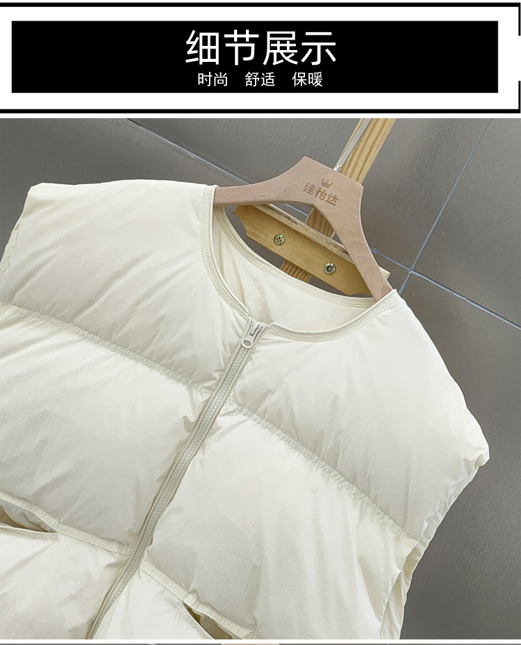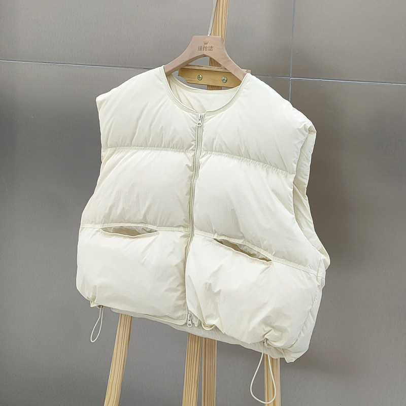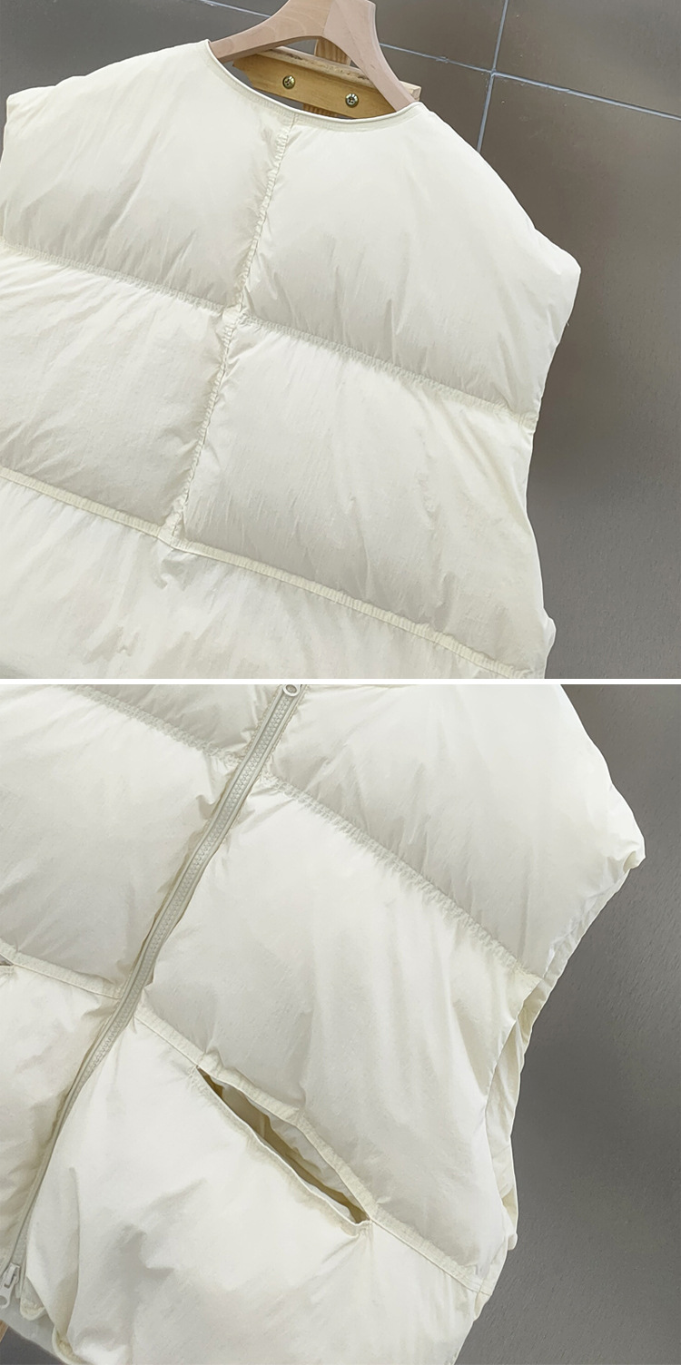 2025 가을 겨울 신상 여성용 다운 조끼 짧은 스타일 라운드넥 두꺼운 루즈핏 조끼 화이트 덕다운 재킷