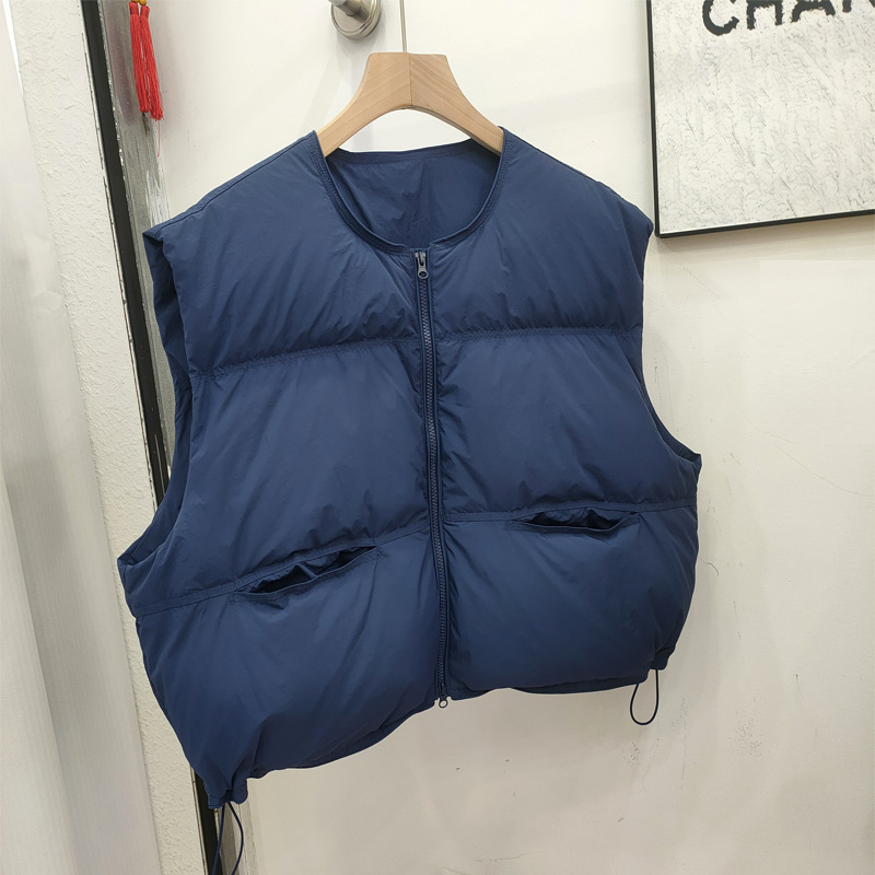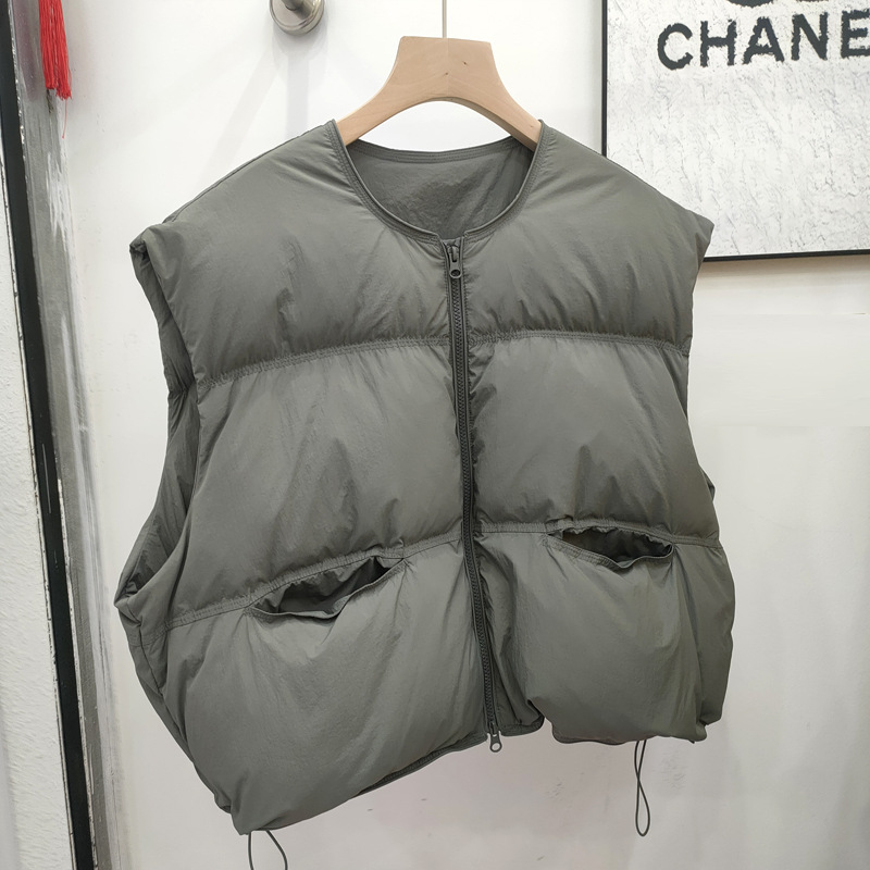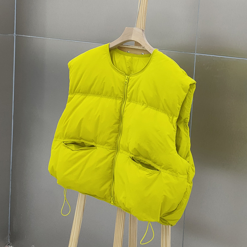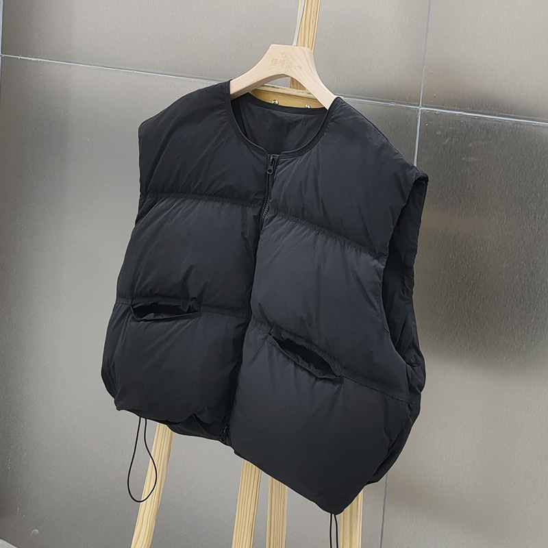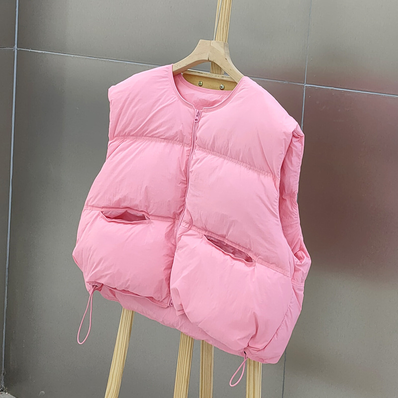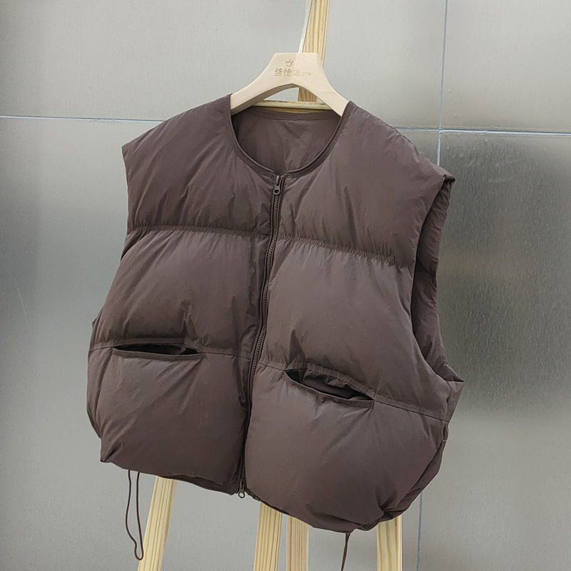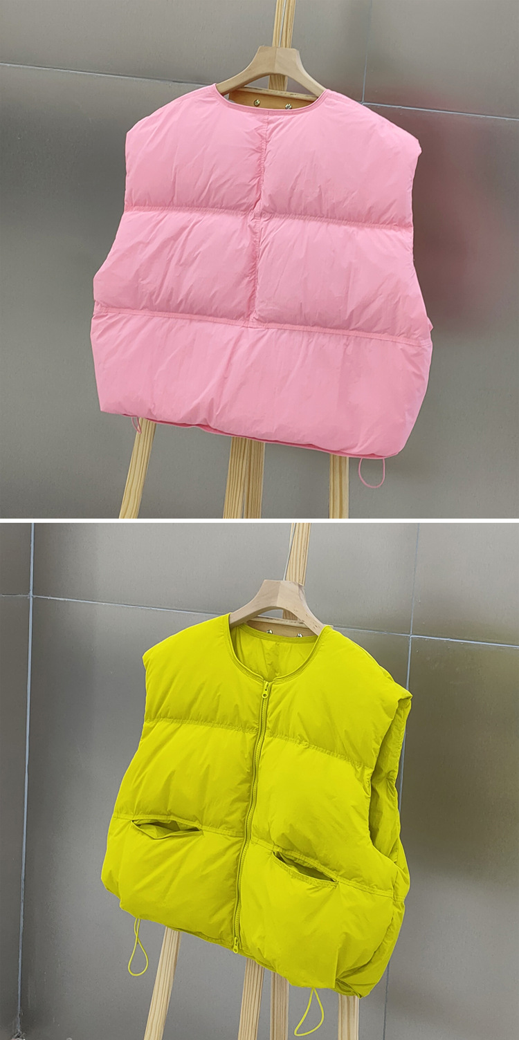 2025 가을 겨울 신상 여성용 다운 조끼 짧은 스타일 라운드넥 두꺼운 루즈핏 조끼 화이트 덕다운 재킷