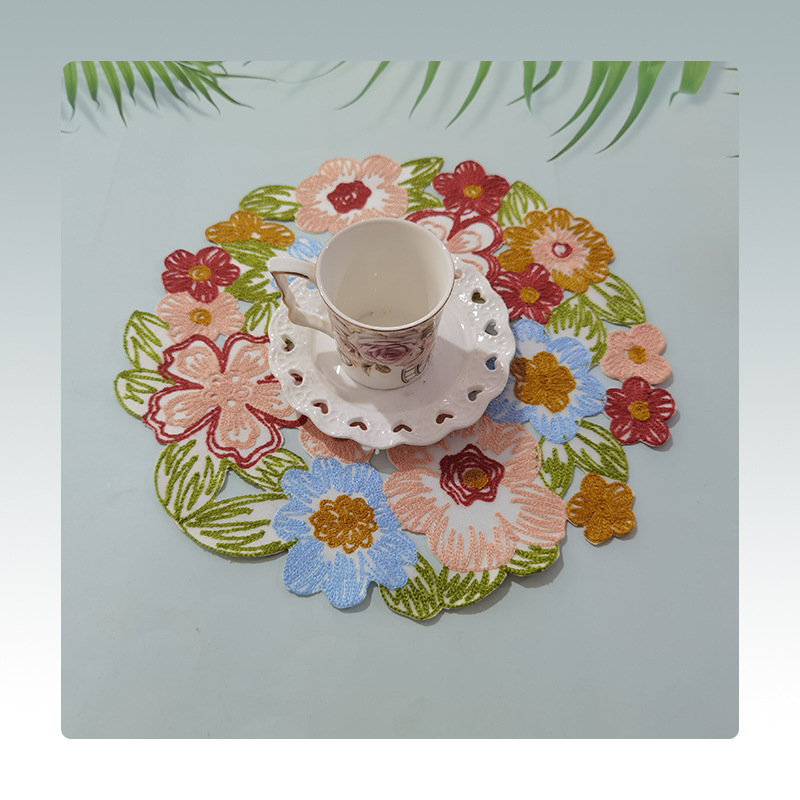 공장 직접 컵 받침 장식 꽃 플레이스 수건 자수 색상 작은 꽃 플레이트 플레이스 장식 매트스토어 가기