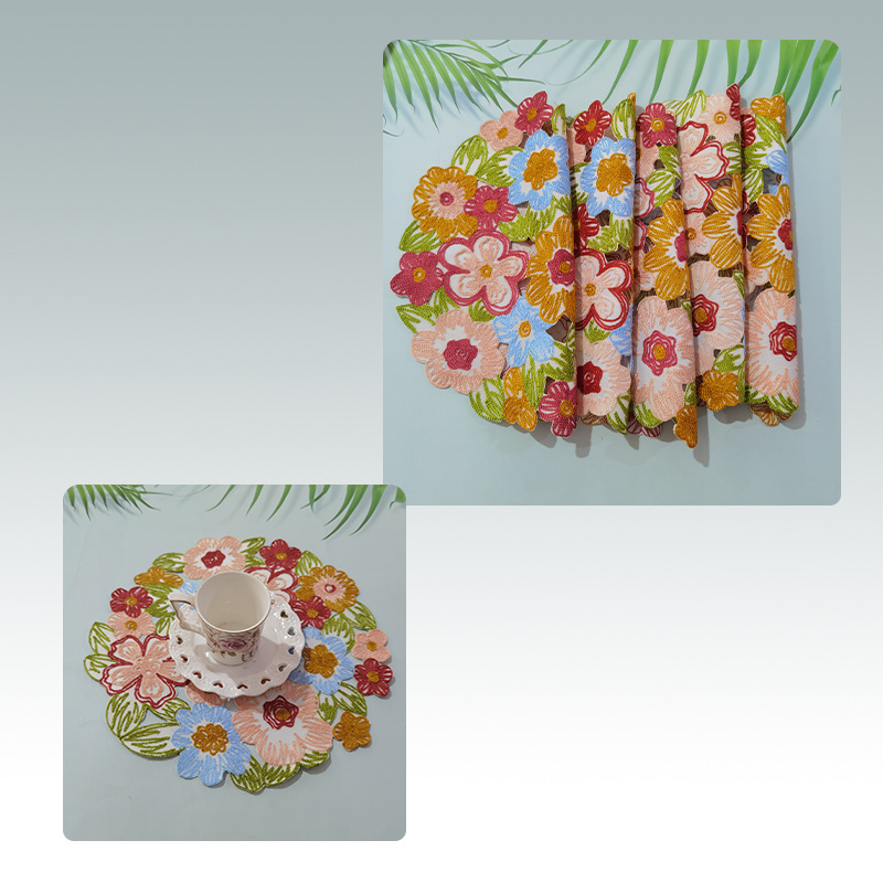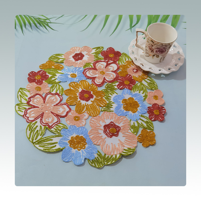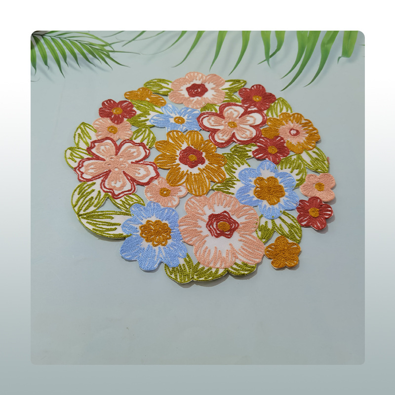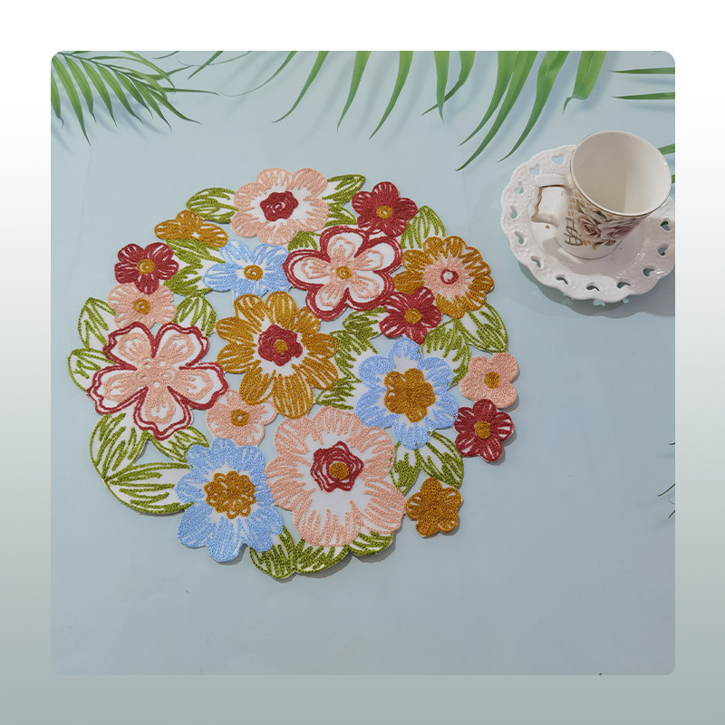 공장 직접 컵 받침 장식 꽃 플레이스 수건 자수 색상 작은 꽃 플레이트 플레이스 장식 매트