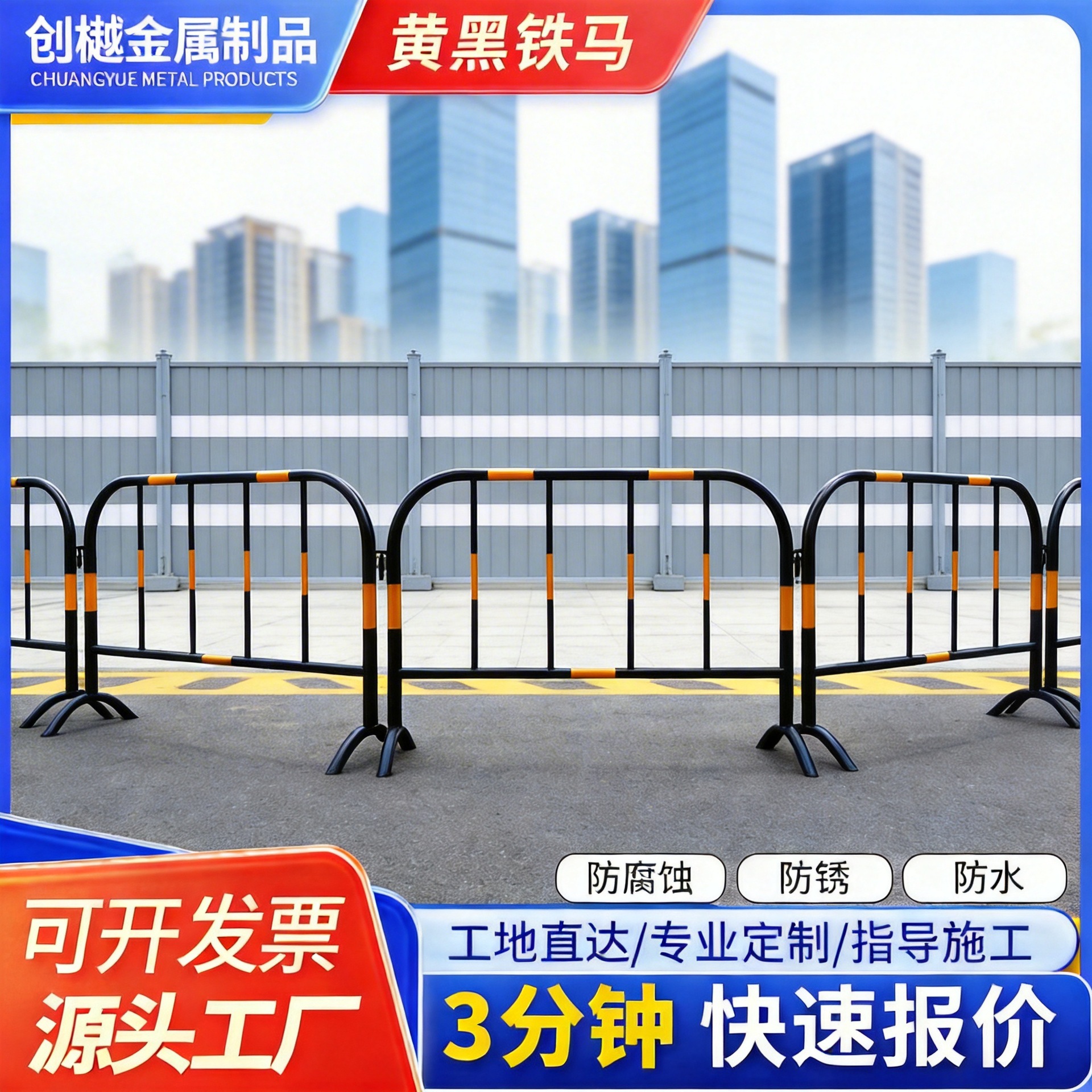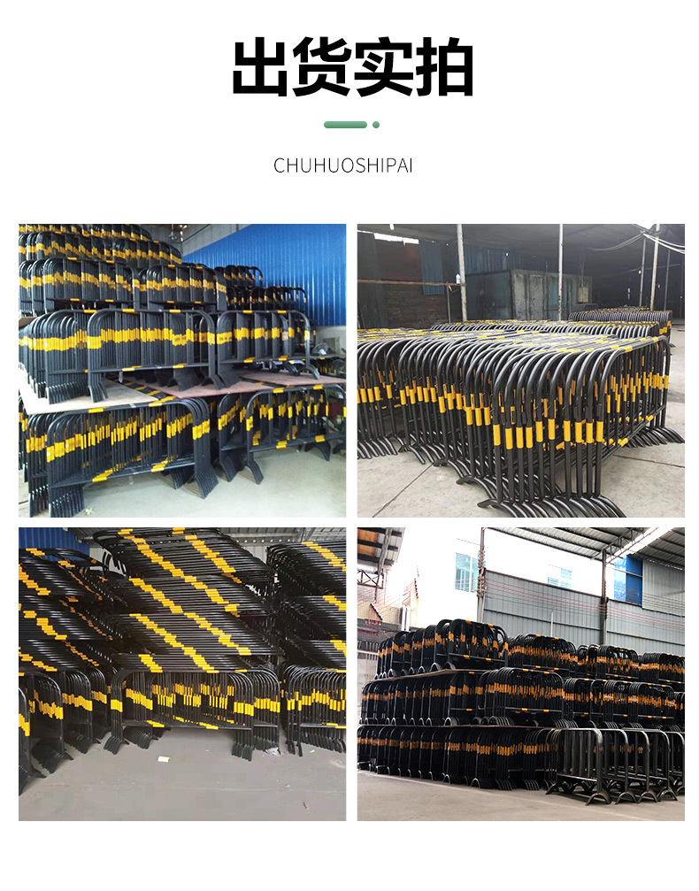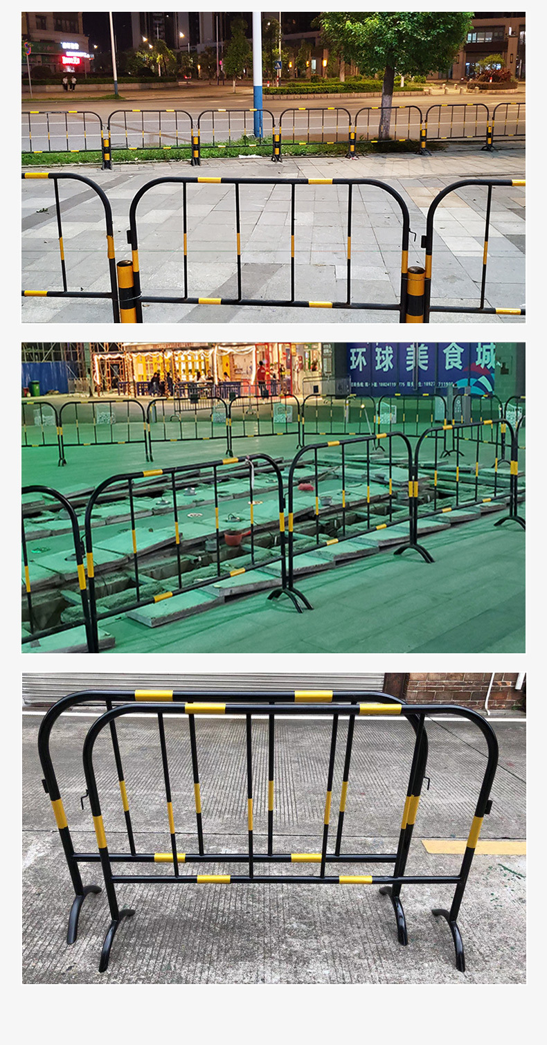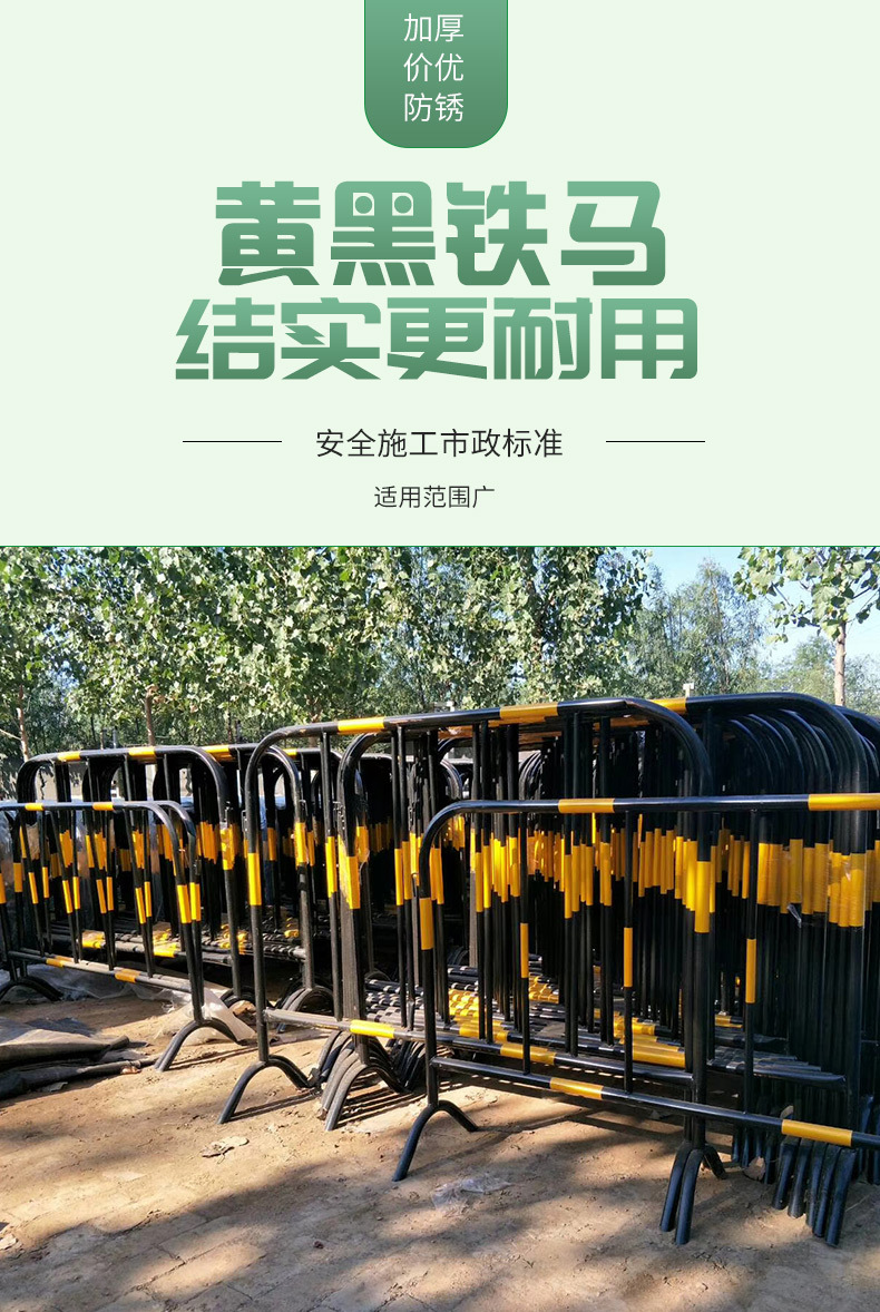 노란색 검은 철 말 가드 레일 맞춤 로고 도시 도로 건설 모바일 울타리 안전 보호 임시 격리 가드 레일스토어 가기