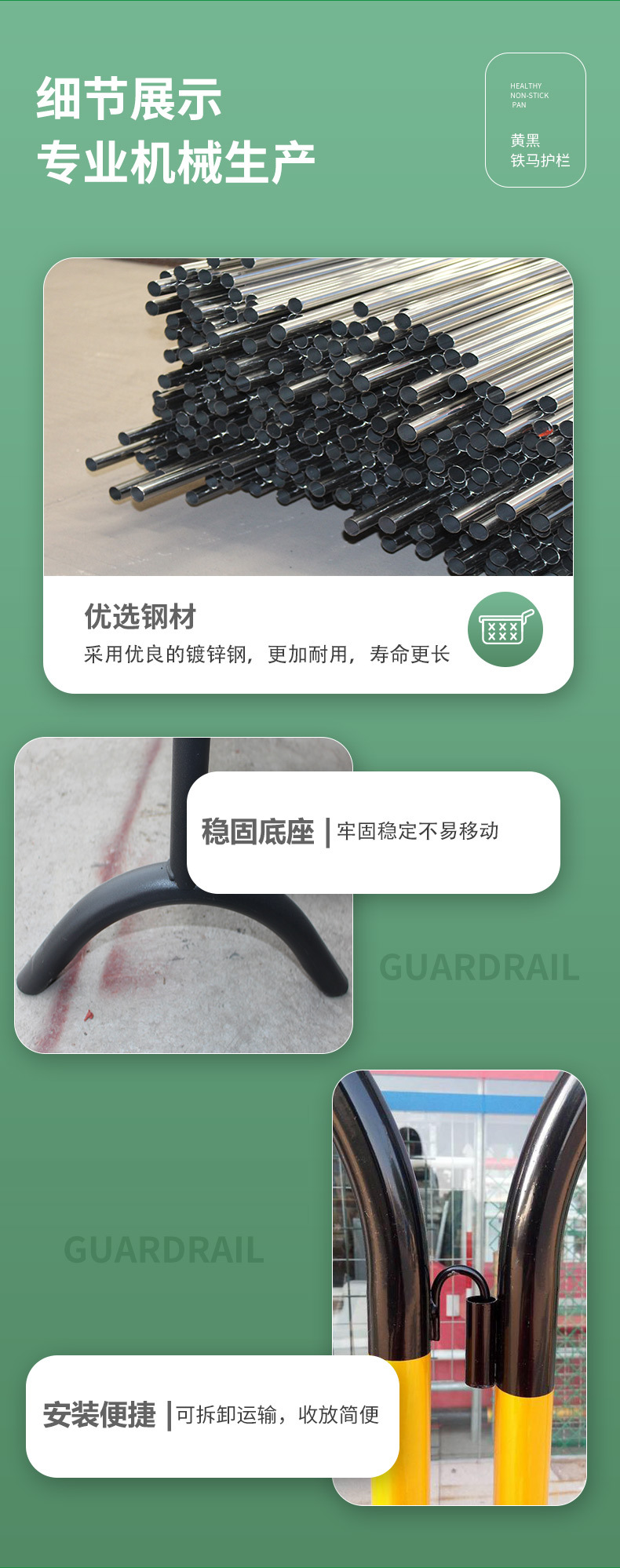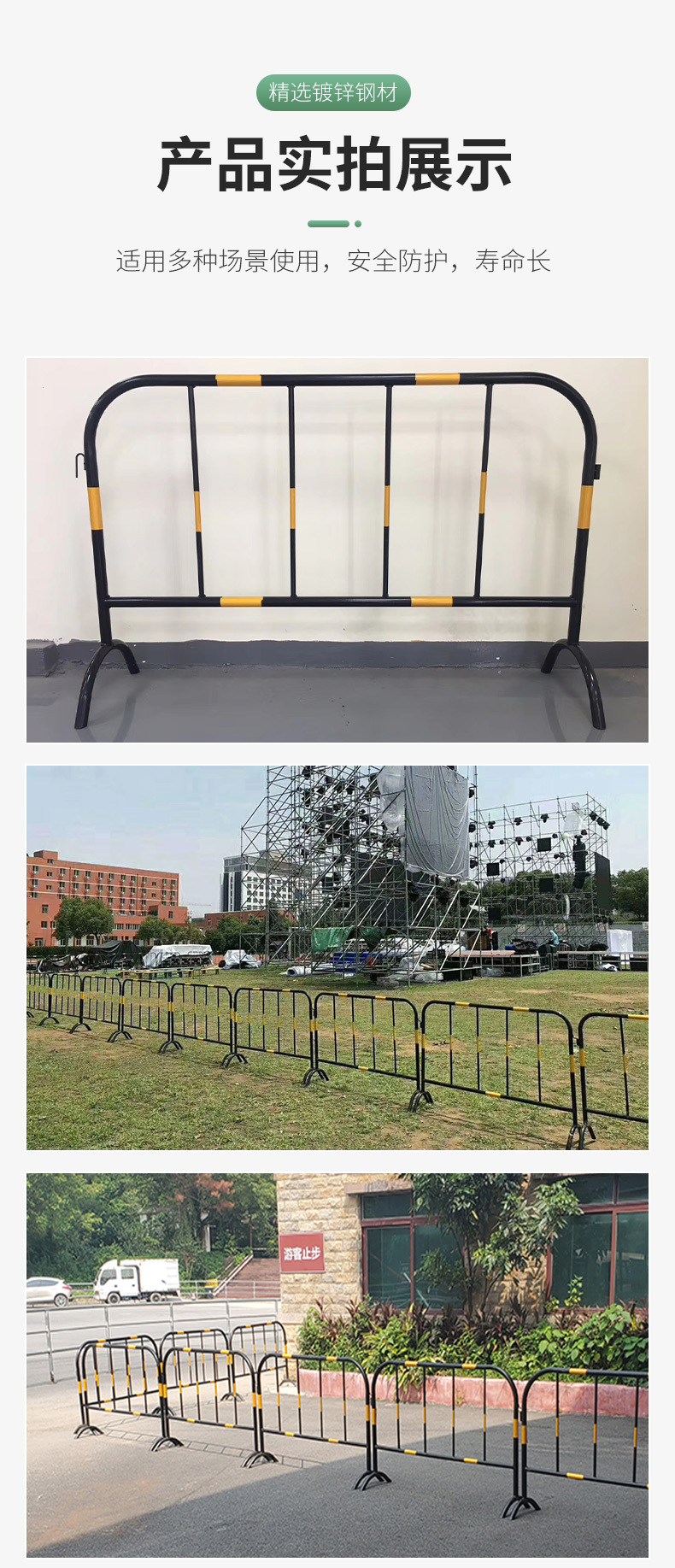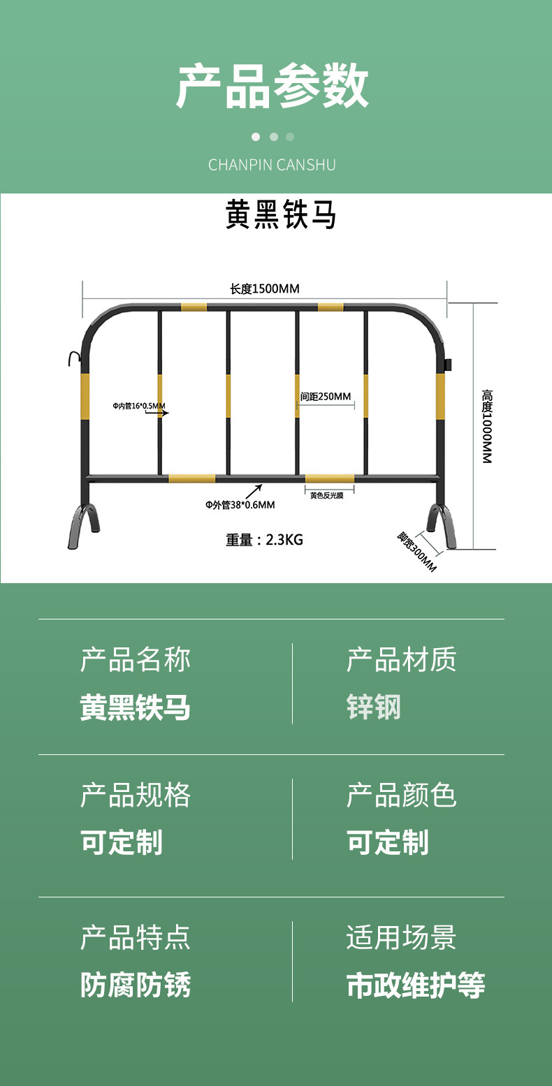 노란색 검은 철 말 가드 레일 맞춤 로고 도시 도로 건설 모바일 울타리 안전 보호 임시 격리 가드 레일스토어 가기
