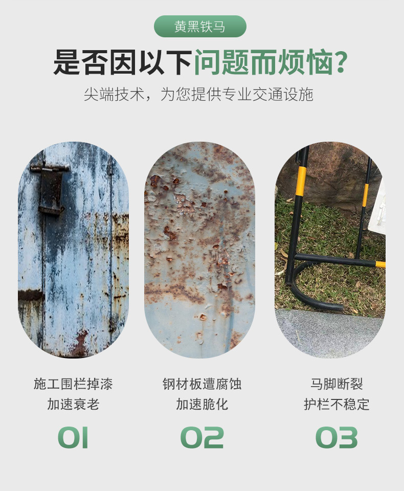 노란색 검은 철 말 가드 레일 맞춤 로고 도시 도로 건설 모바일 울타리 안전 보호 임시 격리 가드 레일