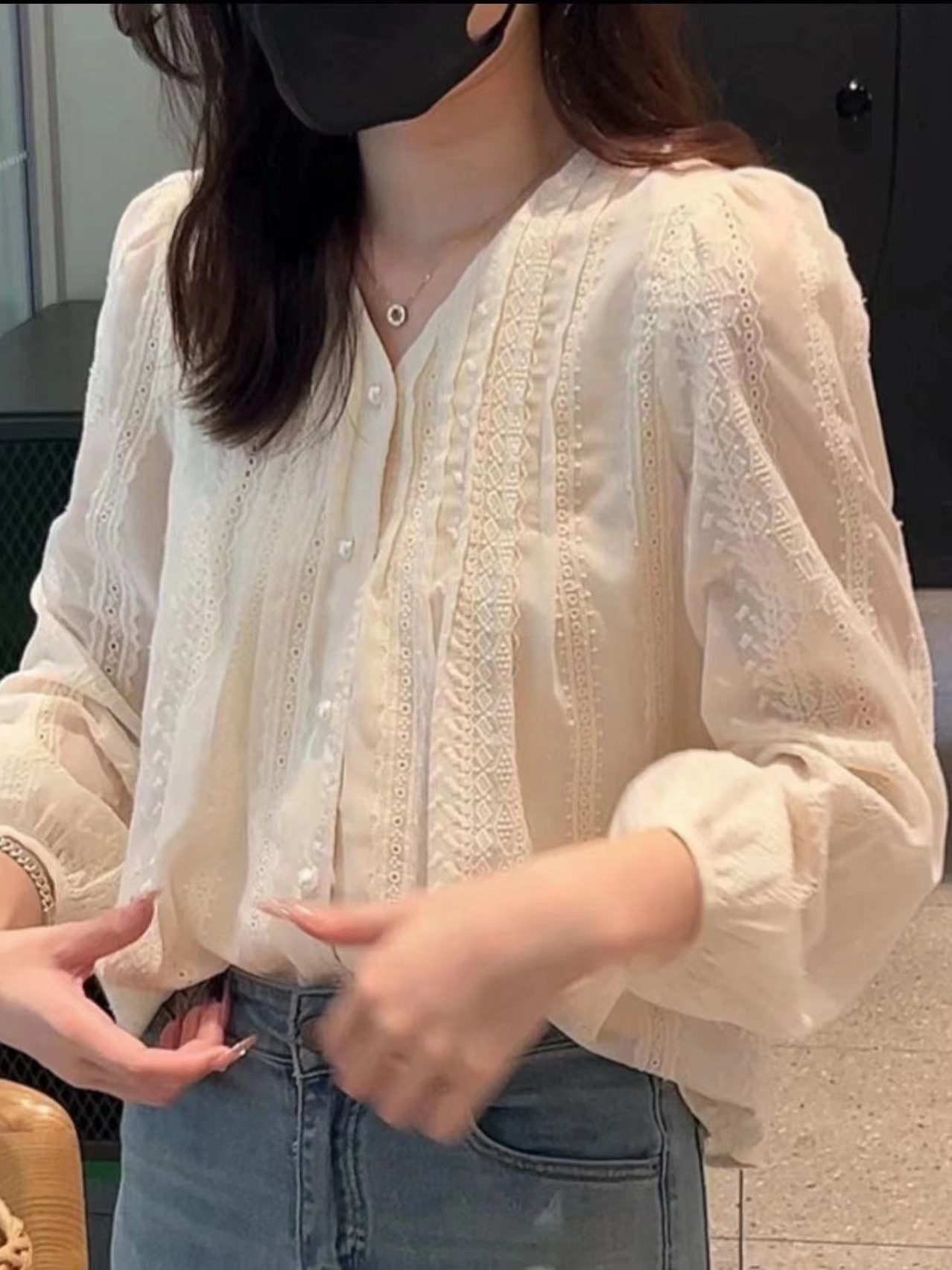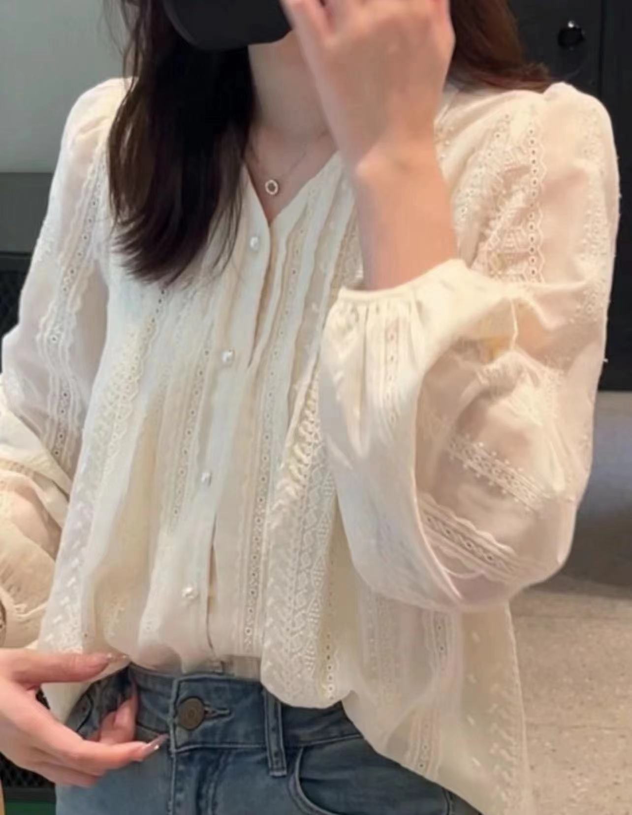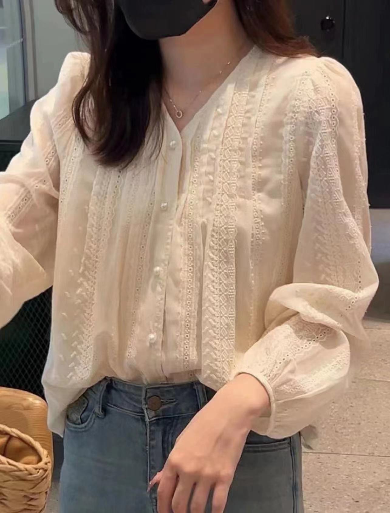 2026년 신상 자수 랜턴 소매 프렌치 스타일 긴팔 셔츠 여성 봄옷스토어 가기