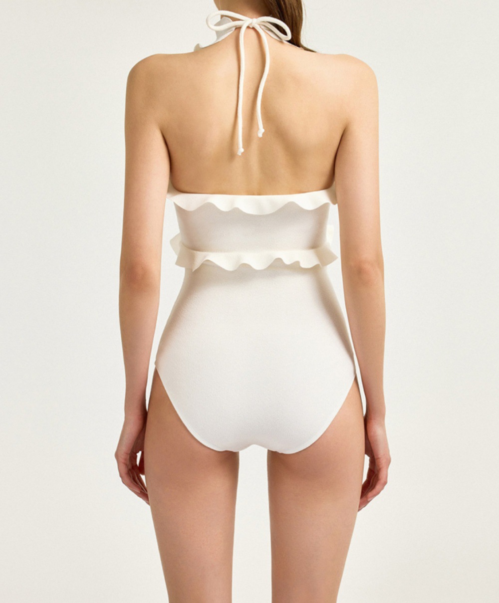 간단한 우아한 여신 달콤한 귀여운 비행 목 섹시 로우 컷 섹시 백리스 수영복 여성용 수영복