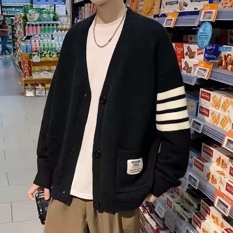 카디건 스웨터 코트 남자 가을 뉴 루즈 니트 스웨터 홍콩 스타일 스티칭 커플을위한 올 매치 두꺼운 스웨터