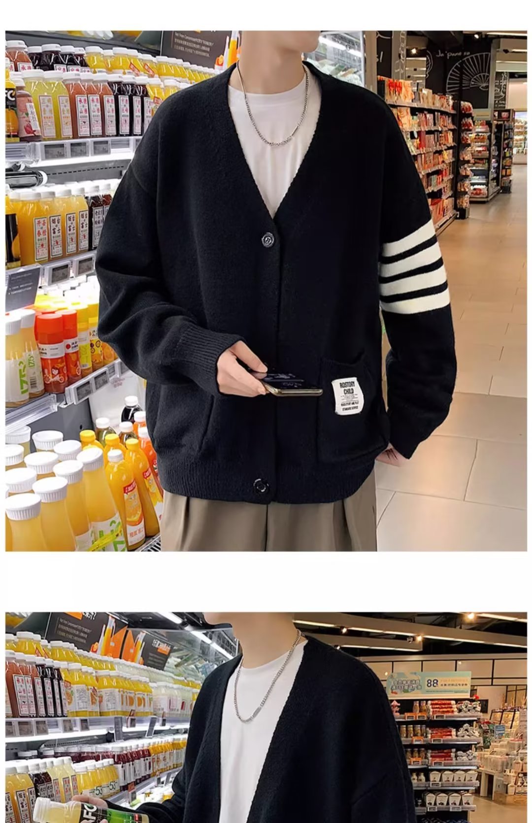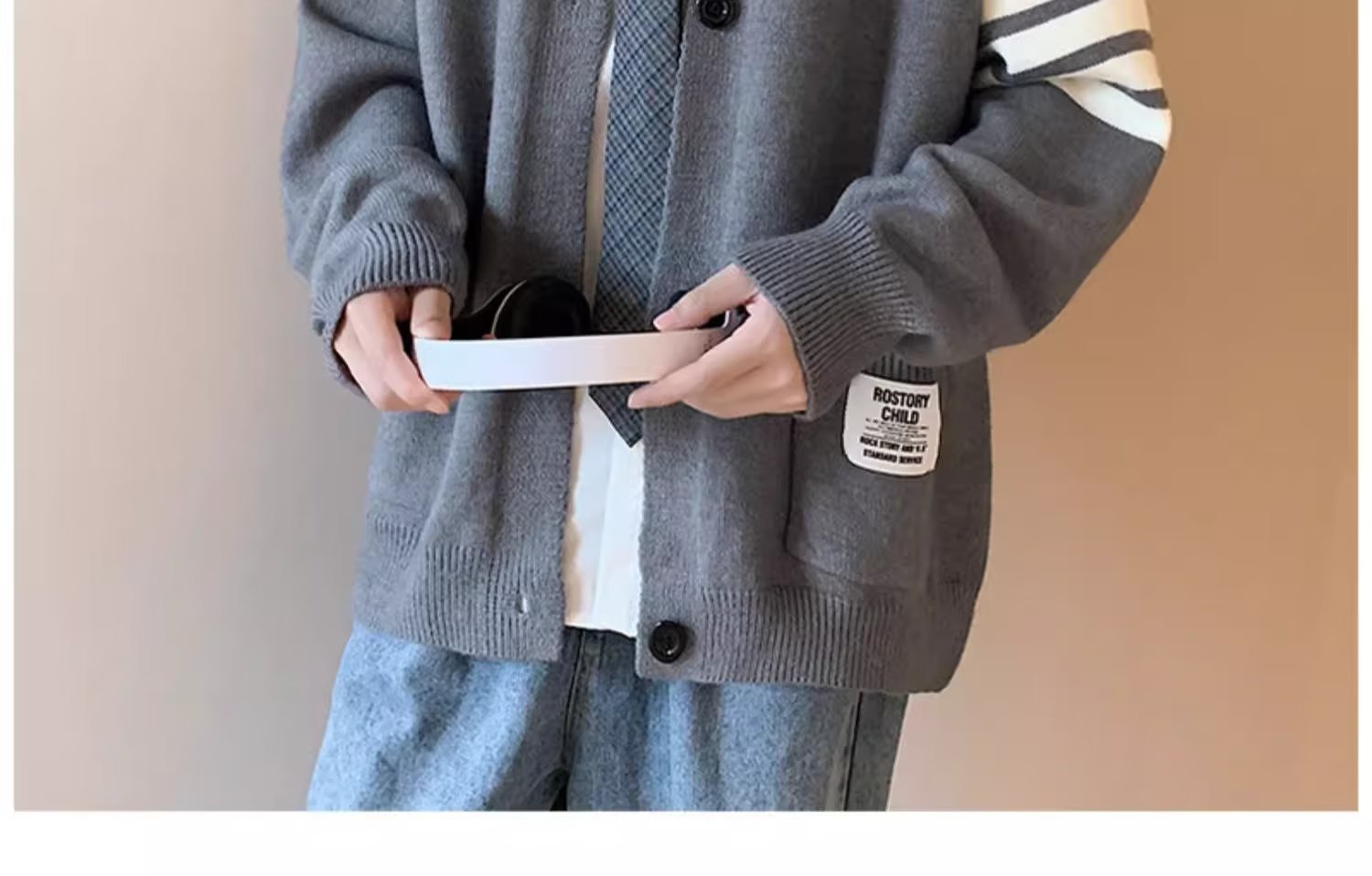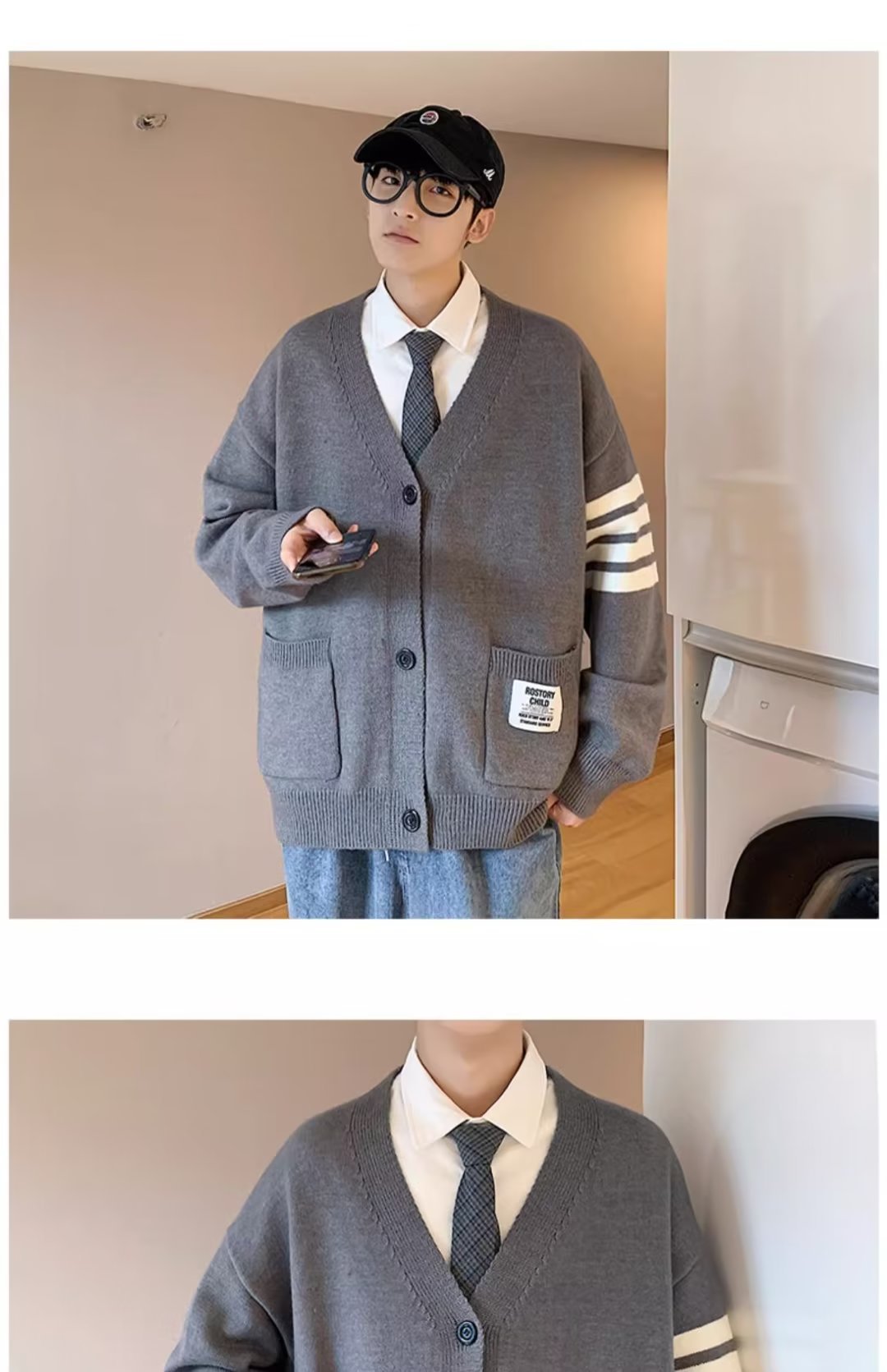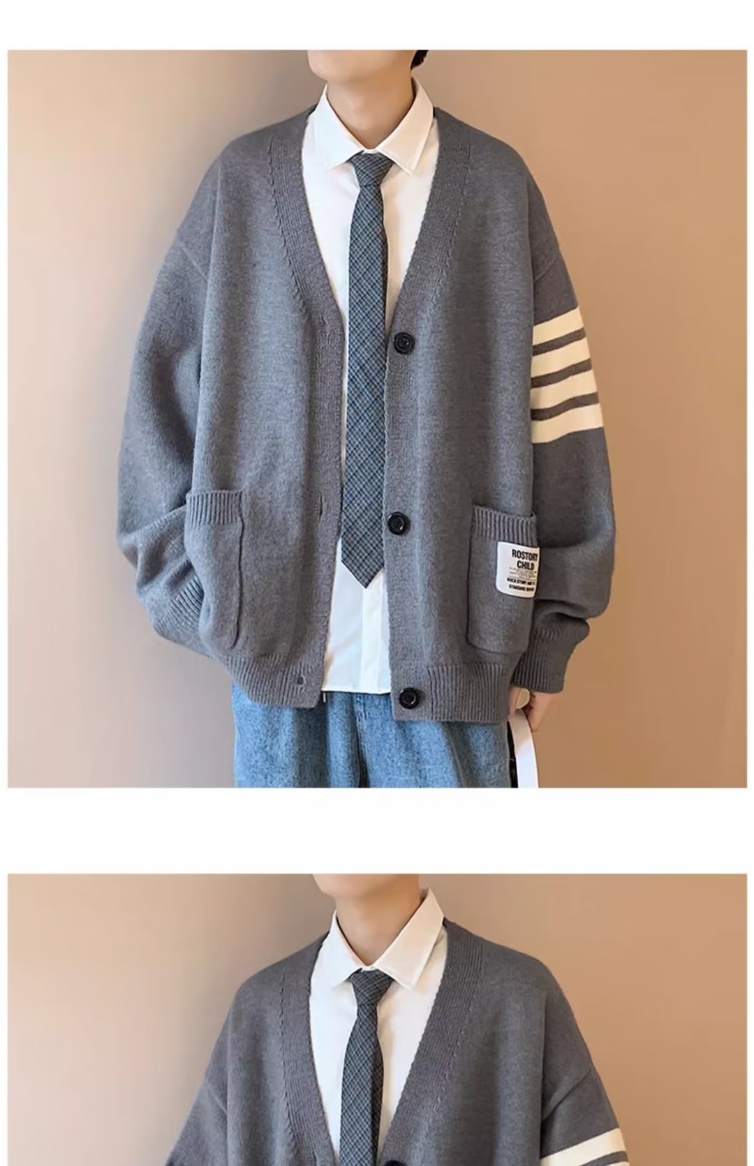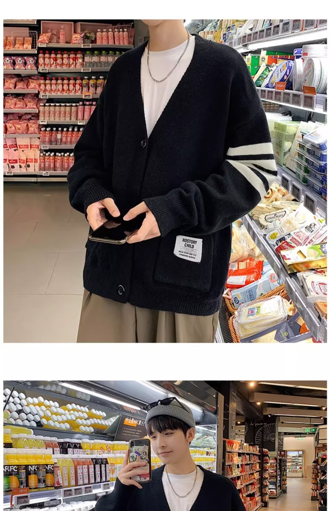 카디건 스웨터 코트 남자 가을 뉴 루즈 니트 스웨터 홍콩 스타일 스티칭 커플을위한 올 매치 두꺼운 스웨터스토어 가기