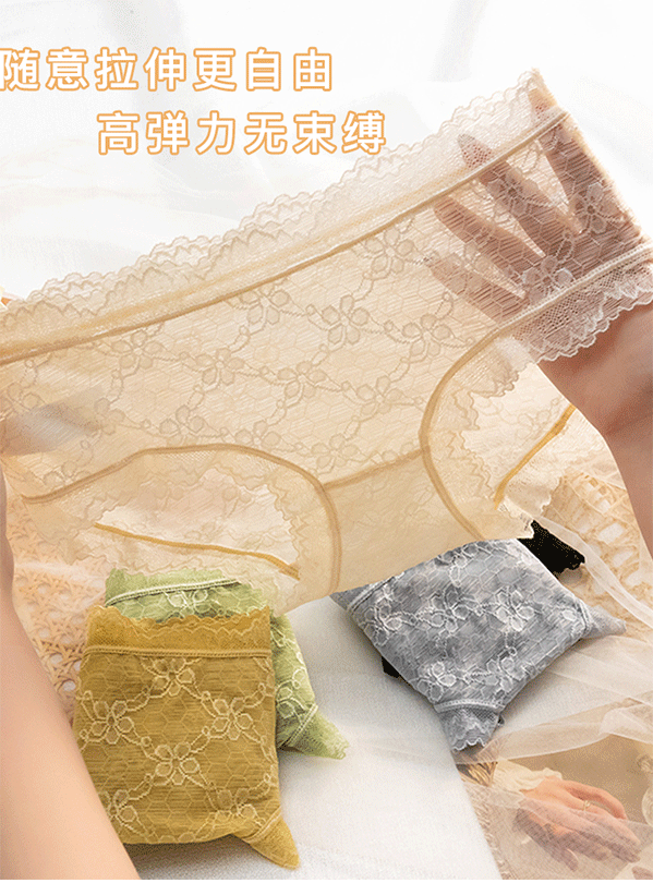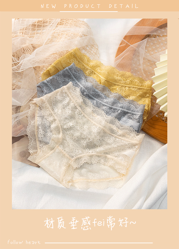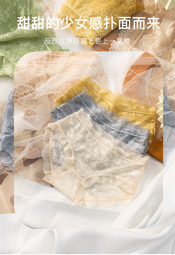 새로운 올 매치 레이스 라이트 럭셔리 속옷 여성용 미드 웨이스트 심플 일본 스타일 섹시한 메쉬 마녀 소프트 트라이앵글 반바지