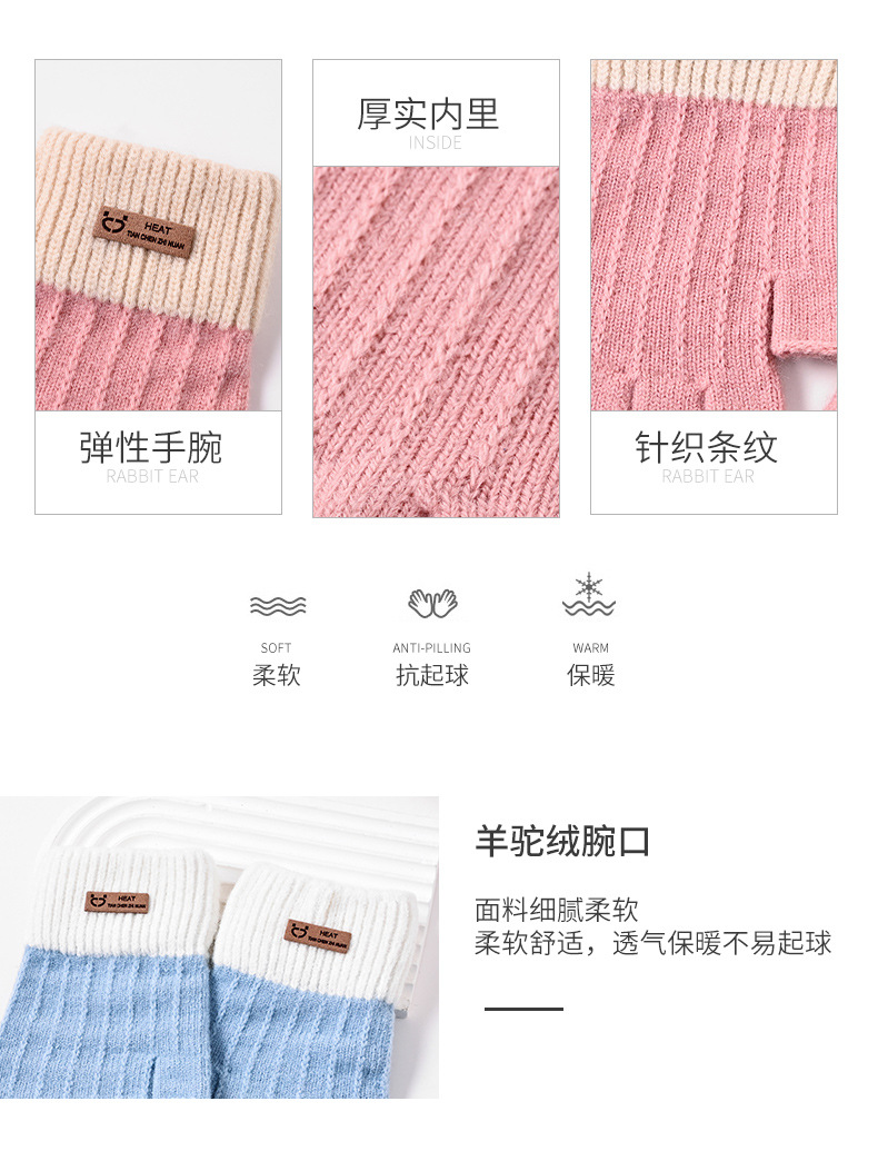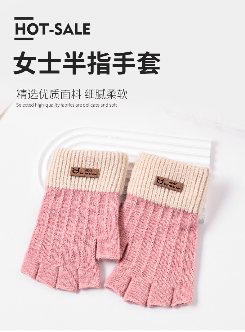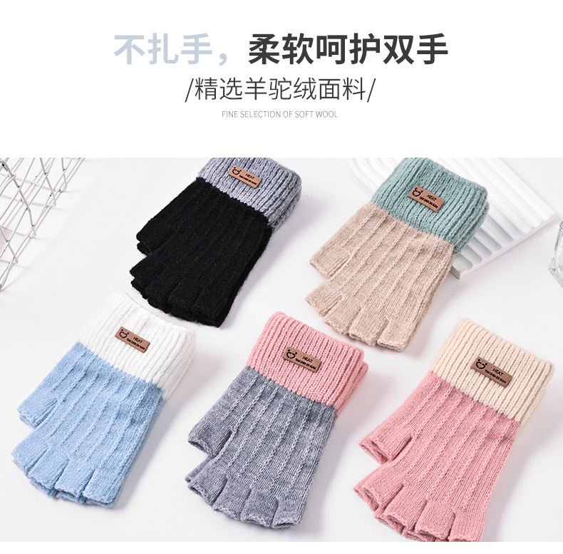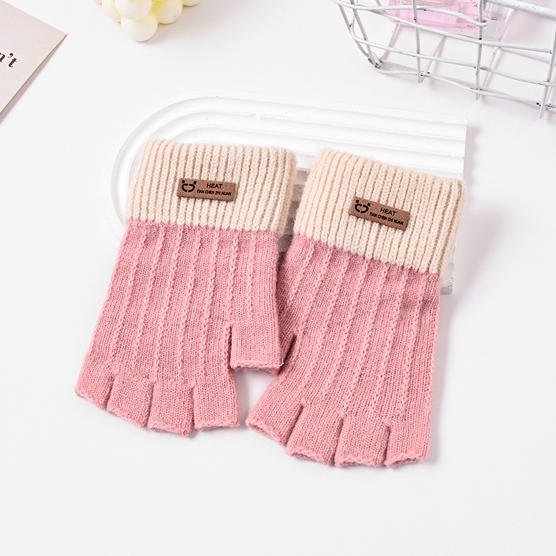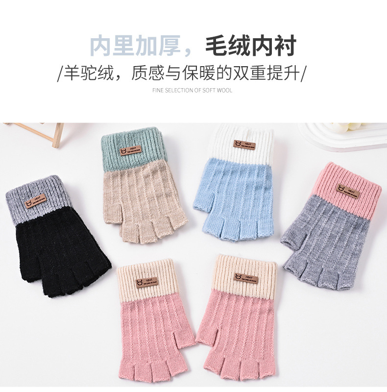 가을 겨울 반장갑 여성 학생용 기모 안감 두꺼운 자전거 타기 글쓰기 방한 니트 따뜻한 한국 스타일