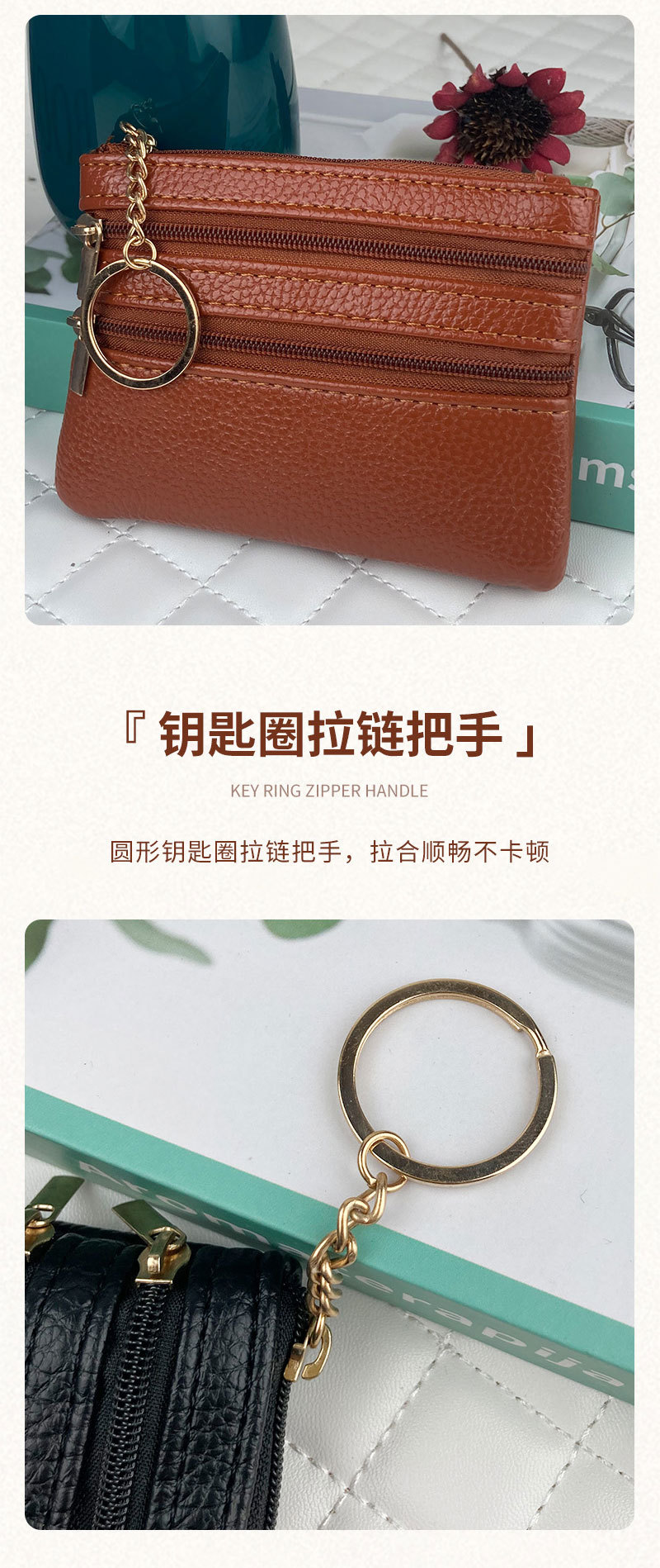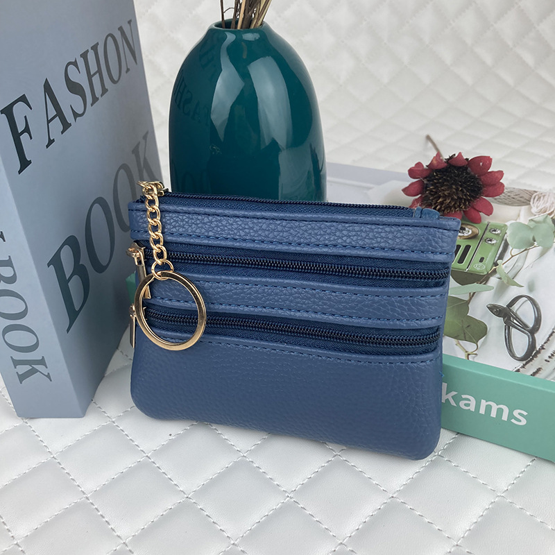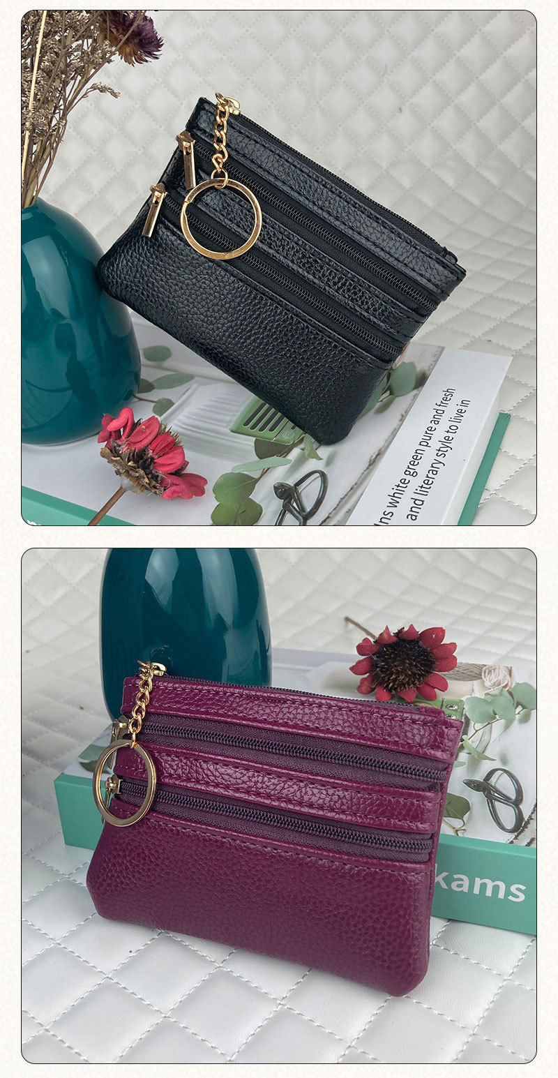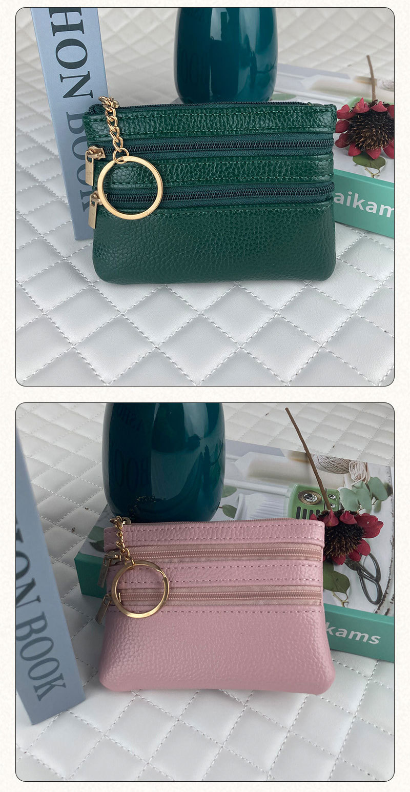 동전 지갑 여성의 새로운 짧은 지갑 얇은 단색 PU 가죽 동전 가방 대용량 지퍼 카드 동전 가방스토어 가기