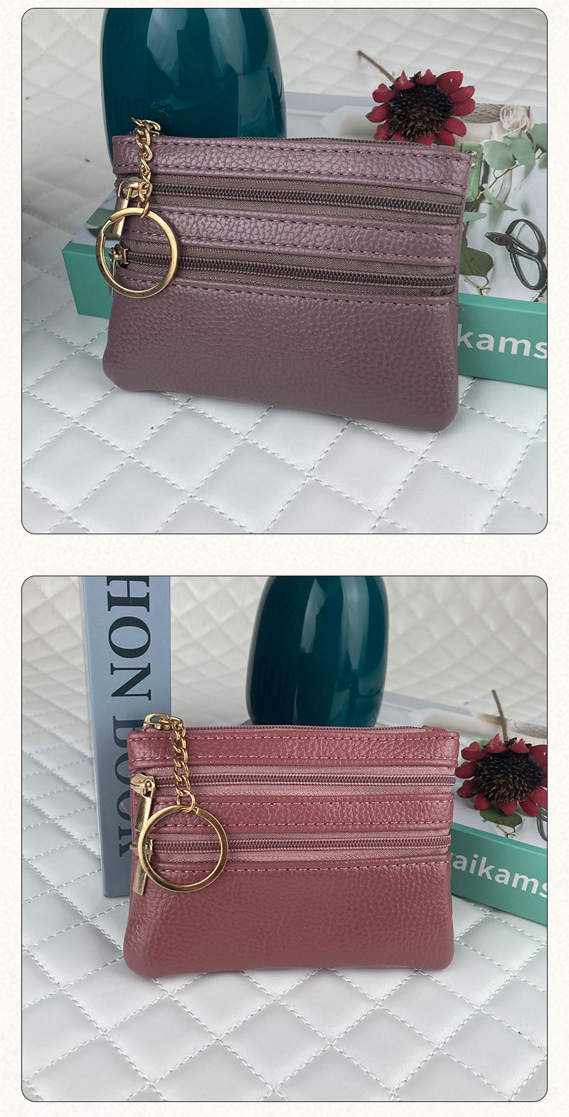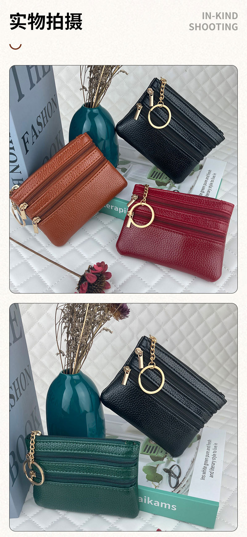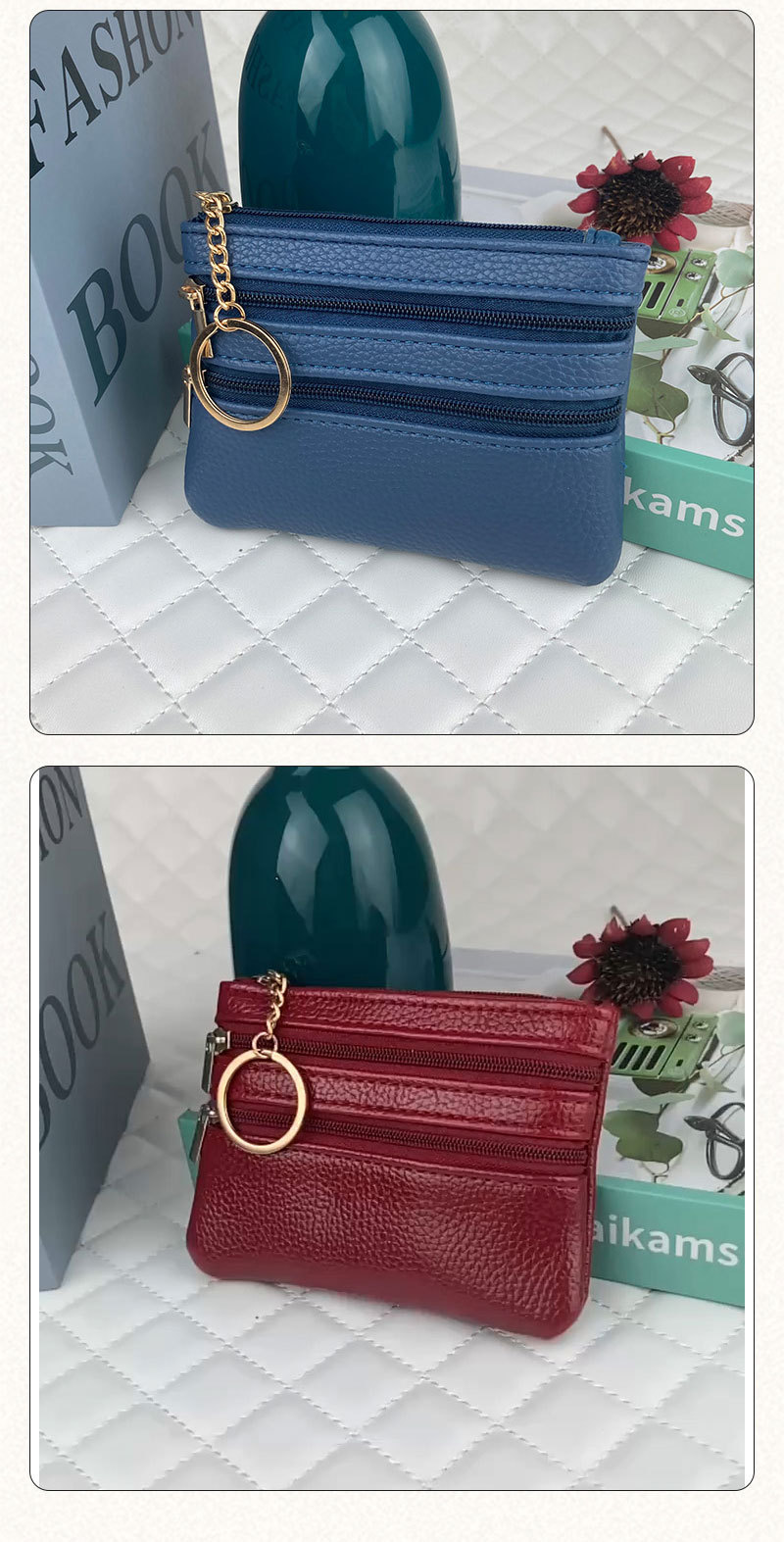 동전 지갑 여성의 새로운 짧은 지갑 얇은 단색 PU 가죽 동전 가방 대용량 지퍼 카드 동전 가방스토어 가기