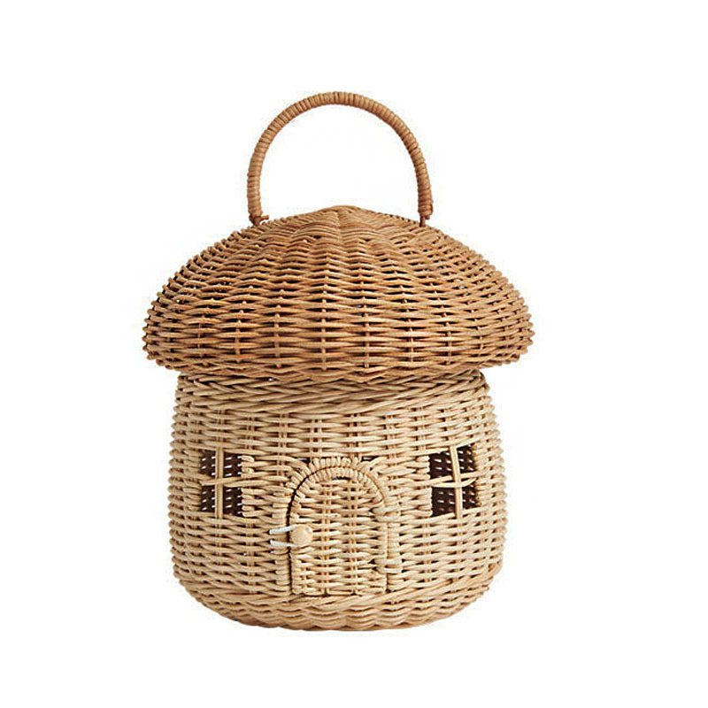 수제 등나무 버섯 모양의 보관 바구니, 어린이 사진 소품, 손 가방, 어린이 방 장식