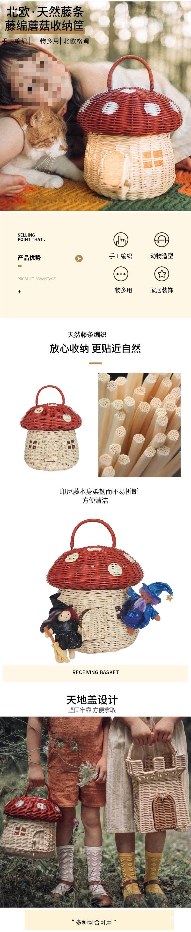 수제 등나무 버섯 모양의 보관 바구니, 어린이 사진 소품, 손 가방, 어린이 방 장식스토어 가기