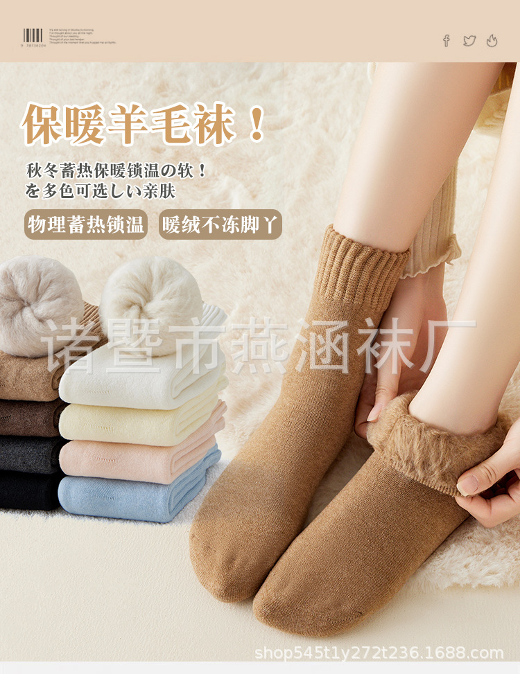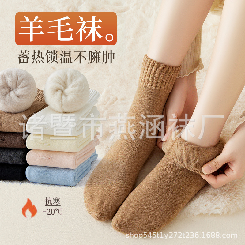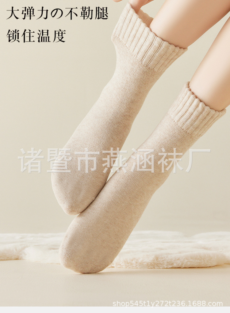 양말 여성의 가을과 겨울 두꺼운 달 양말 수건 바닥 양말 중간 튜브 브러시 베개 양말 겨울 기모 수면 양말