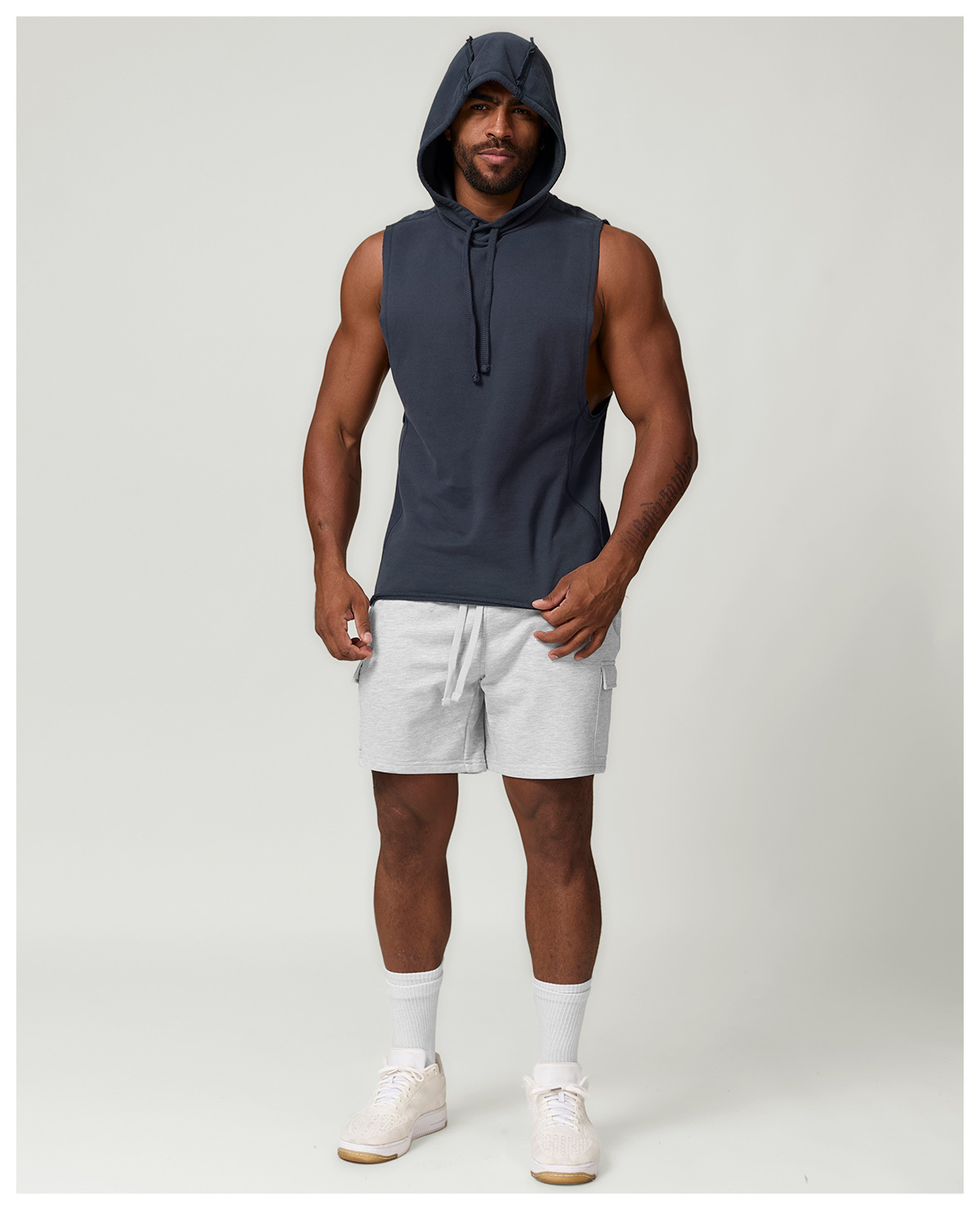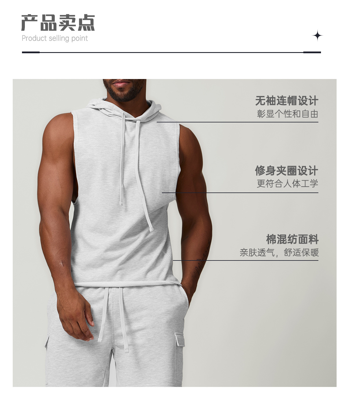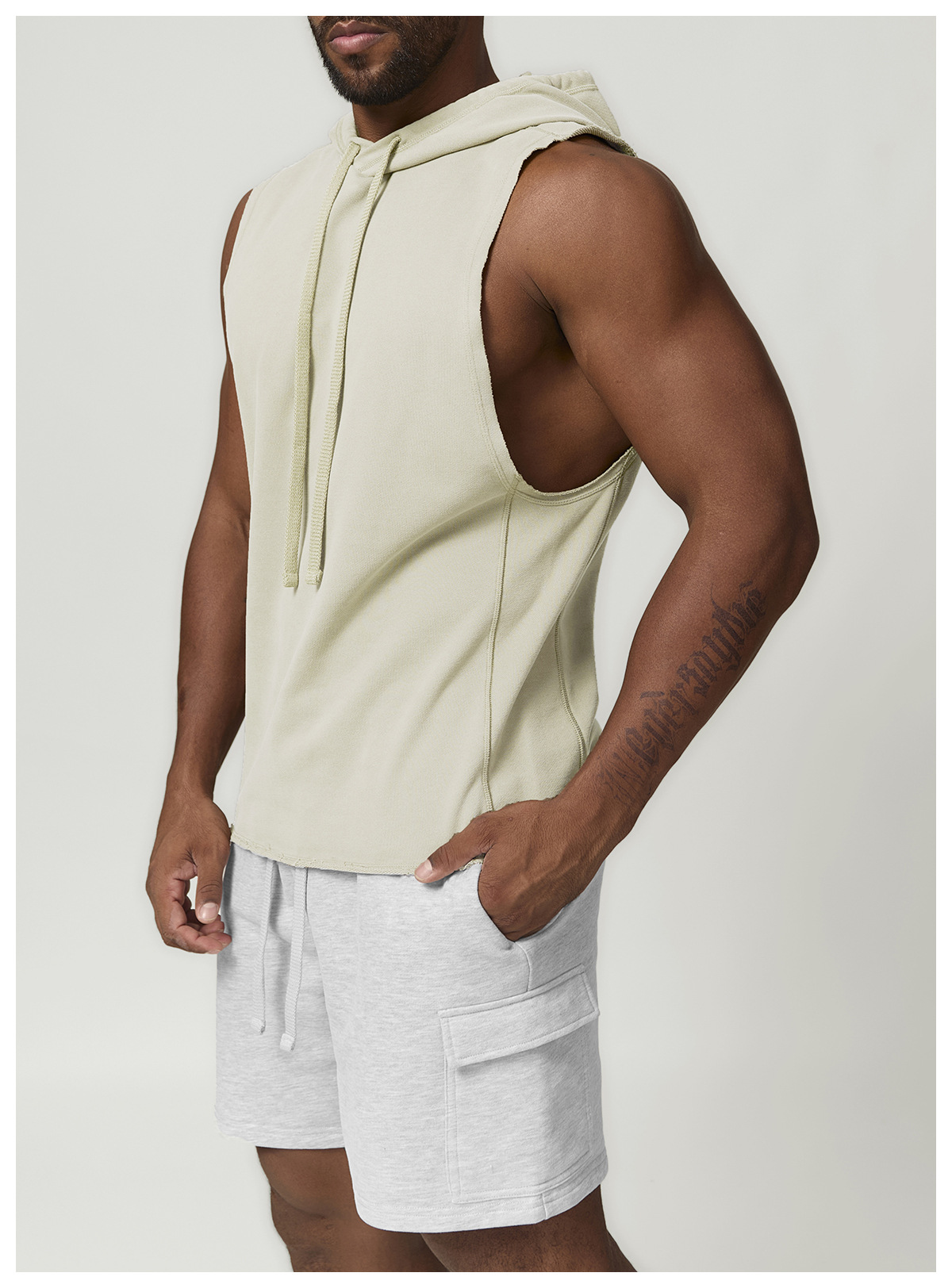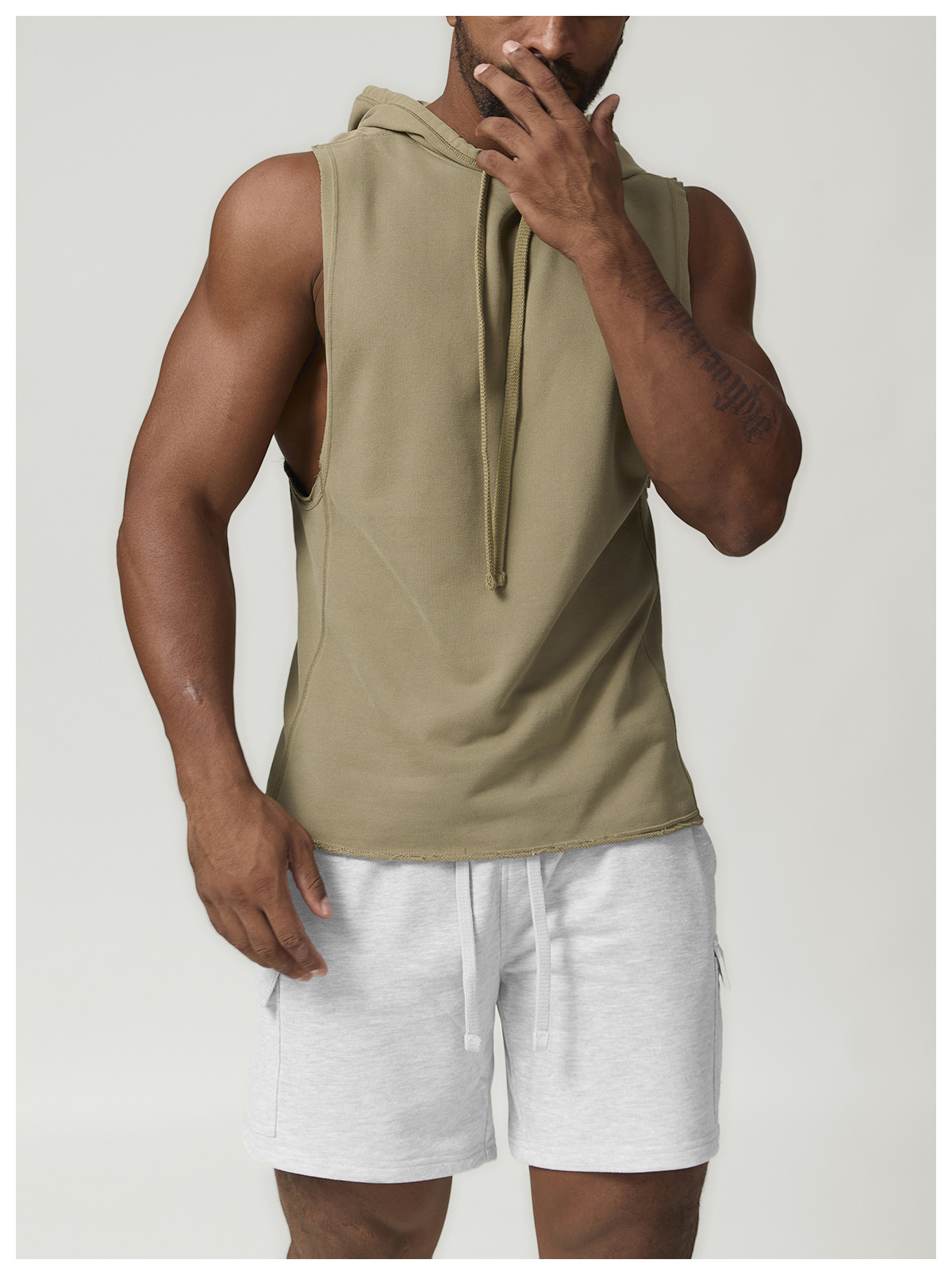 국경 간 남성 캐주얼 후드 단색 양복 조끼 유럽과 미국의 스포츠 레저 피트니스 민소매 스웨터 1014