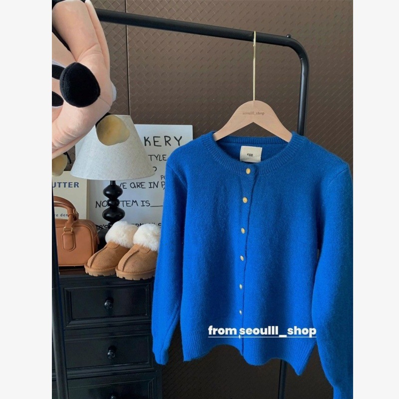 새로운 에그! 한국 스타일 고품질 12색 여성 캔디 컬러 골드 버튼 기본형 라운드넥 니트 가디건스토어 가기