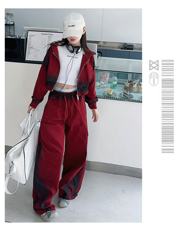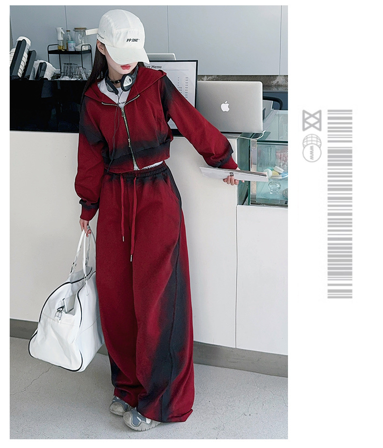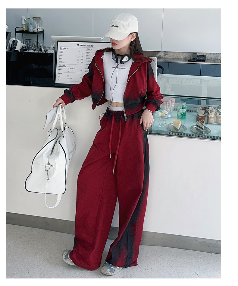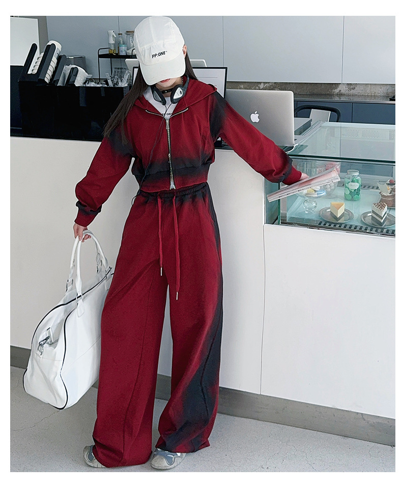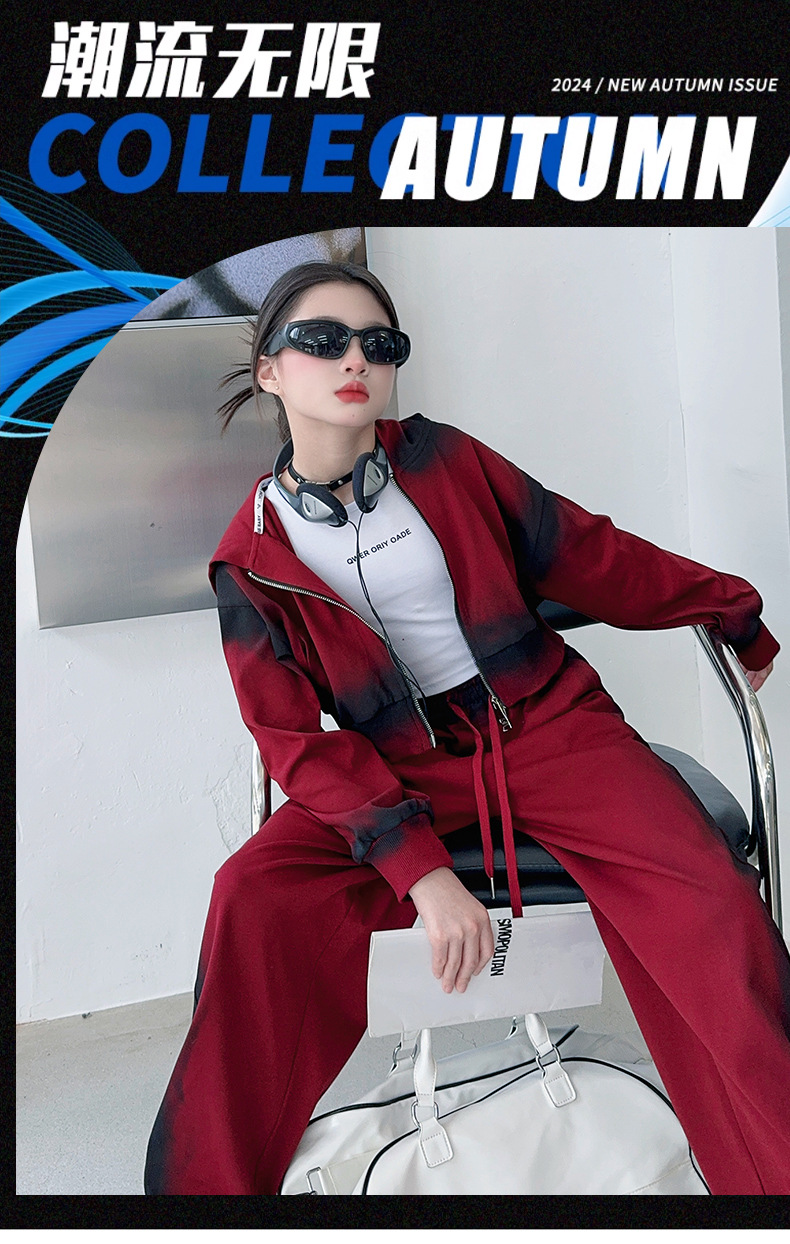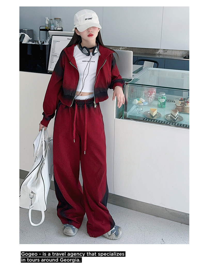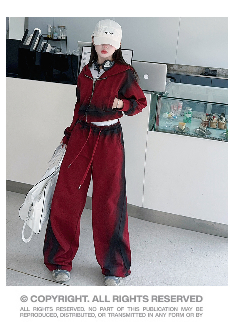 소녀 가을 세트 2024 새로운 패션 소녀 한국 스타일 어린이 매달린 염료 후드 땀 넓은 다리 바지 세트스토어 가기